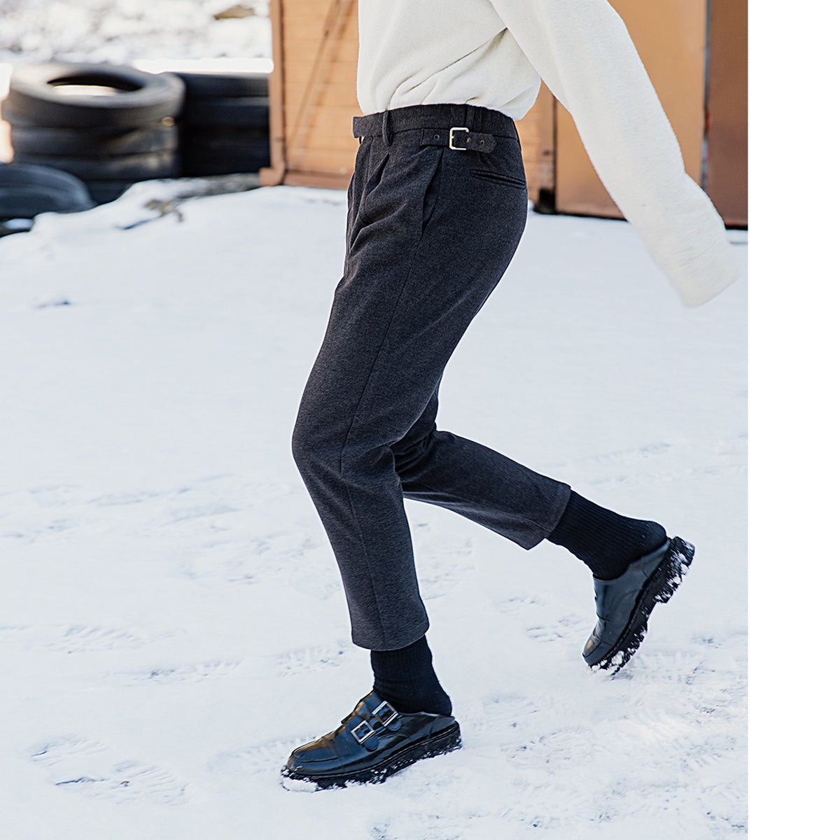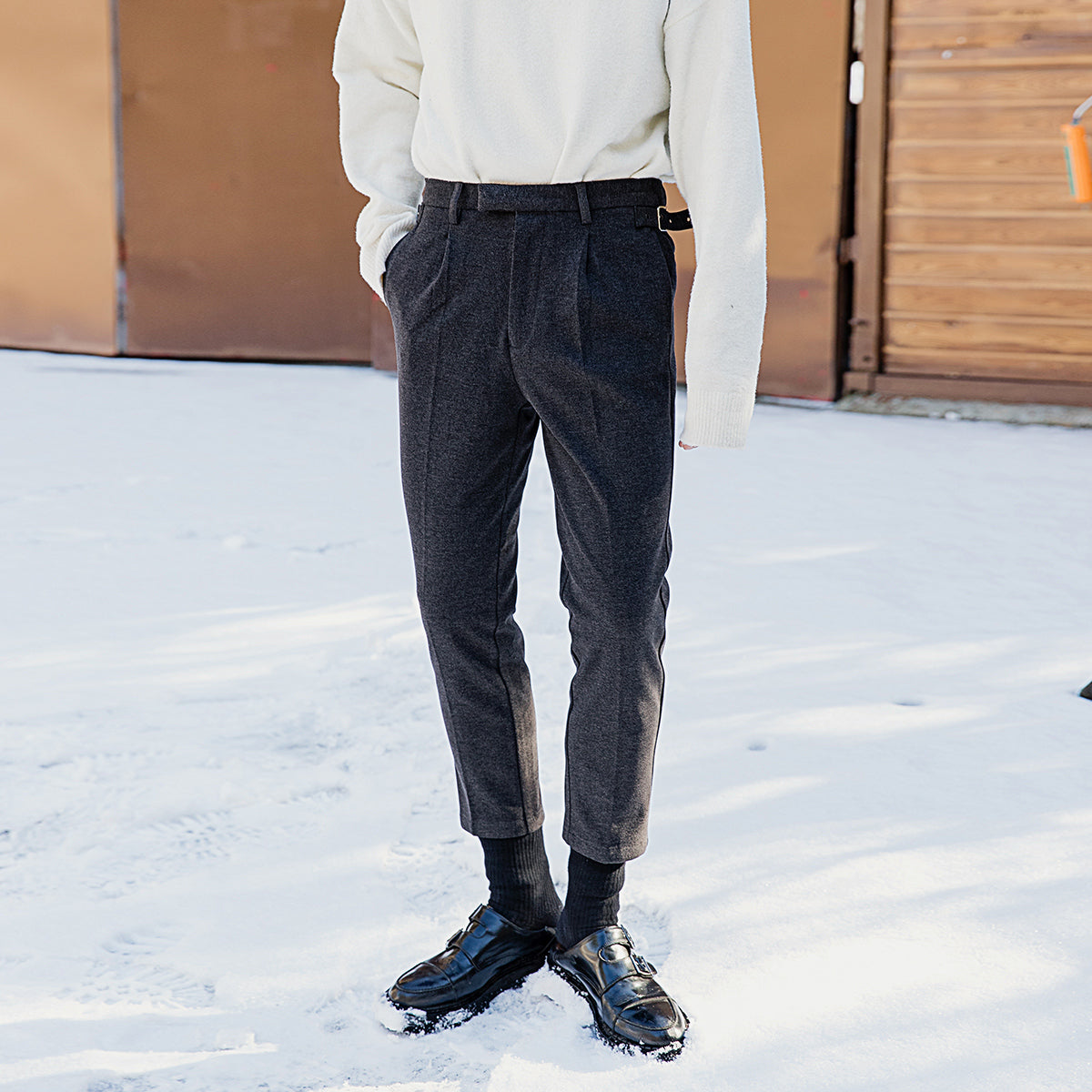 CHIC ERRO [【现货速发】极速发货~宽松裤子男春季毛呢九分休闲裤]