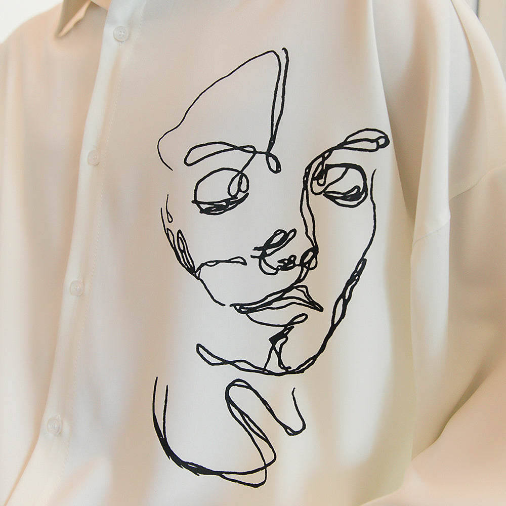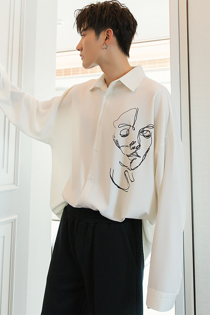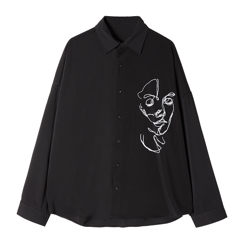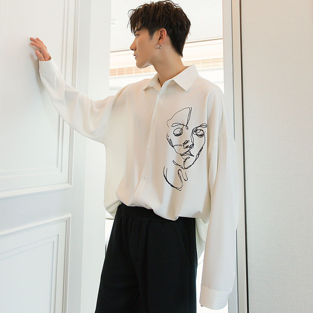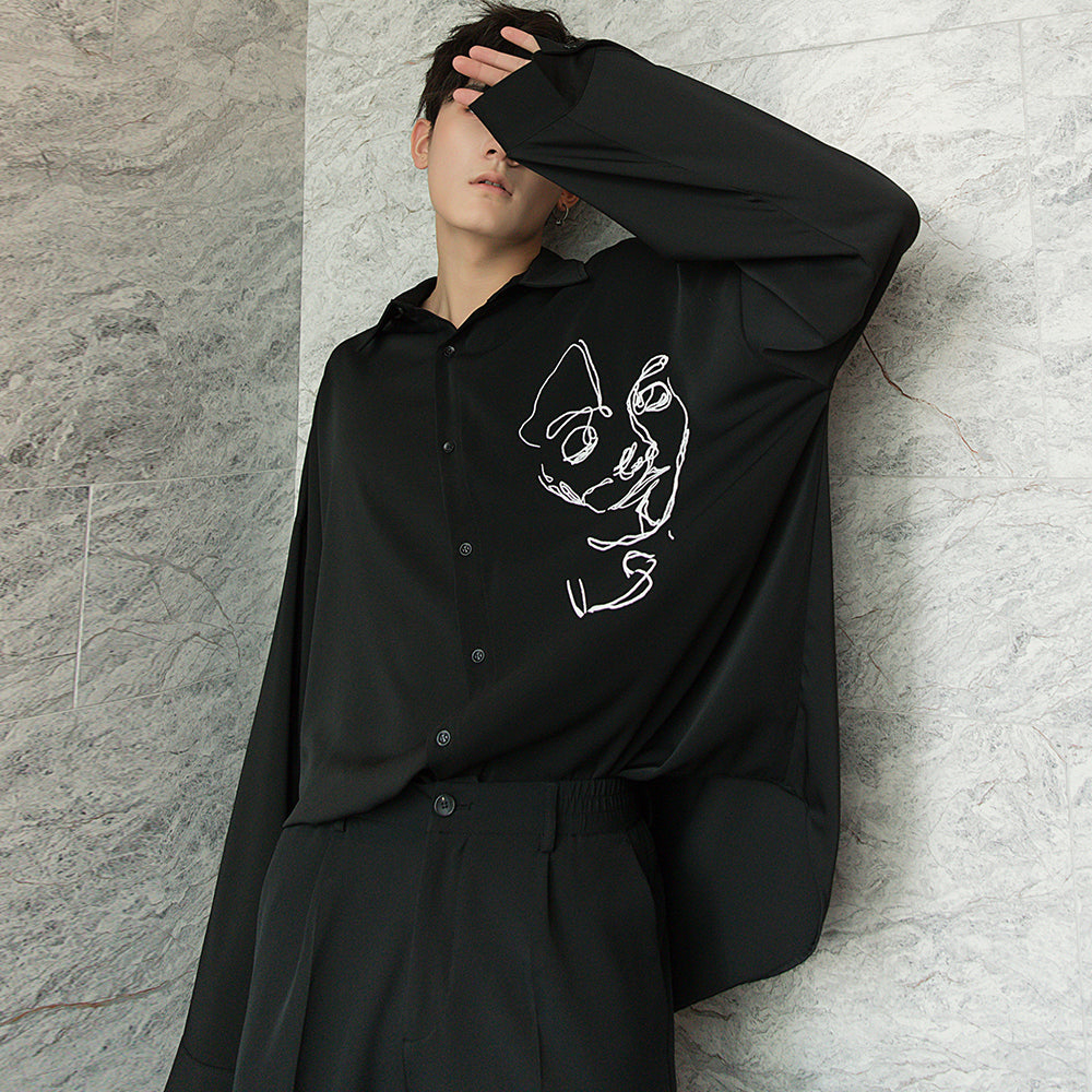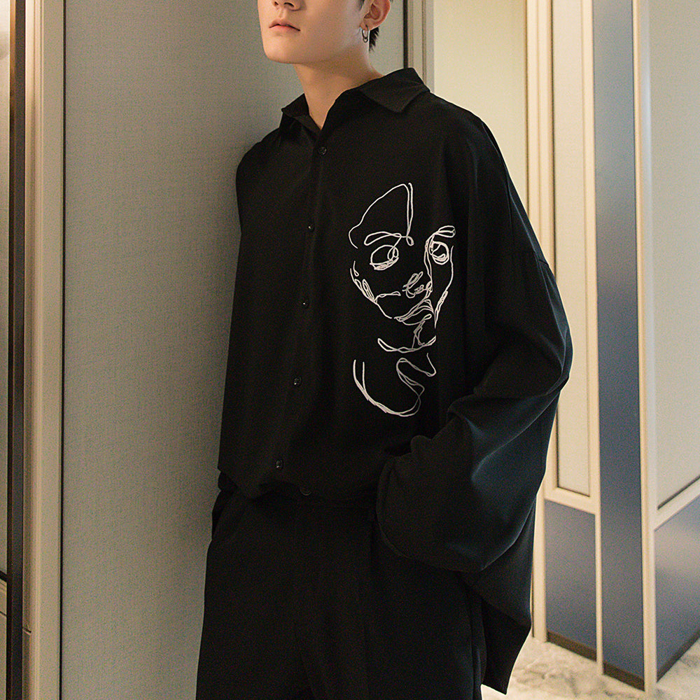 CHIC ERRO [西西里男装春季黑色长袖衬衫男韩版潮流男士休闲宽松印花衬衣外套]