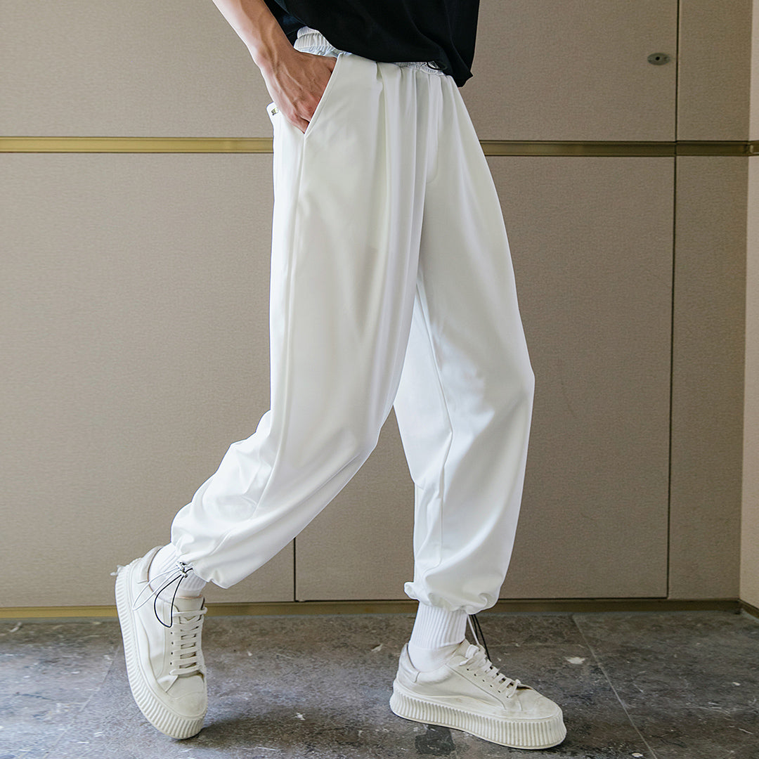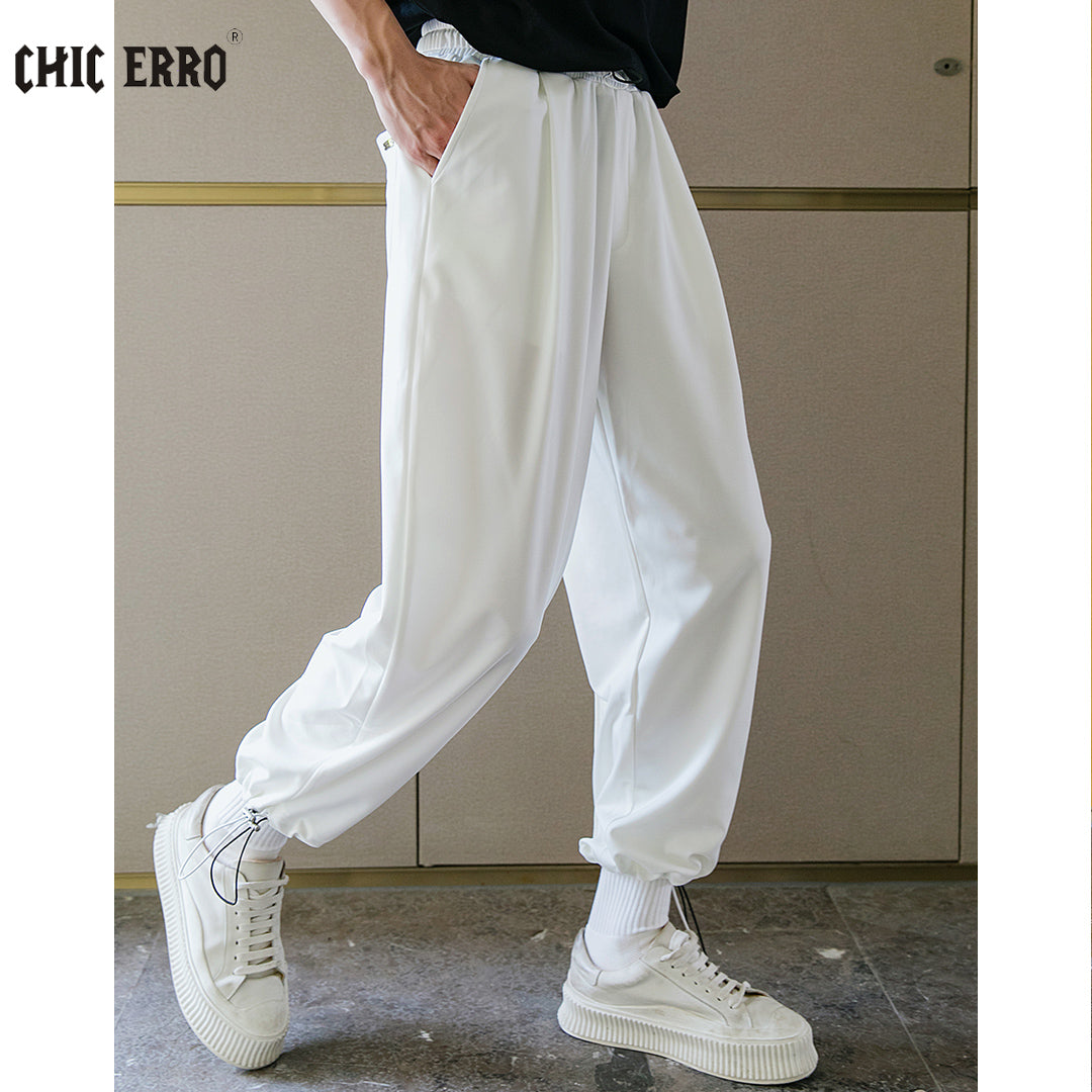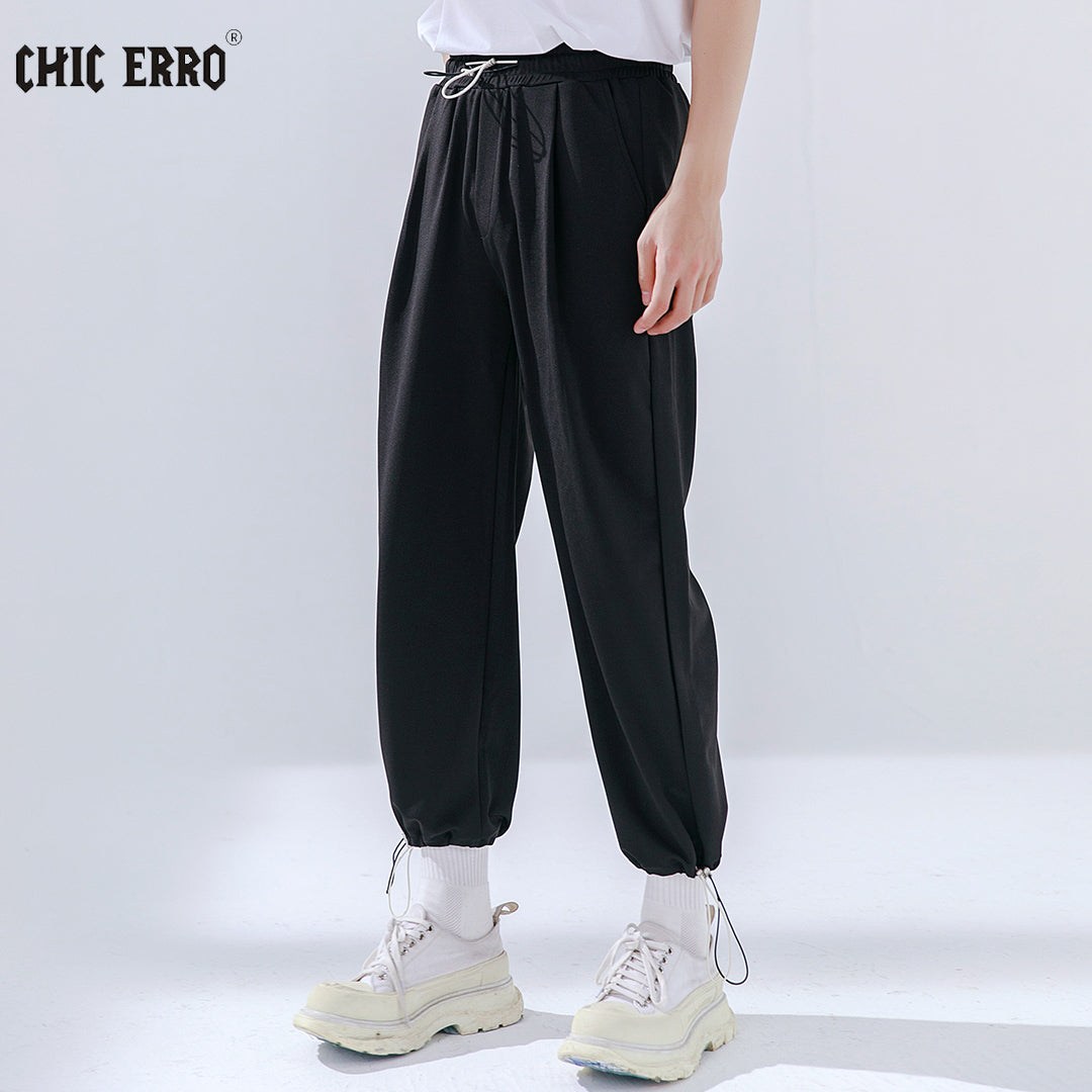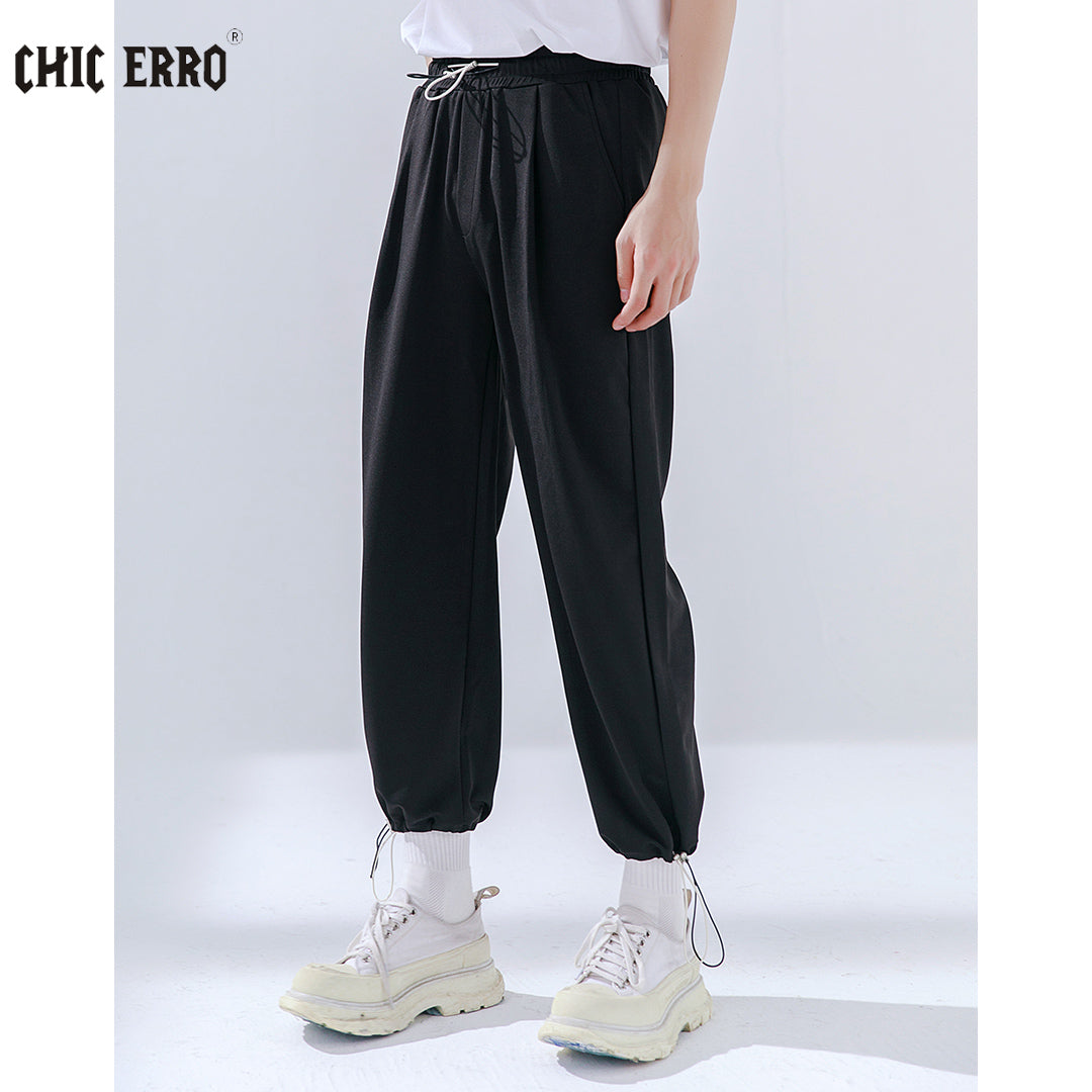 CHIC ERRO [西西里男装2021新款裤子男夏季薄款宽松休闲裤抽绳纯色九分束脚裤]