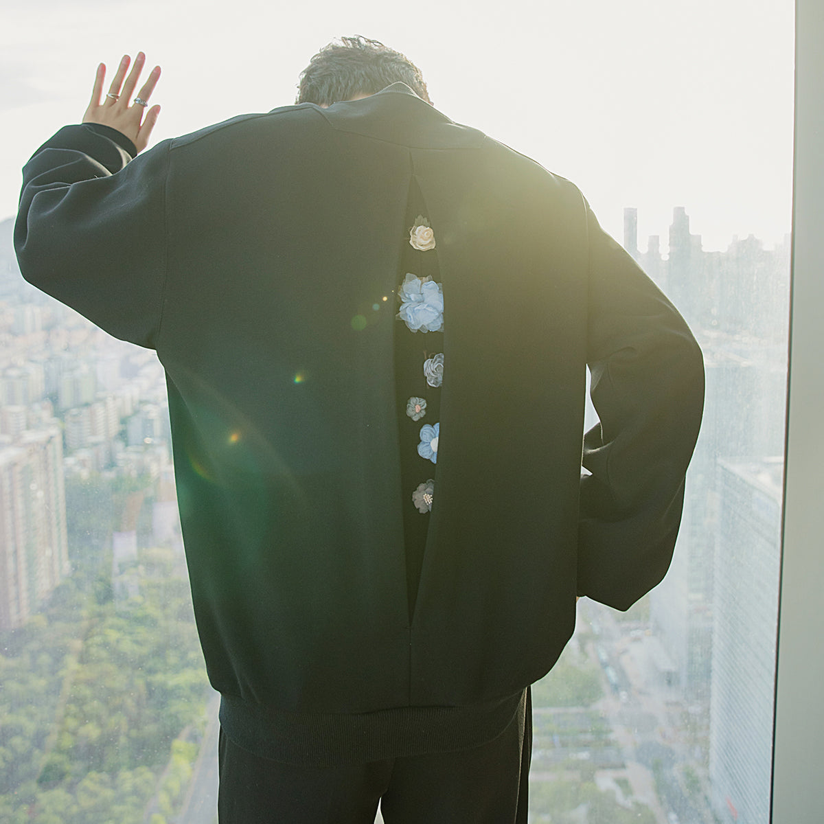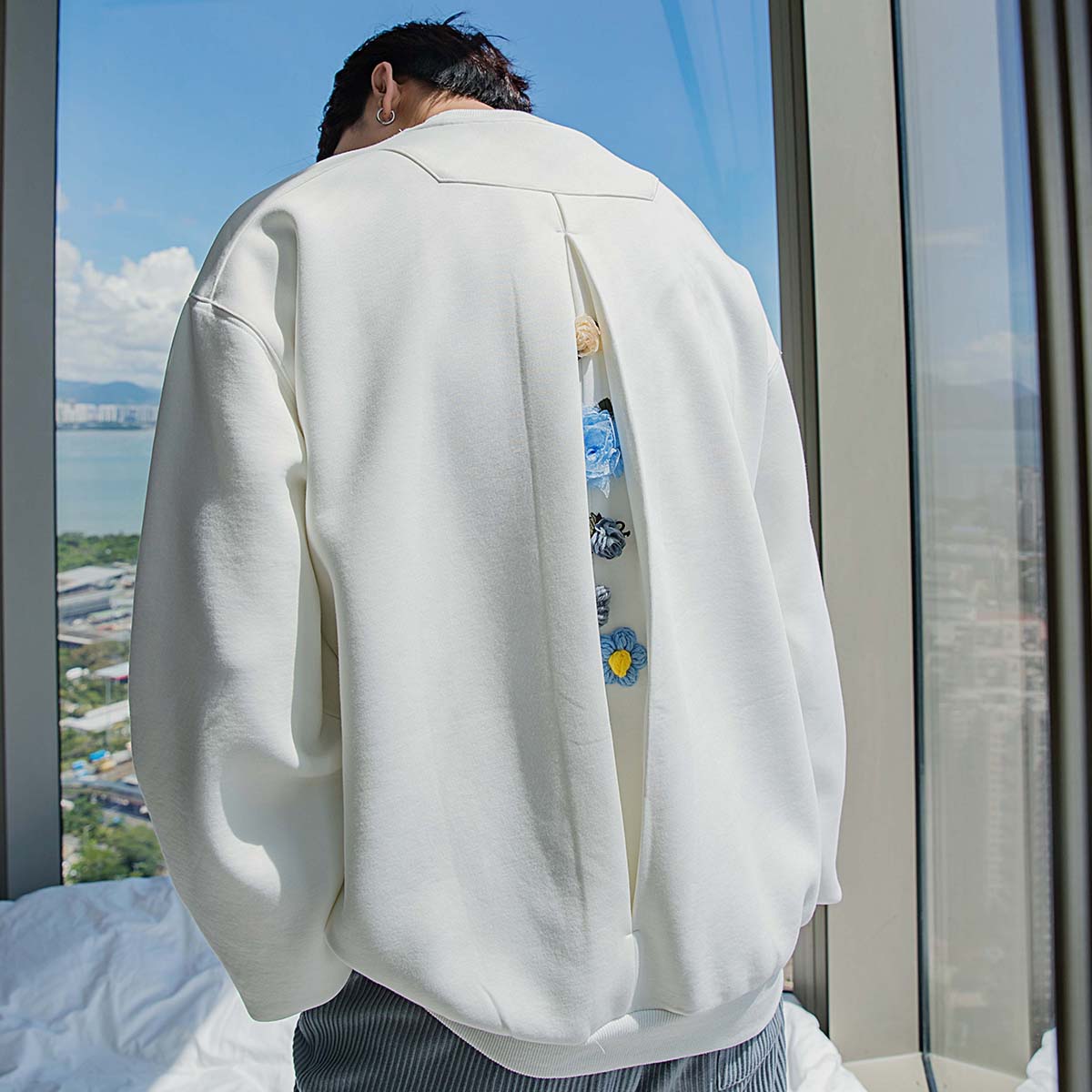 CHIC ERRO CHENGGUANG WANG x CHIC ERRO joint lazy wind jacket white round neck cracked sweater men