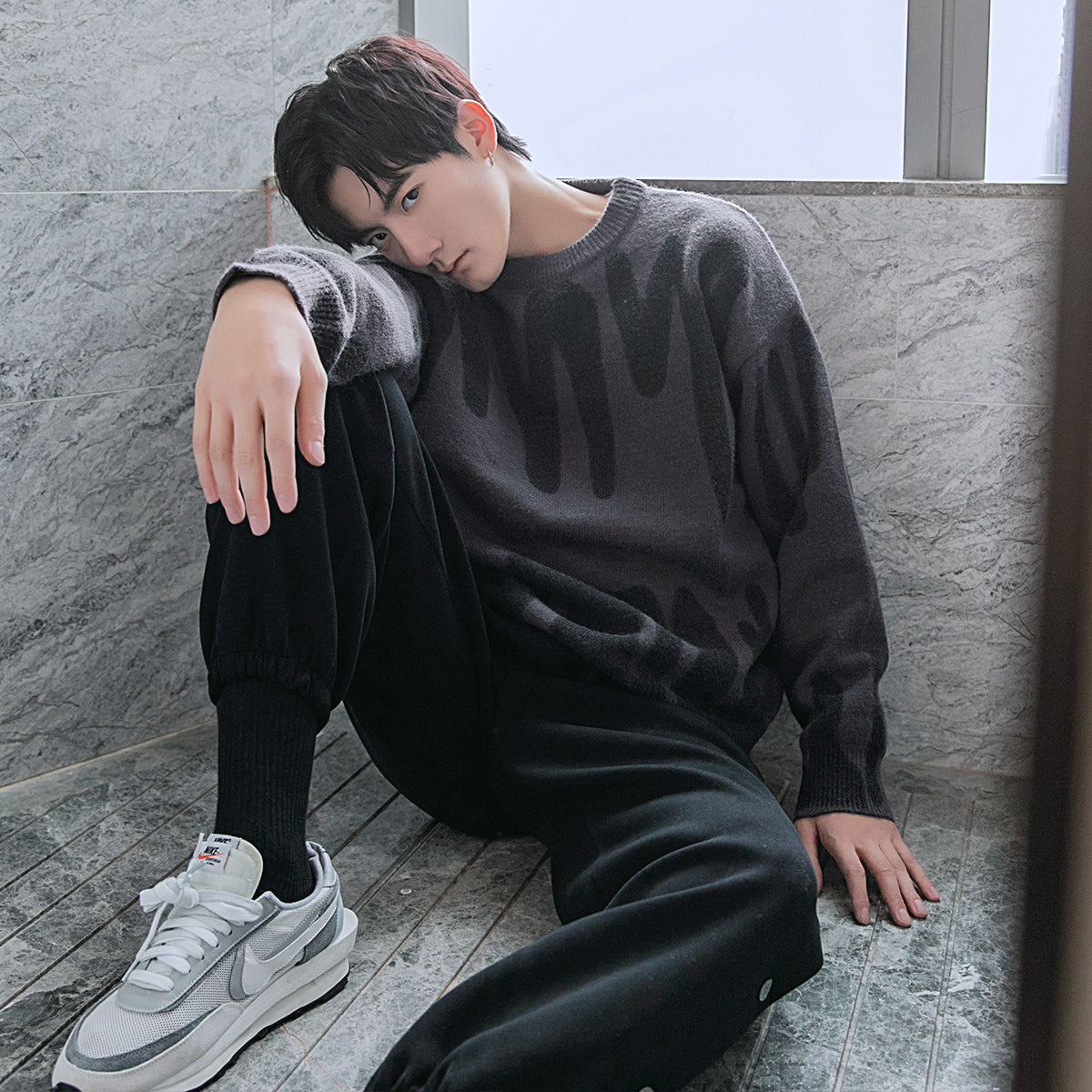 CHIC ERRO Chic Erro 2020 new autumn pullover college style sweater men's loose long-sleeved round neck graffiti sweater