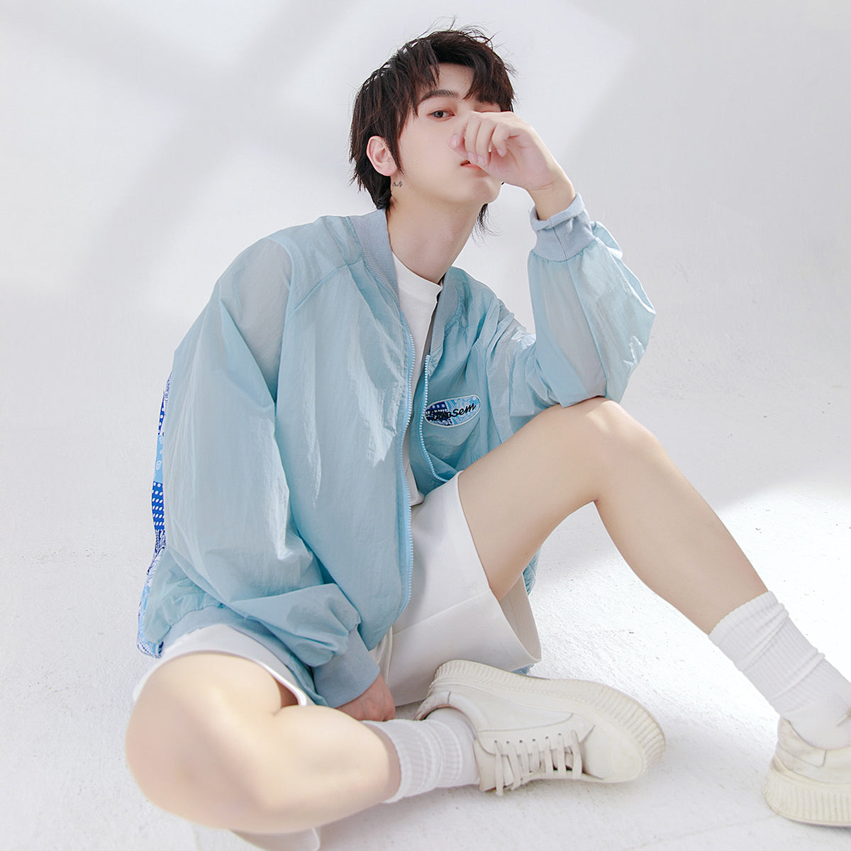 CHIC ERRO Chic Erro 2021 new casual shirt men's plaid stitching sunscreen shirt summer thin air-conditioned shirt jacket