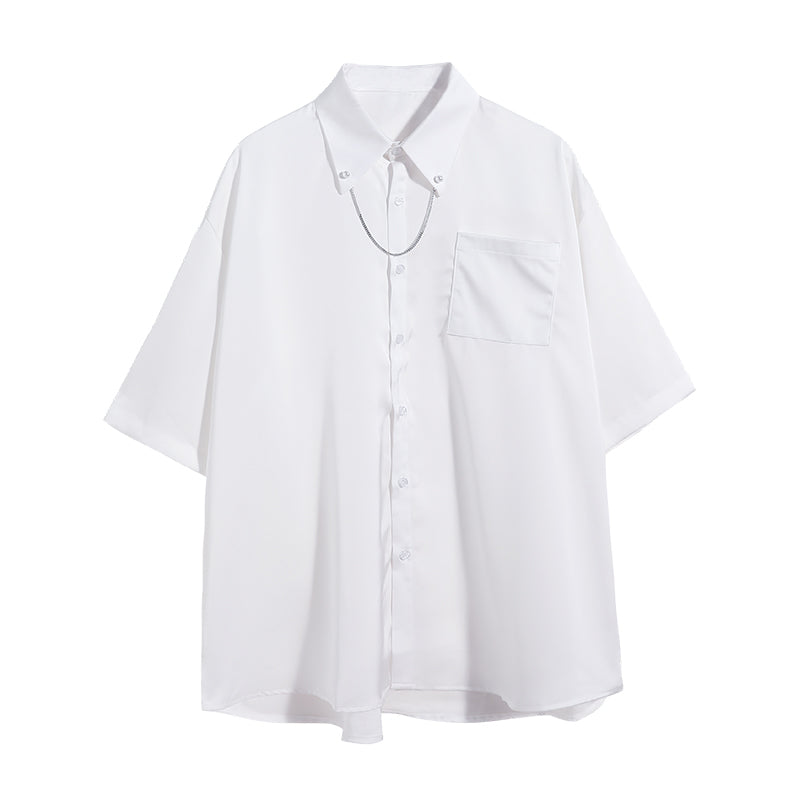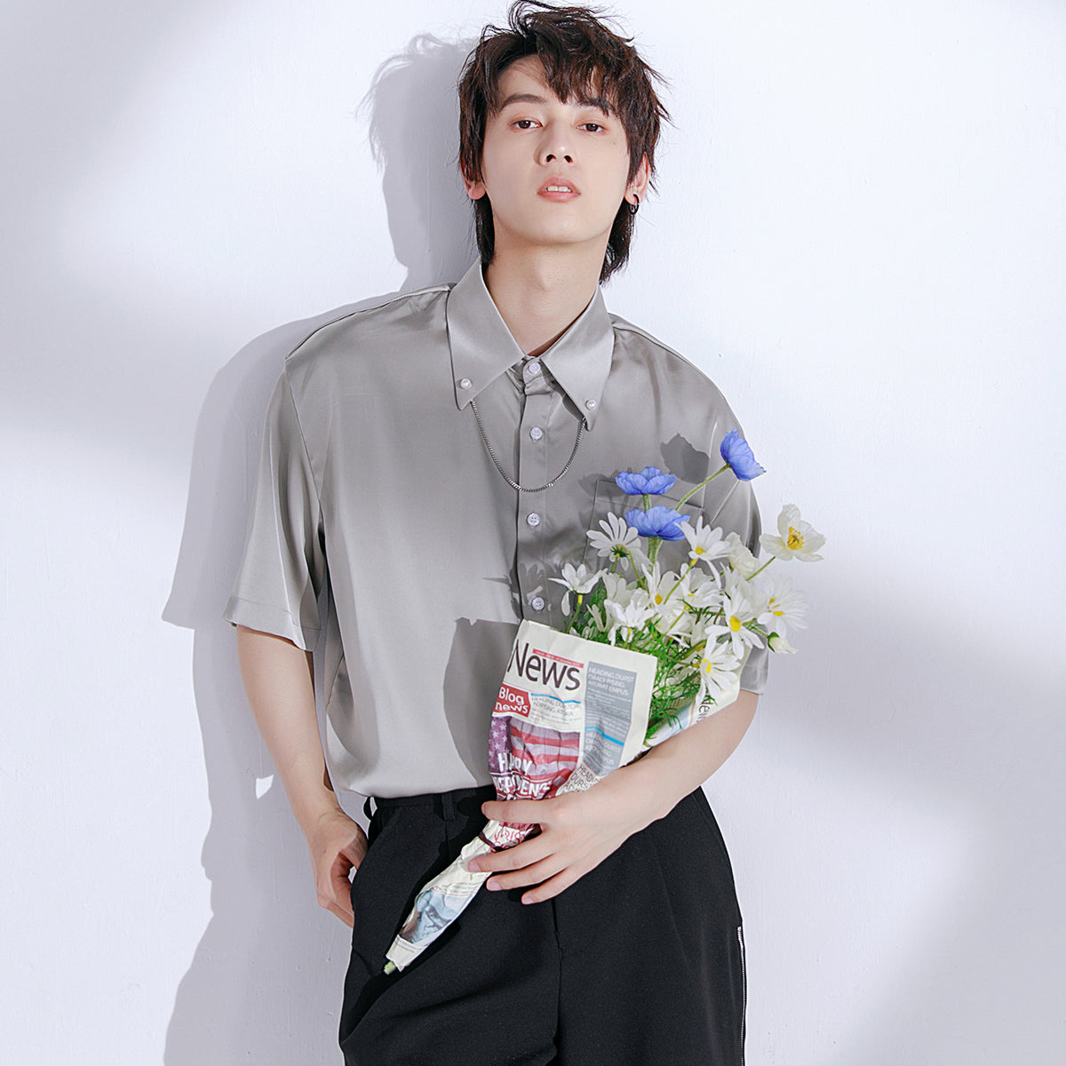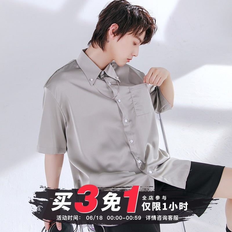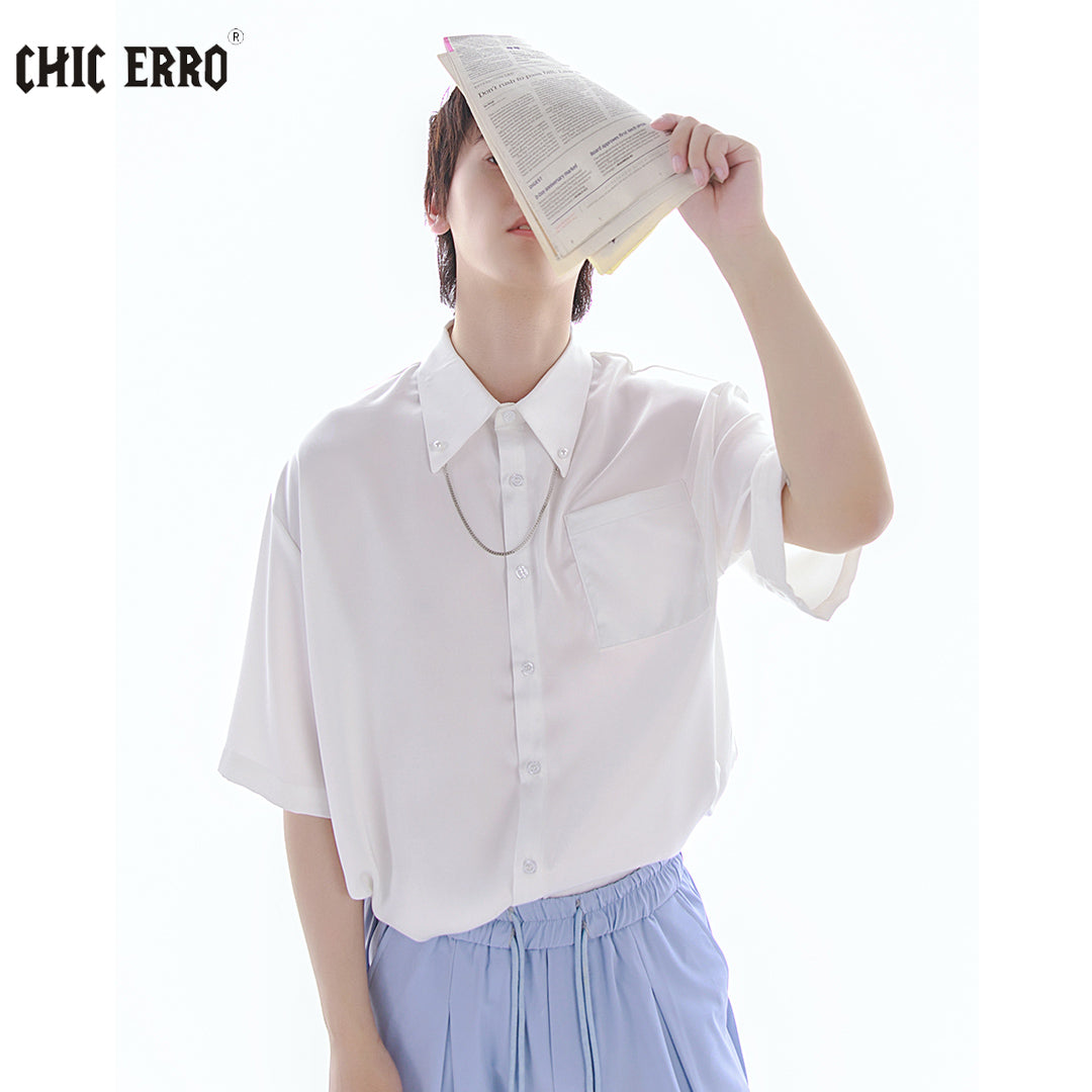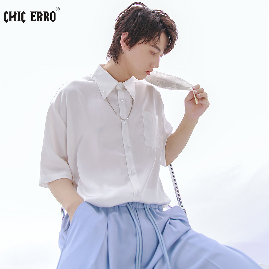 CHIC ERRO Chic Erro 2021 new casual short-sleeved shirt men's summer thin loose solid color half-sleeved shirt top