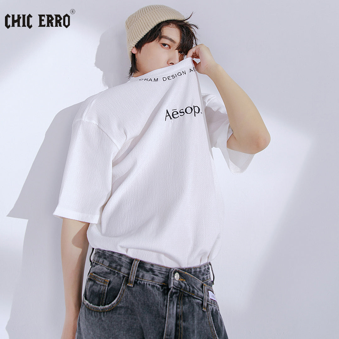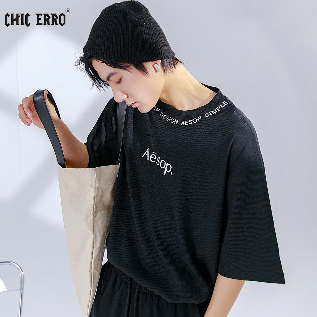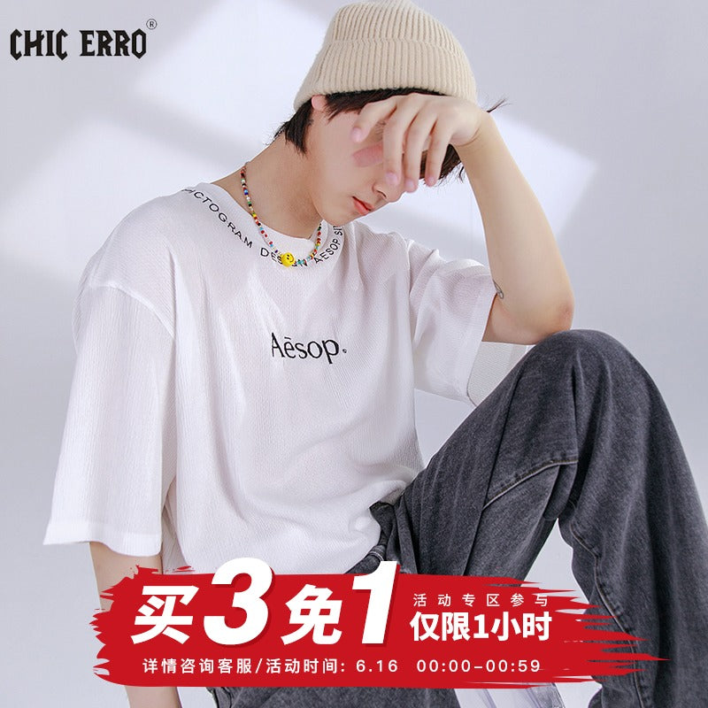 CHIC ERRO Chic Erro 2021 new embroidery short-sleeved t-shirt male ins tide brand youth loose round neck letter compassionate