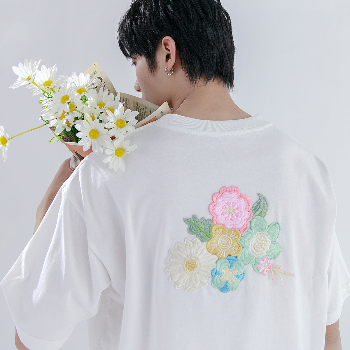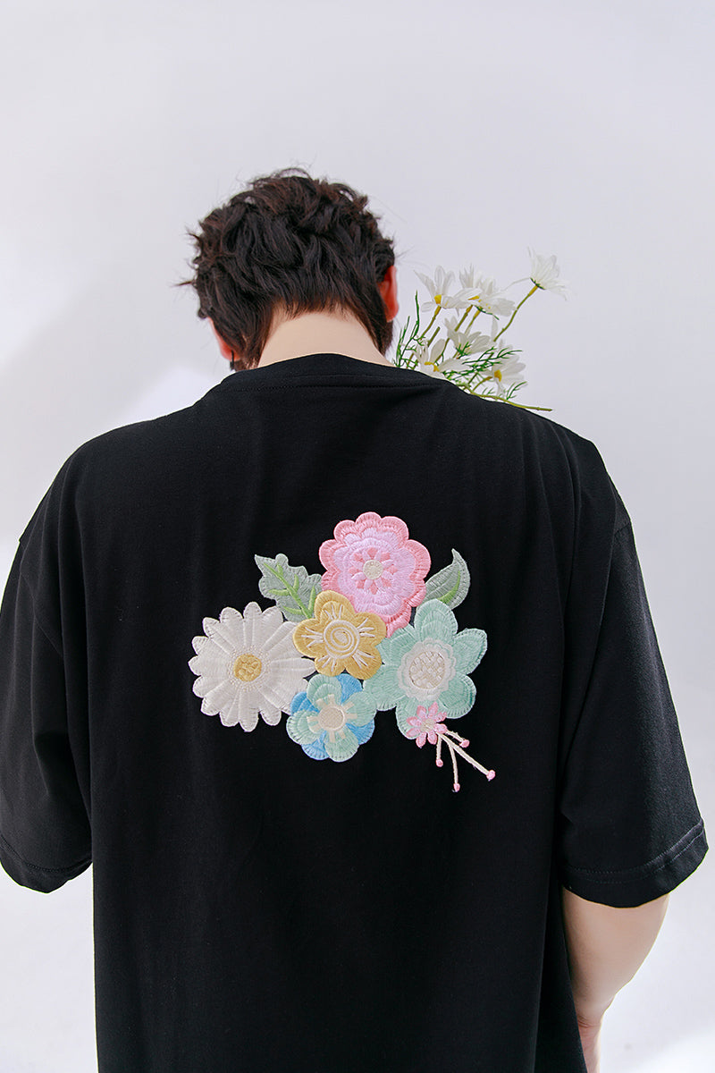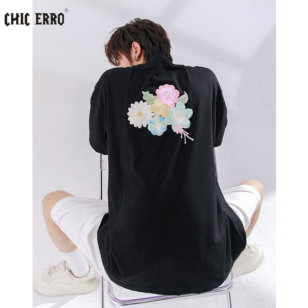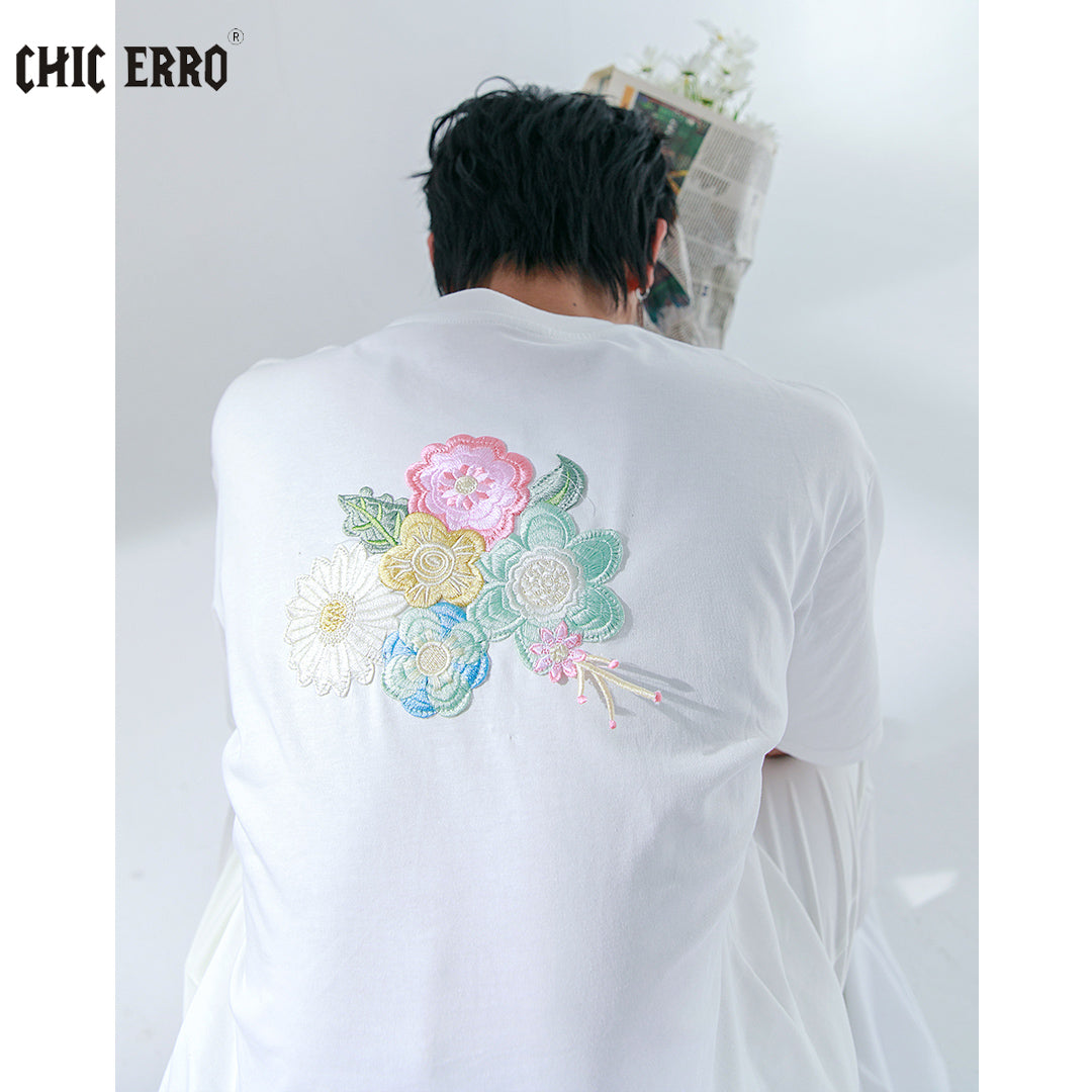 CHIC ERRO Chic Erro 2021 new flower embroidery short-sleeved T-shirt men's summer casual all-match trend t-shirt top