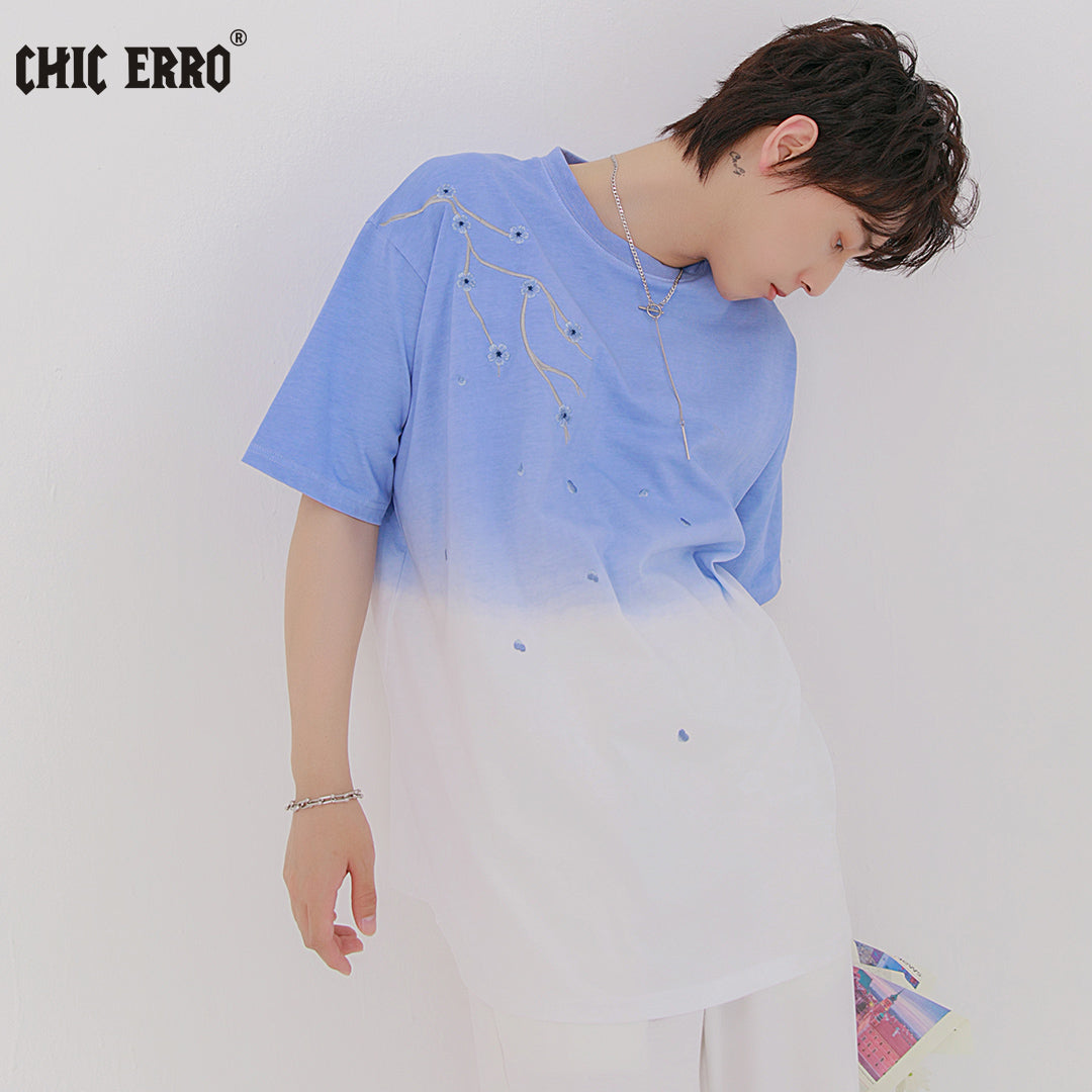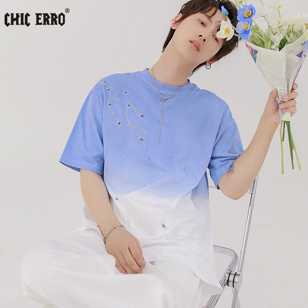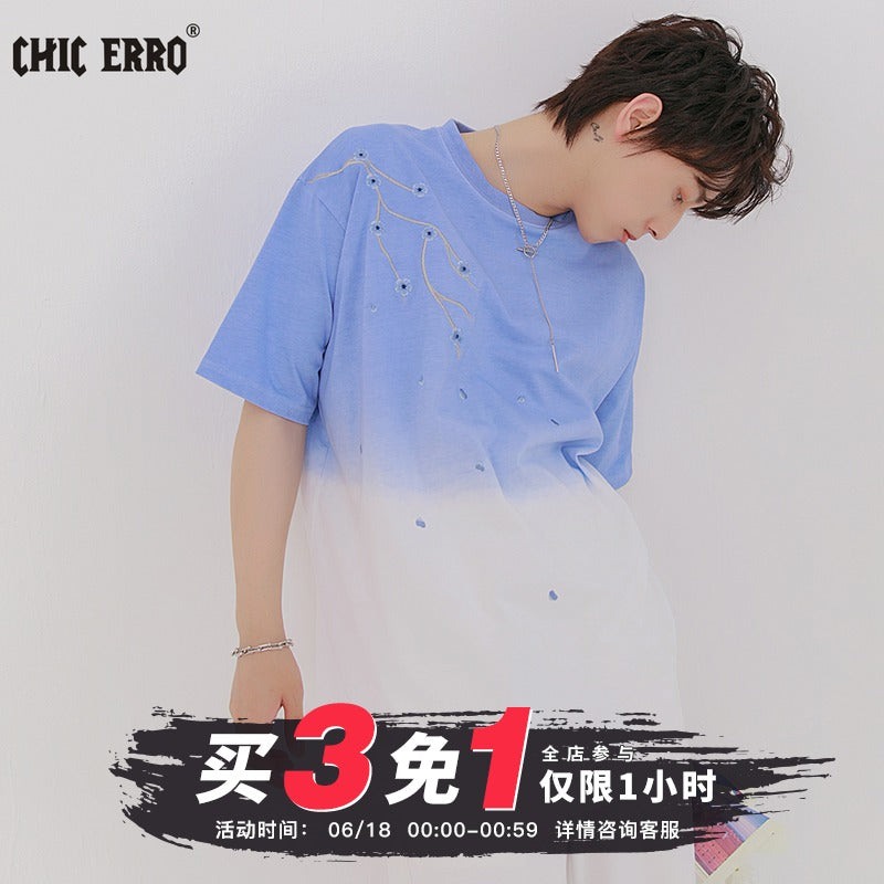 CHIC ERRO Chic Erro 2021 new flower embroidery short-sleeved t-shirt men's summer youth trend gradient t-shirt