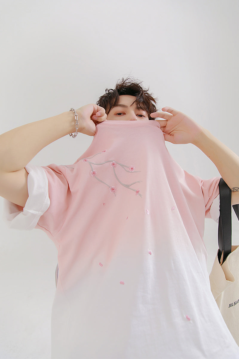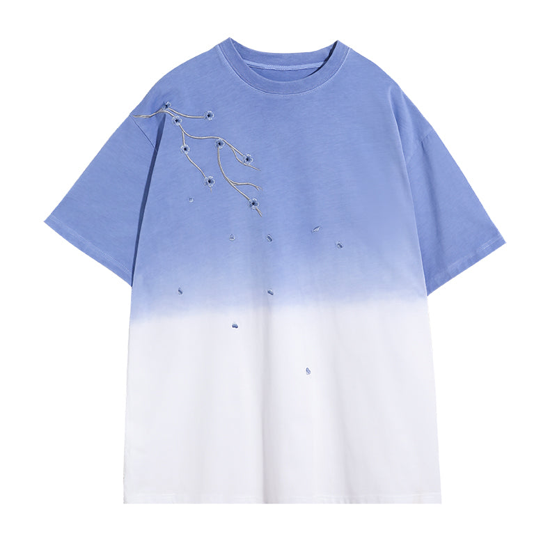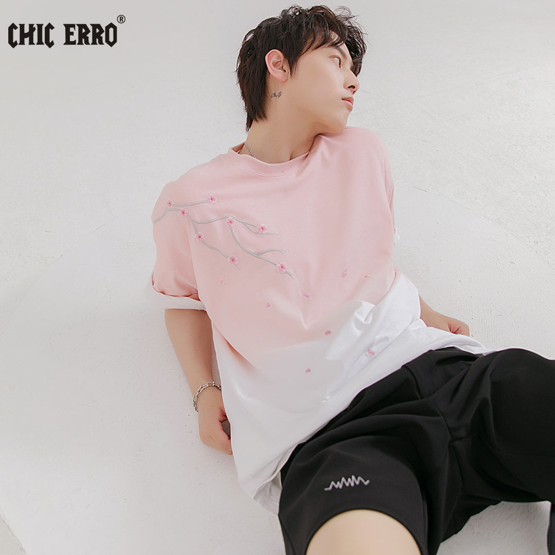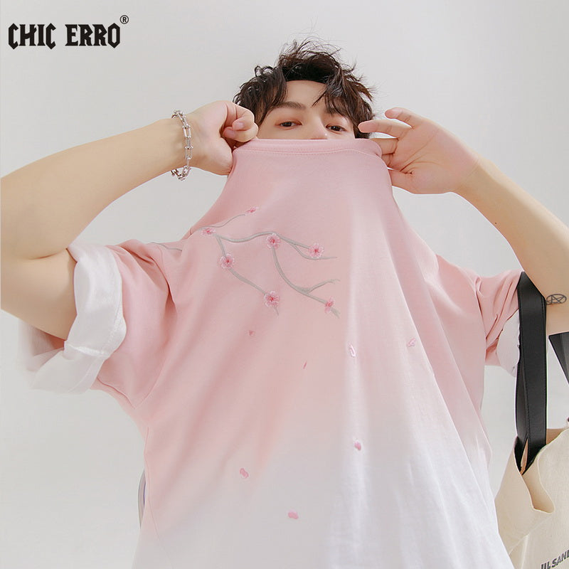 CHIC ERRO Chic Erro 2021 new flower embroidery short-sleeved t-shirt men's summer youth trend gradient t-shirt