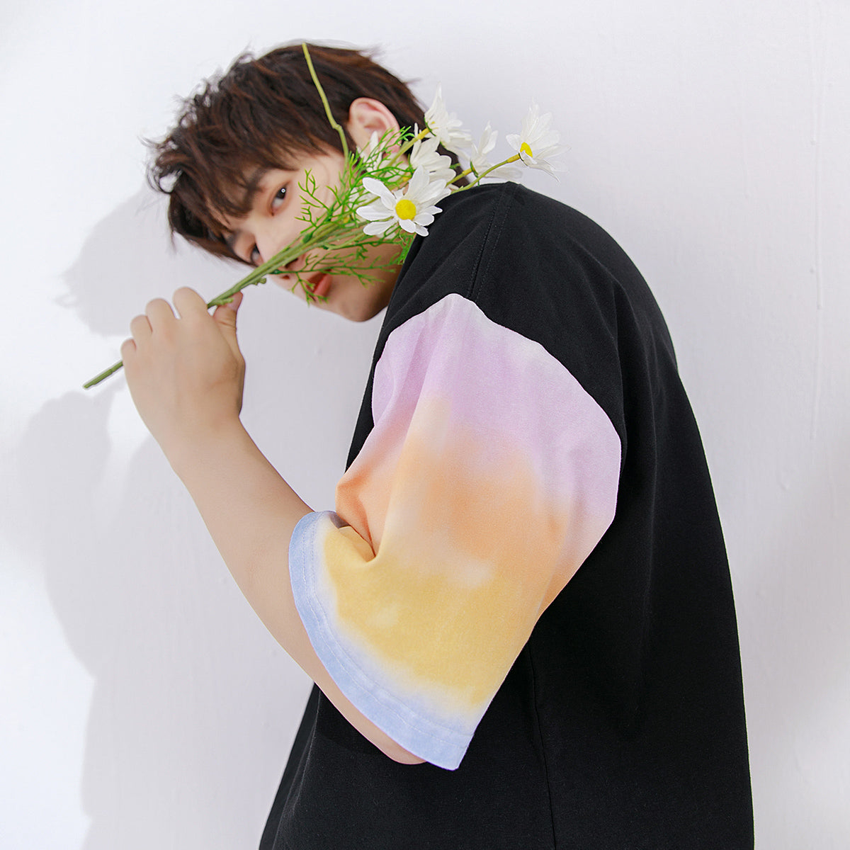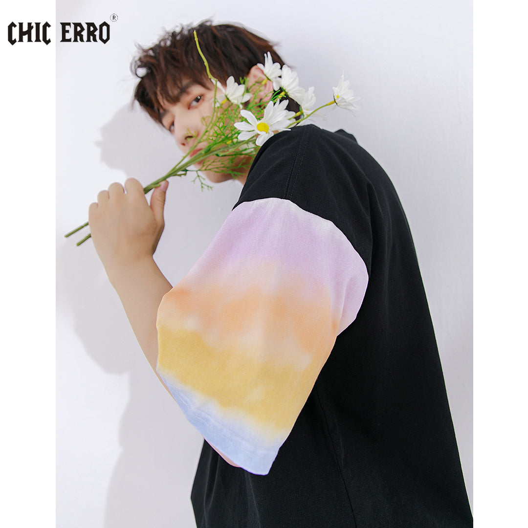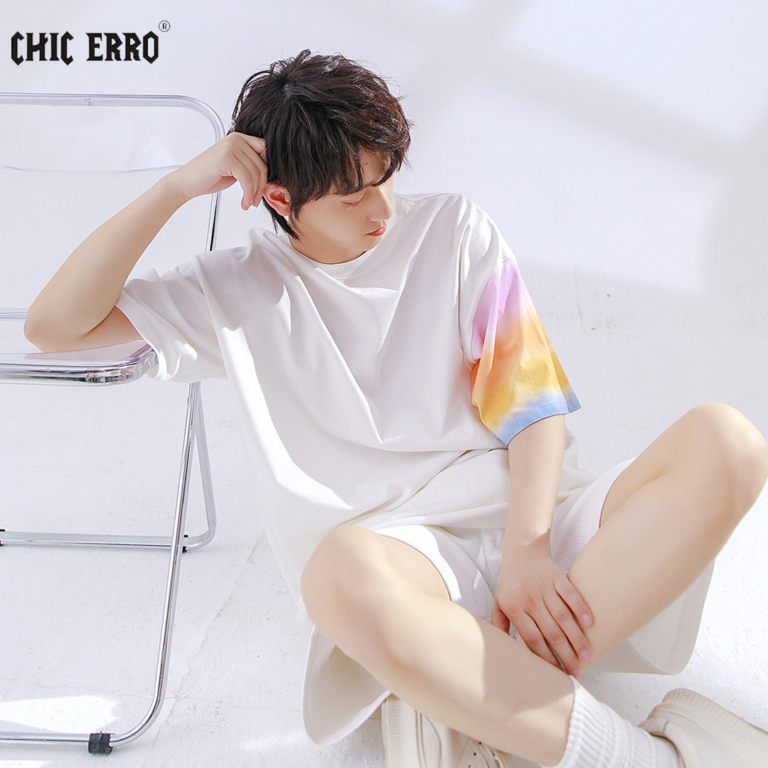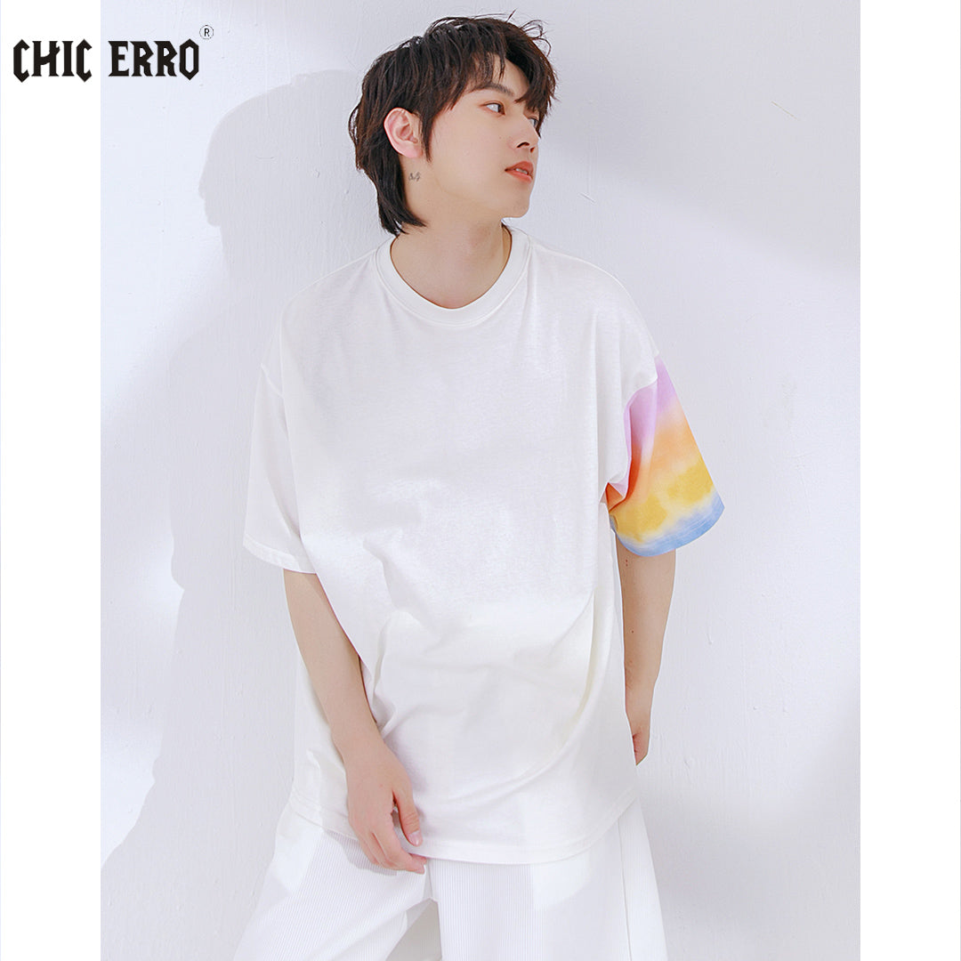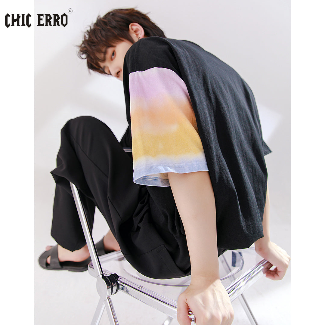 CHIC ERRO Chic Erro 2021 new gradient contrast stitching loose t-shirt men's short-sleeved men's summer casual t-shirt