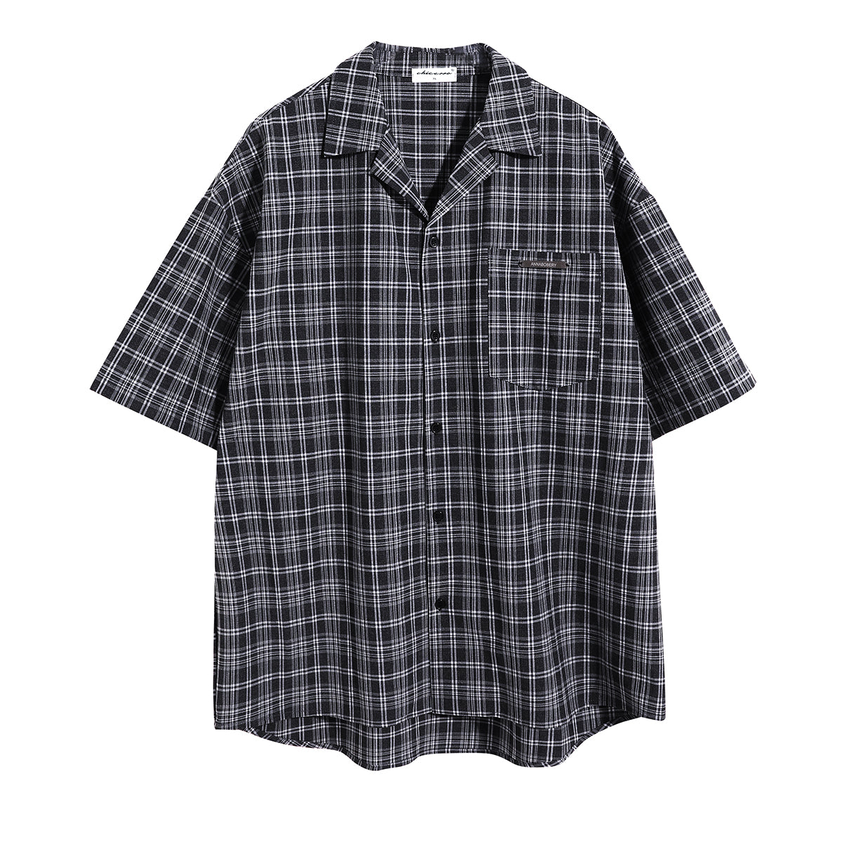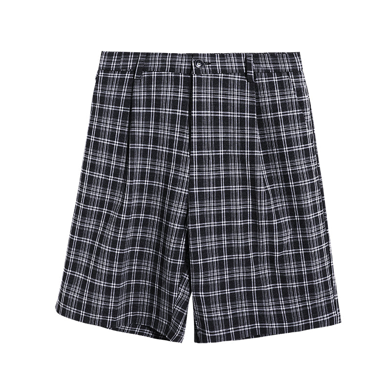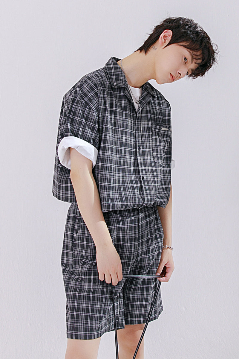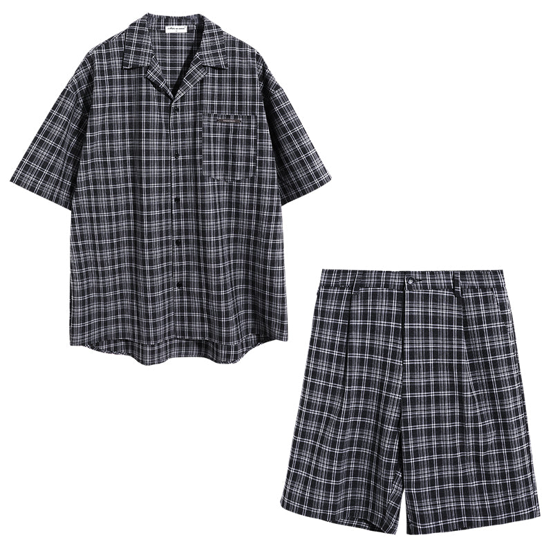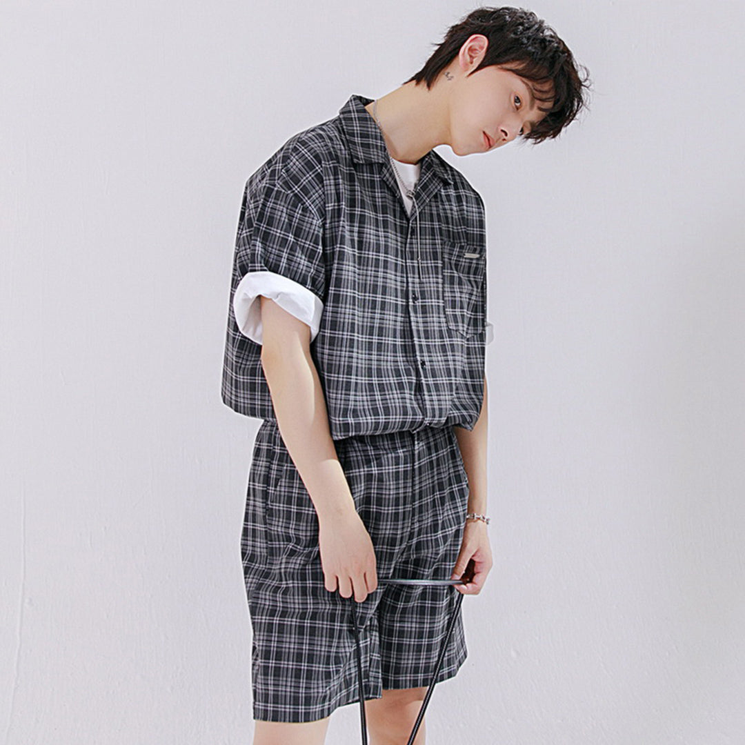 CHIC ERRO Chic Erro 2021 new plaid shirt men's summer short-sleeved loose straight shorts casual men's suit
