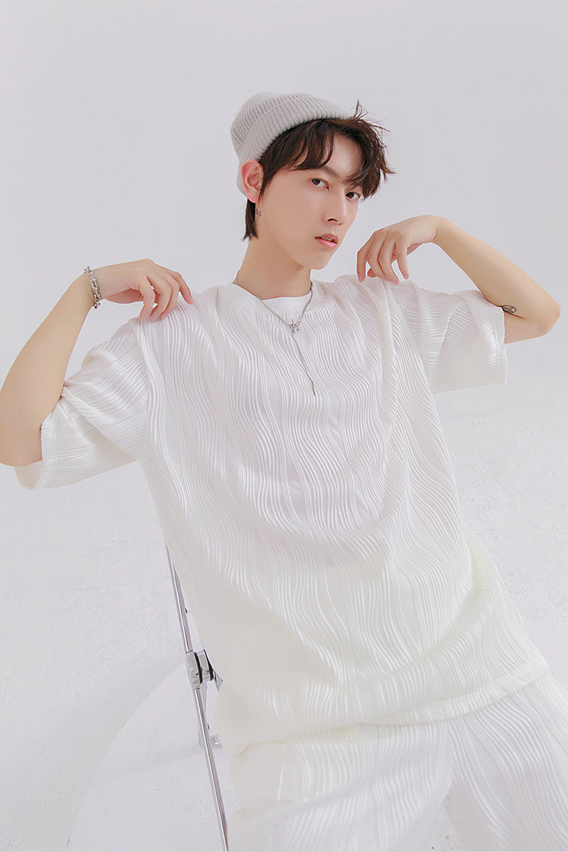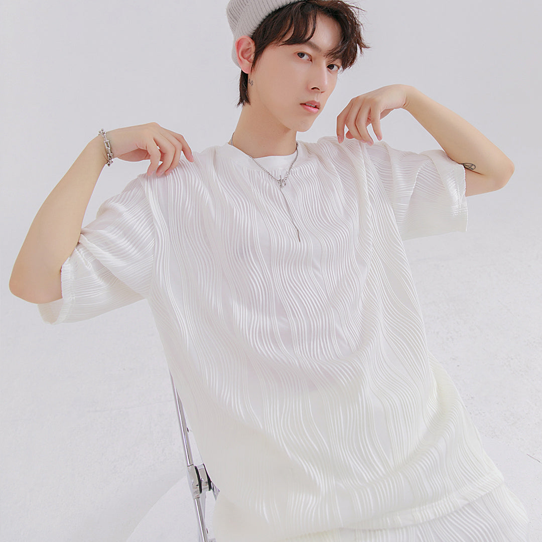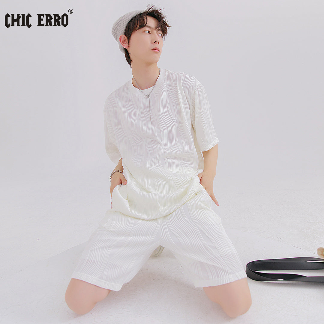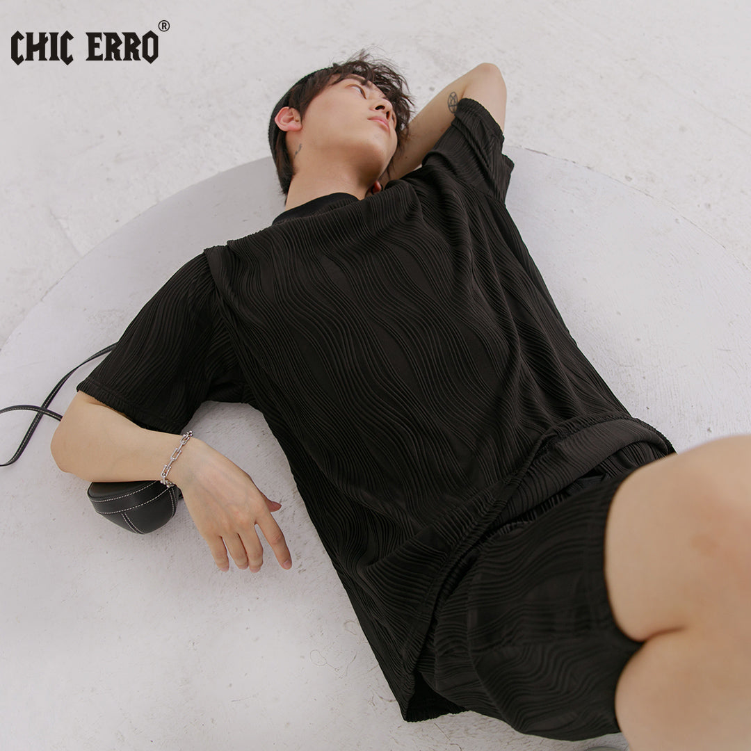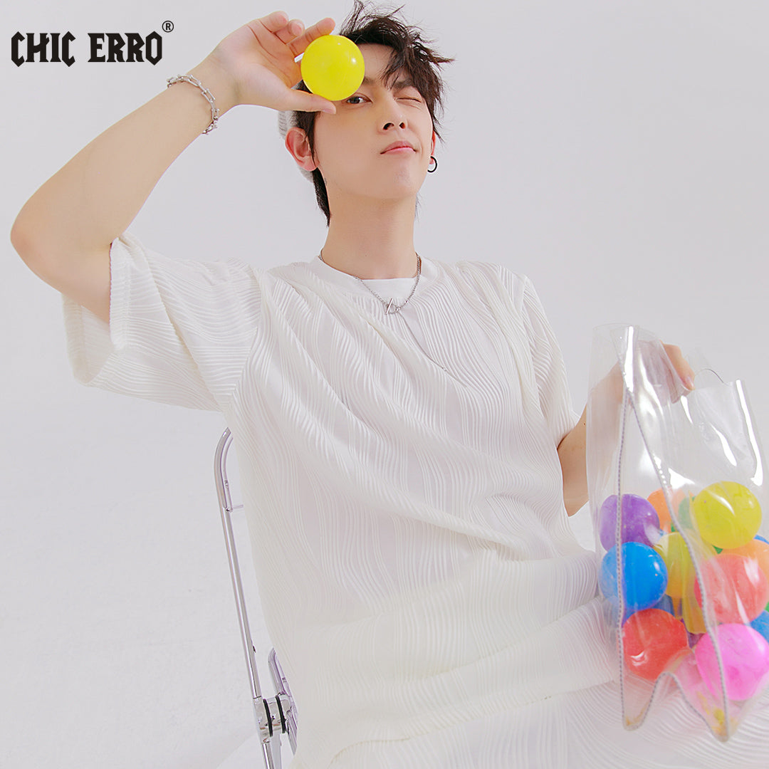 CHIC ERRO Chic Erro 2021 new pleated short-sleeved t-shirt men's loose thin section youth men's t-shirt tops