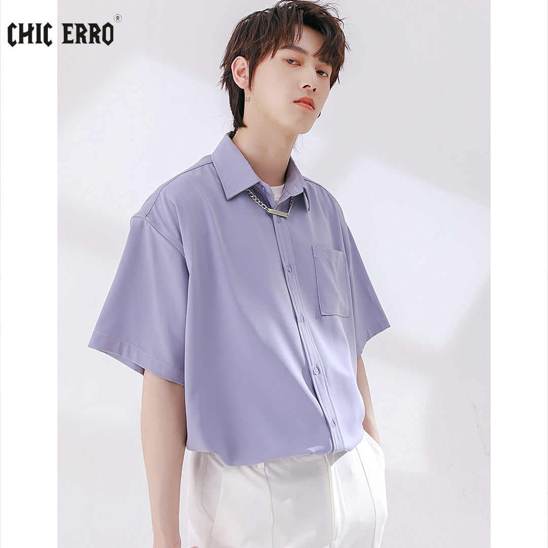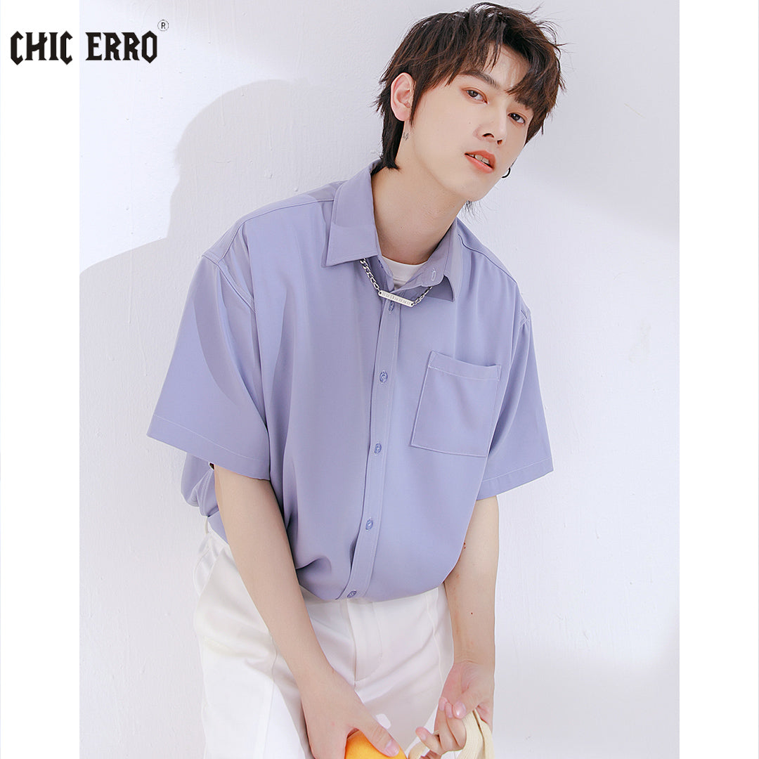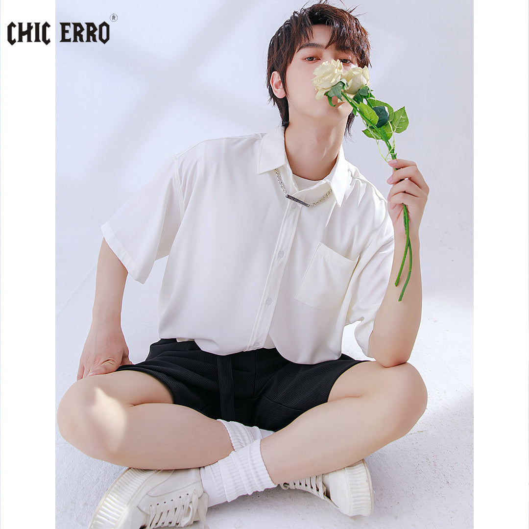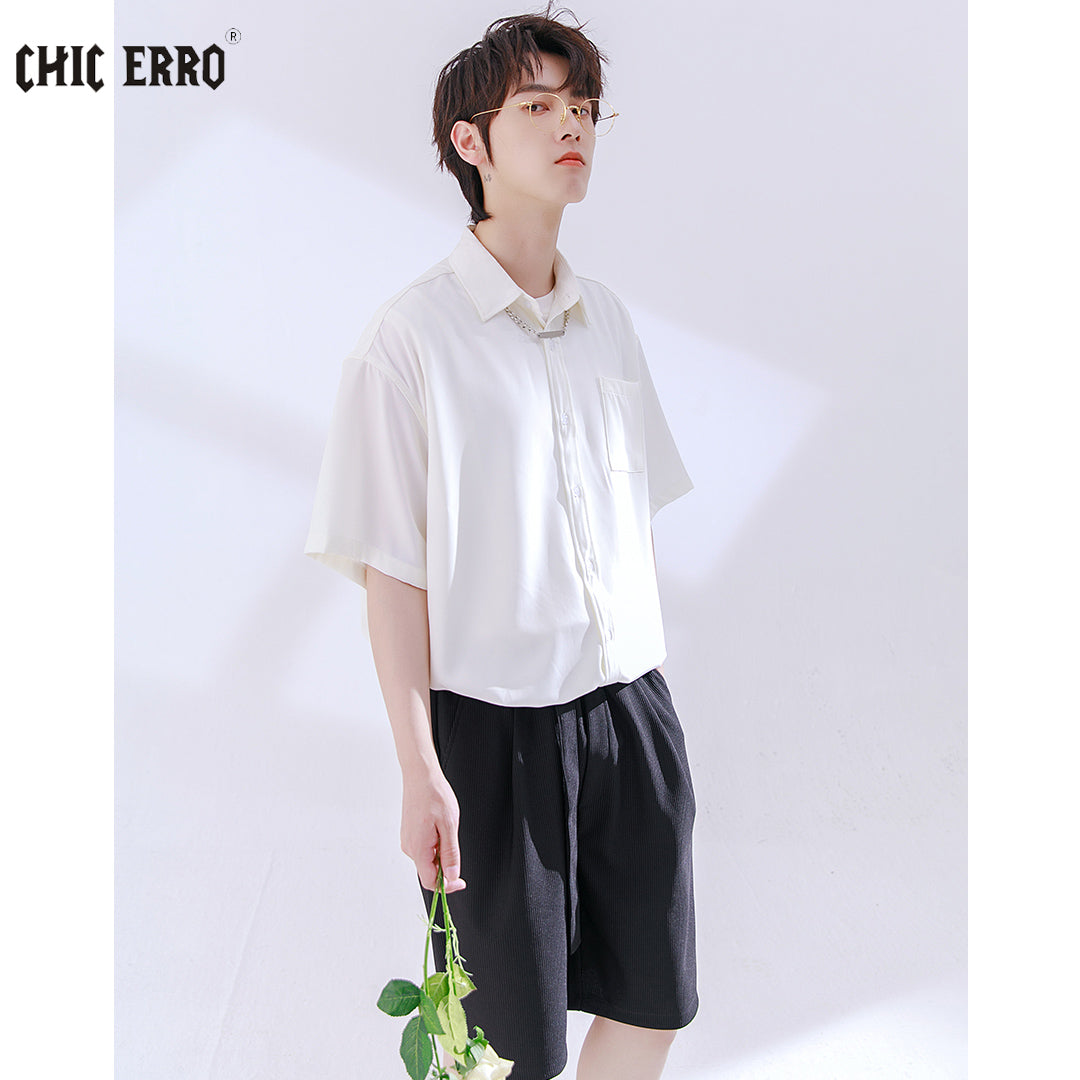 CHIC ERRO Chic Erro 2021 new short-sleeved shirt men's tide wild summer thin section handsome casual draped shirt