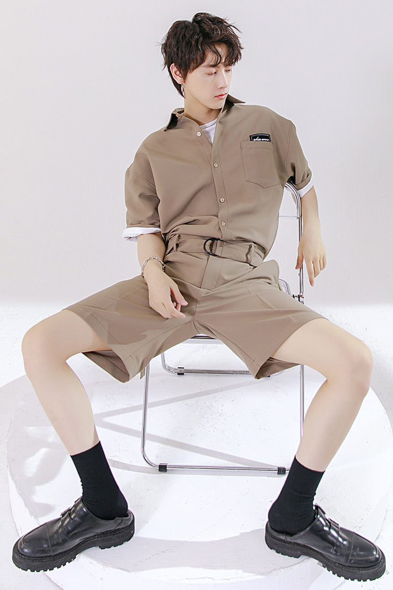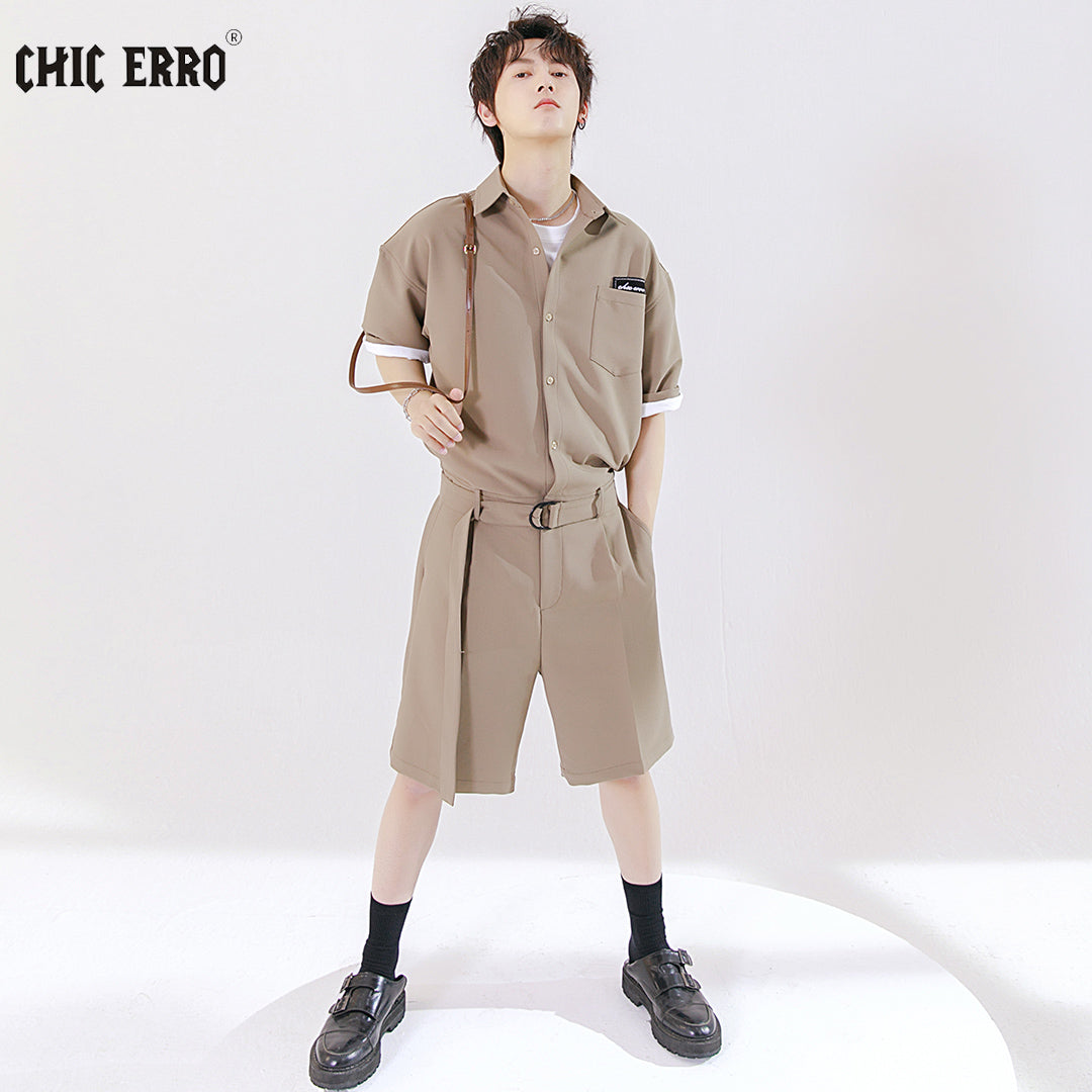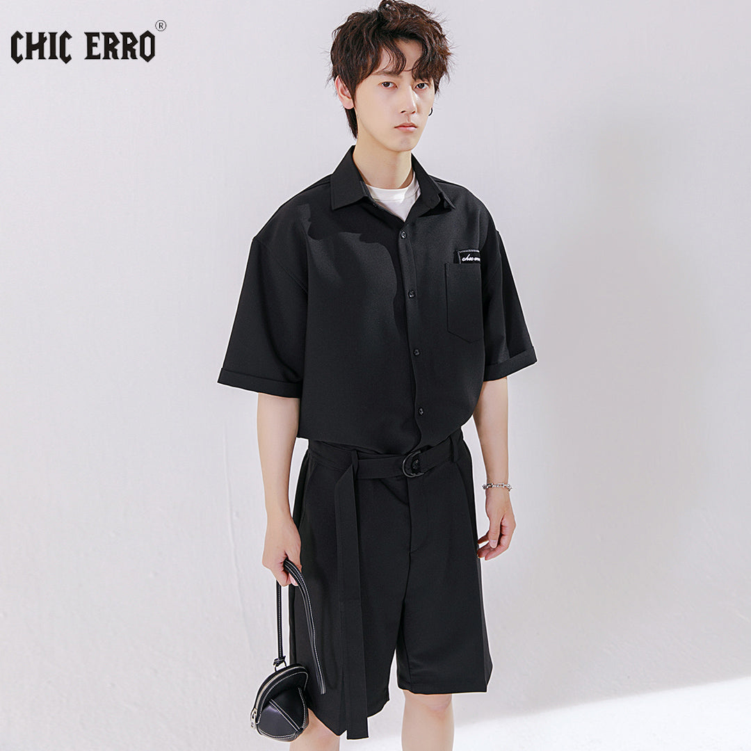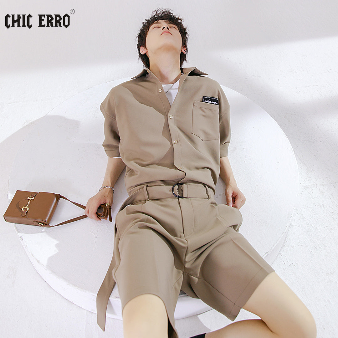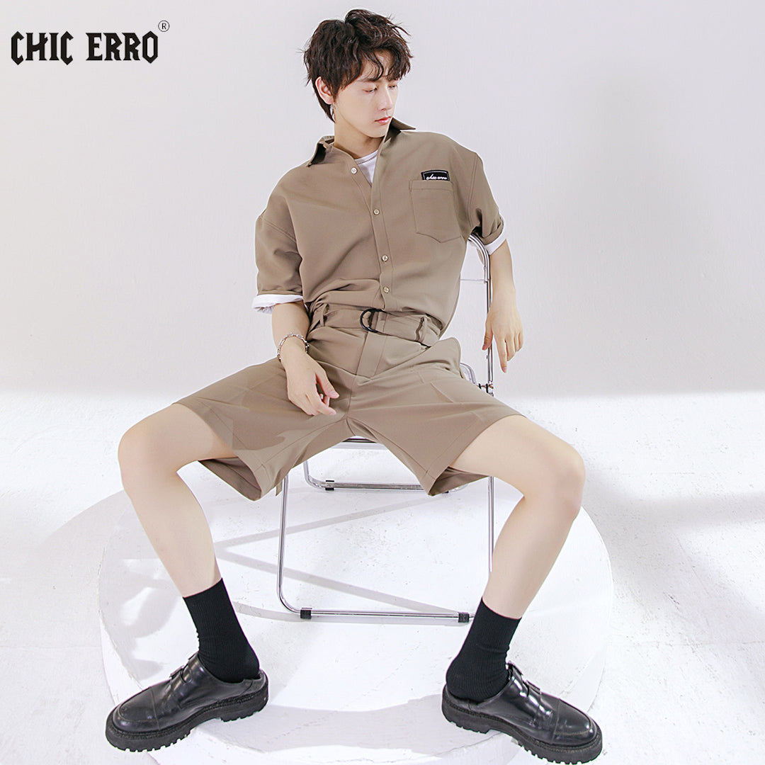 CHIC ERRO Chic Erro 2021 new short-sleeved shirt summer design sense niche youth loose thin jumpsuit