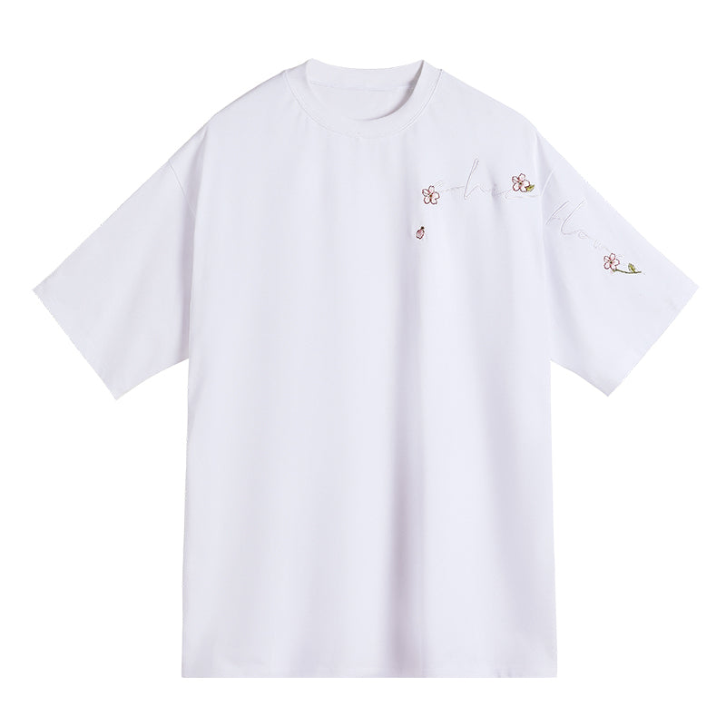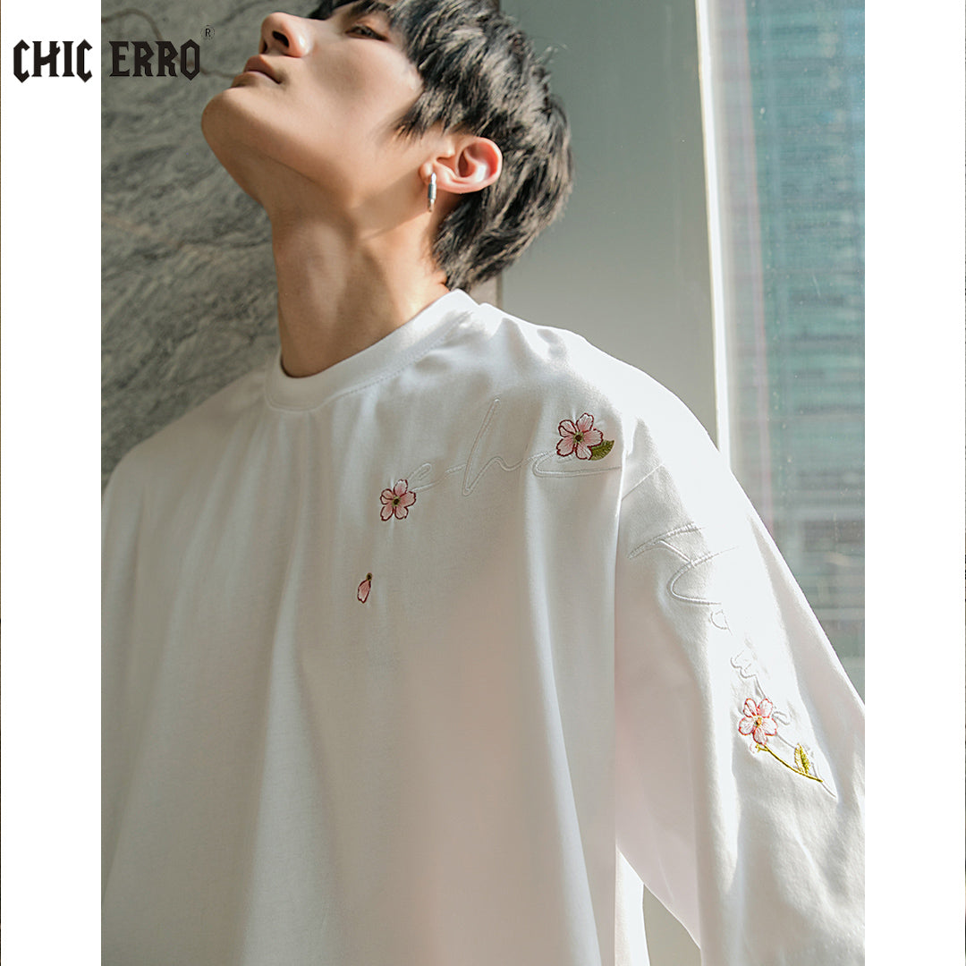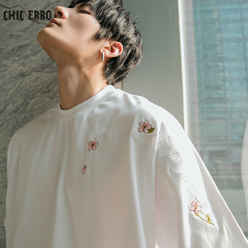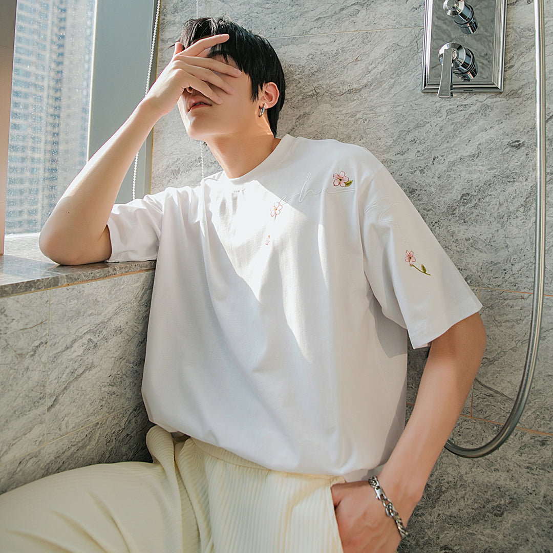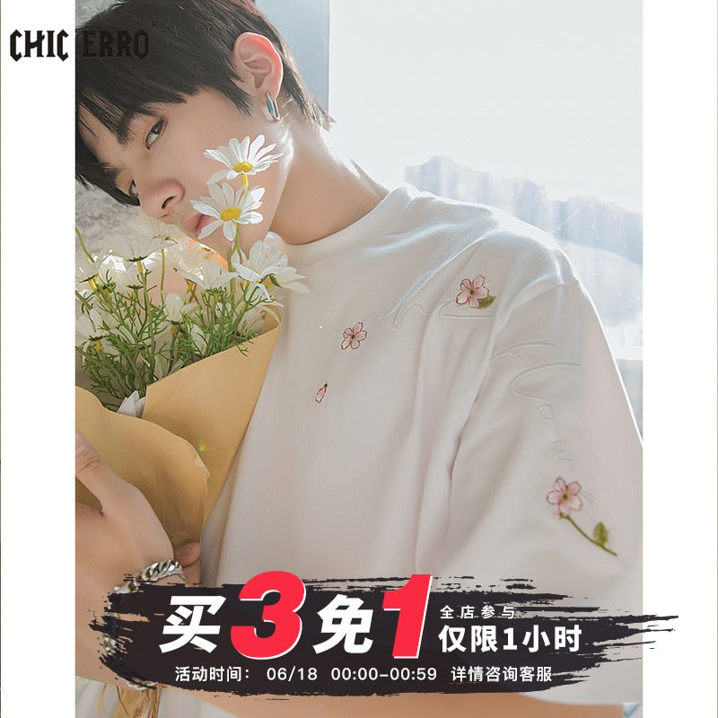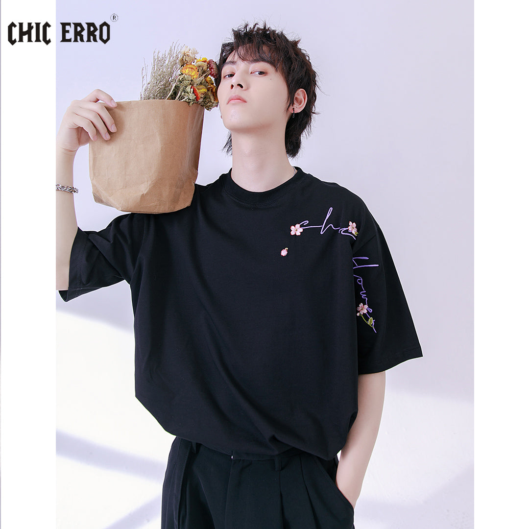 CHIC ERRO Chic Erro 2021 new short-sleeved t-shirt men's summer embroidery flowers loose men's casual t-shirt tops