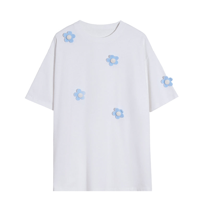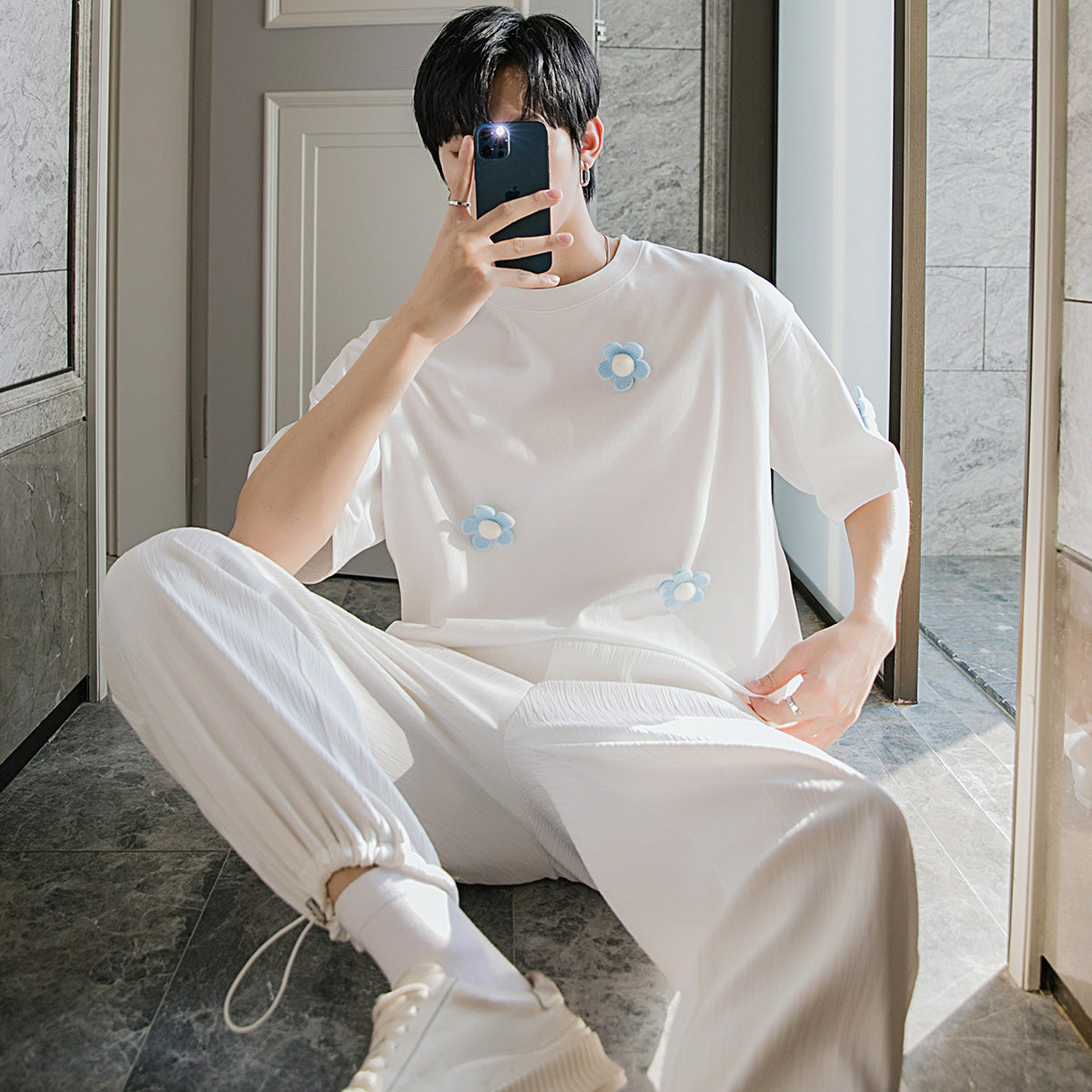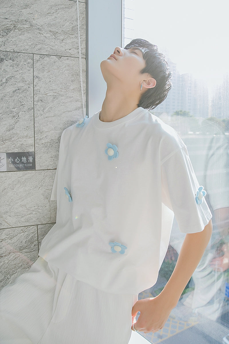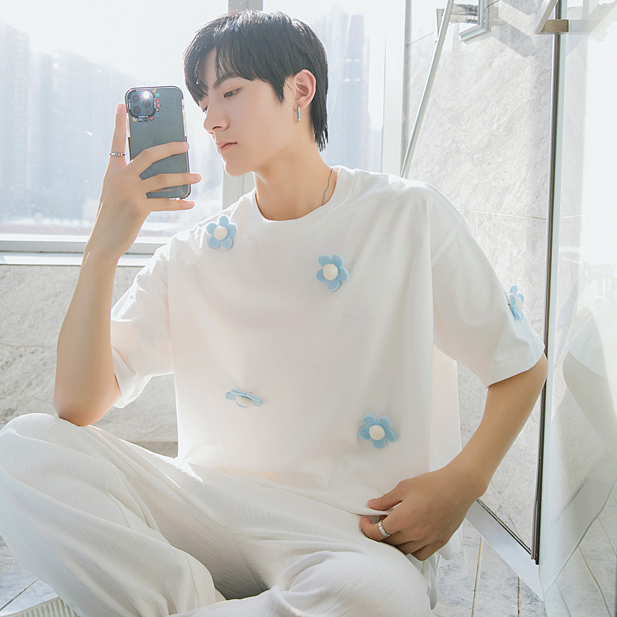 CHIC ERRO Chic Erro 2021 new summer loose short-sleeved T-shirt boys small flower patch youth round neck t-shirt