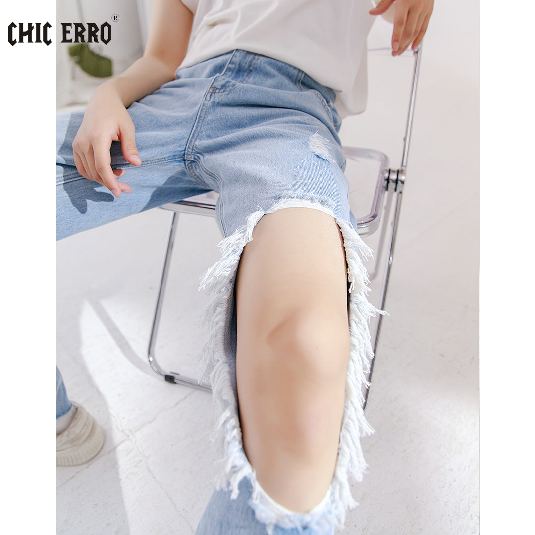 CHIC ERRO Chic Erro 2021 new summer ripped jeans men's loose straight design sense niche casual pants