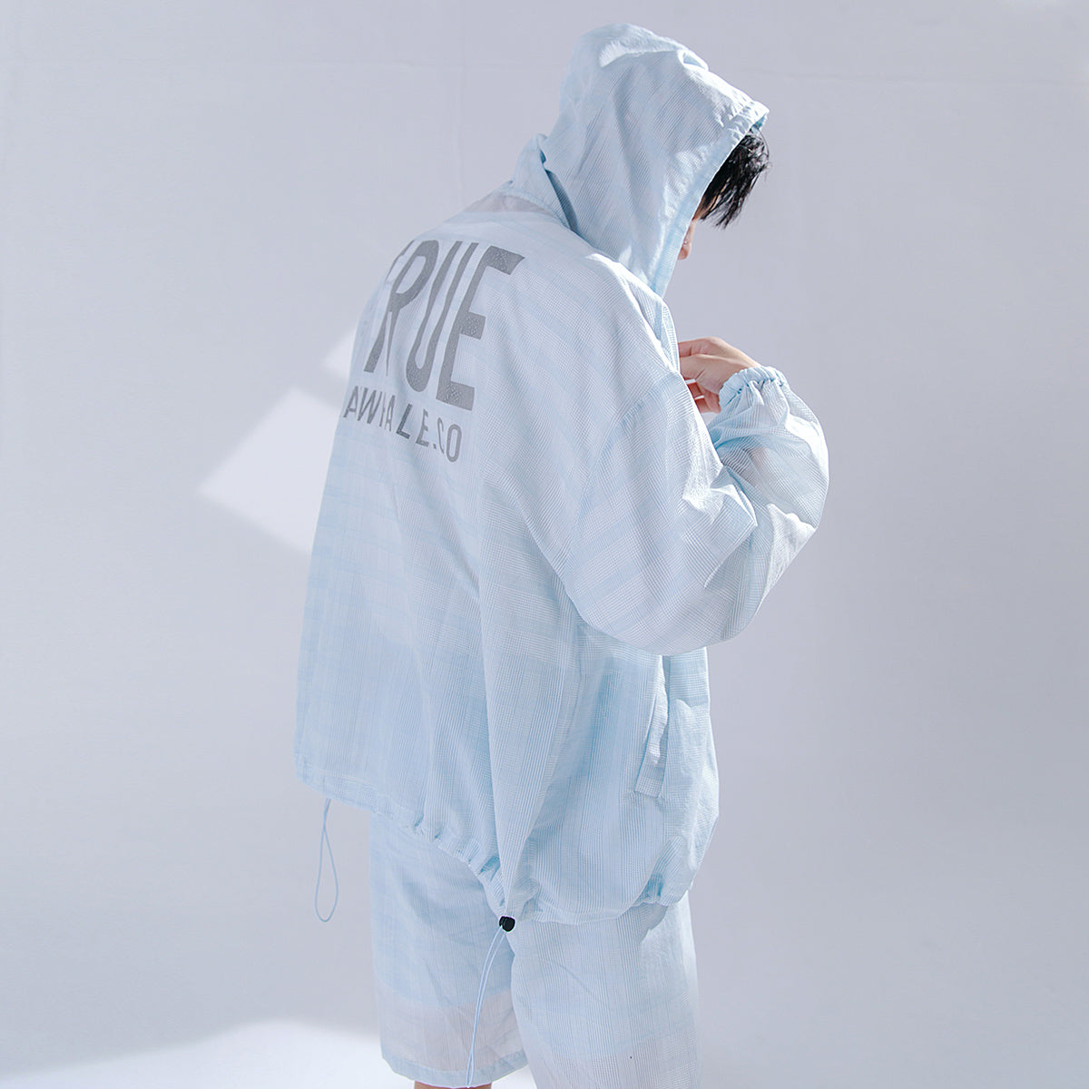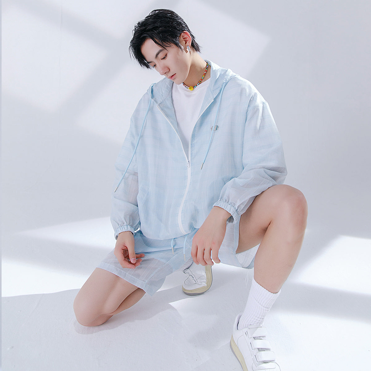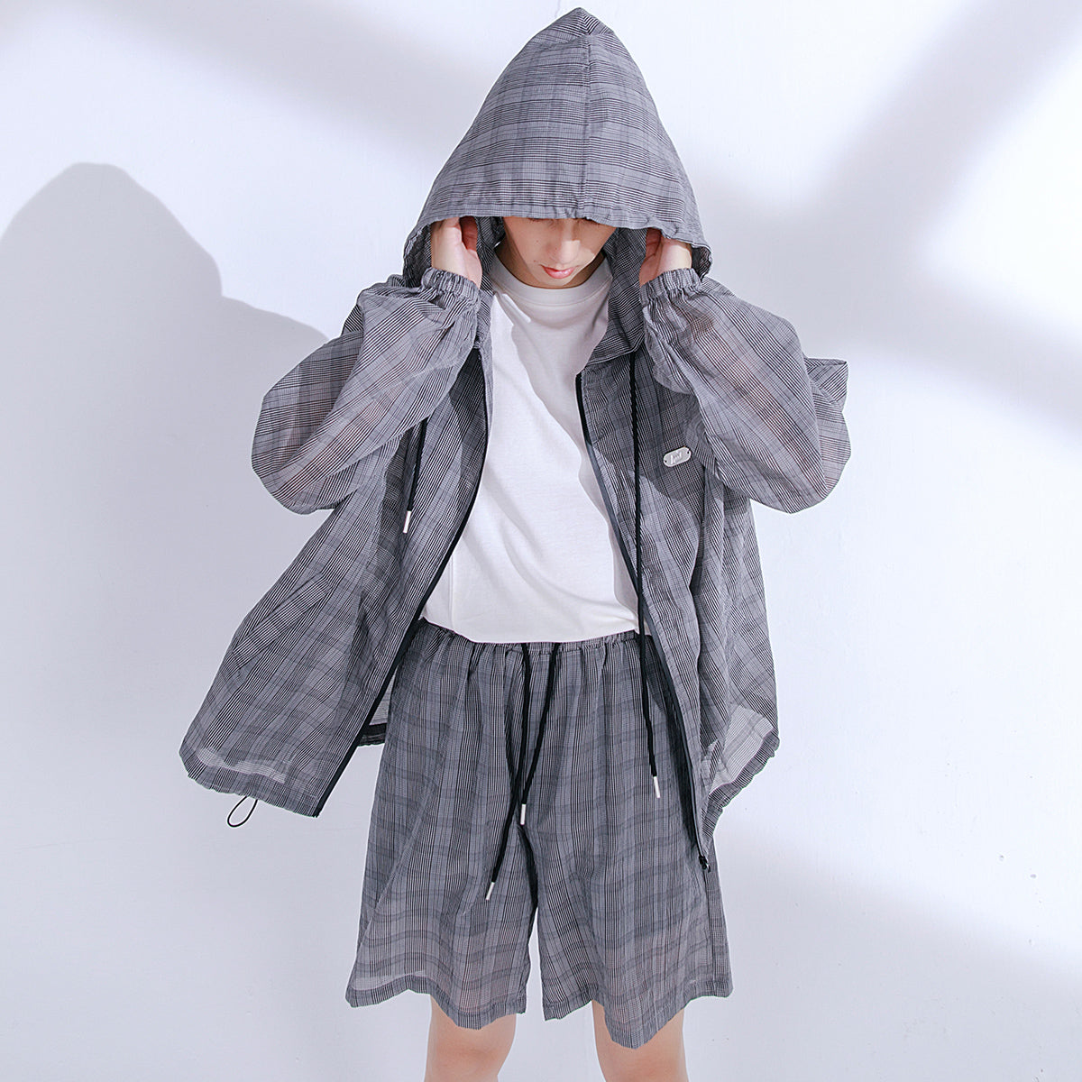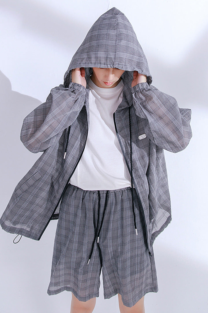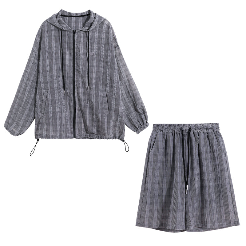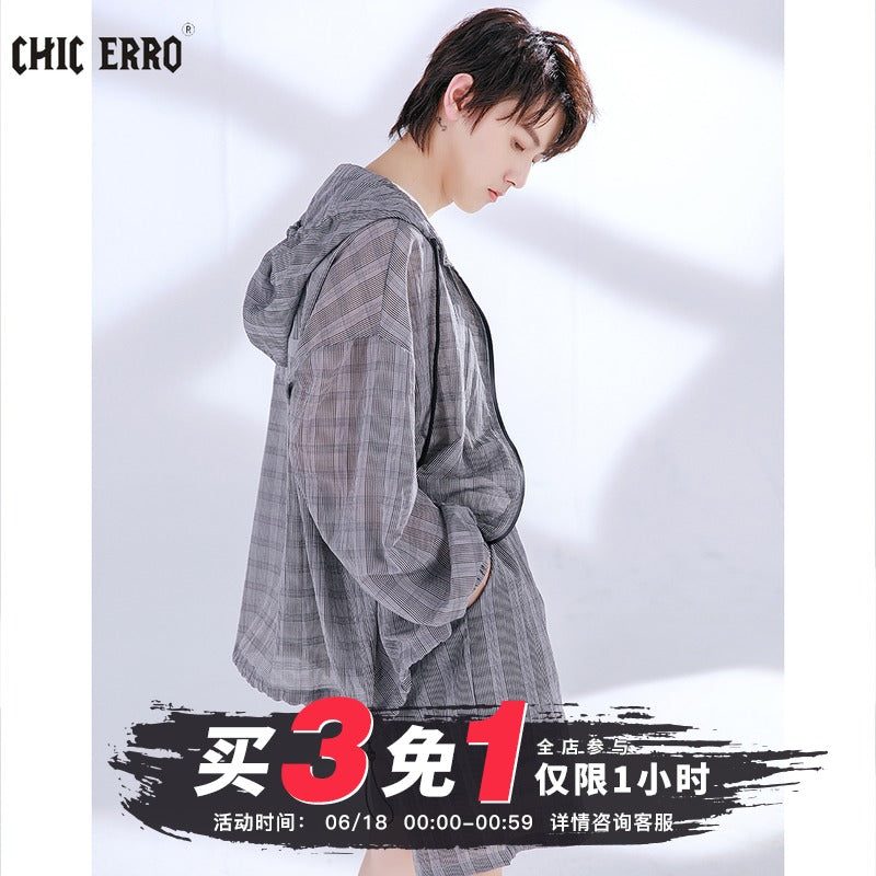 CHIC ERRO Chic Erro 2021 new summer sun protection thin shirt hooded plaid shorts youth men's casual suit
