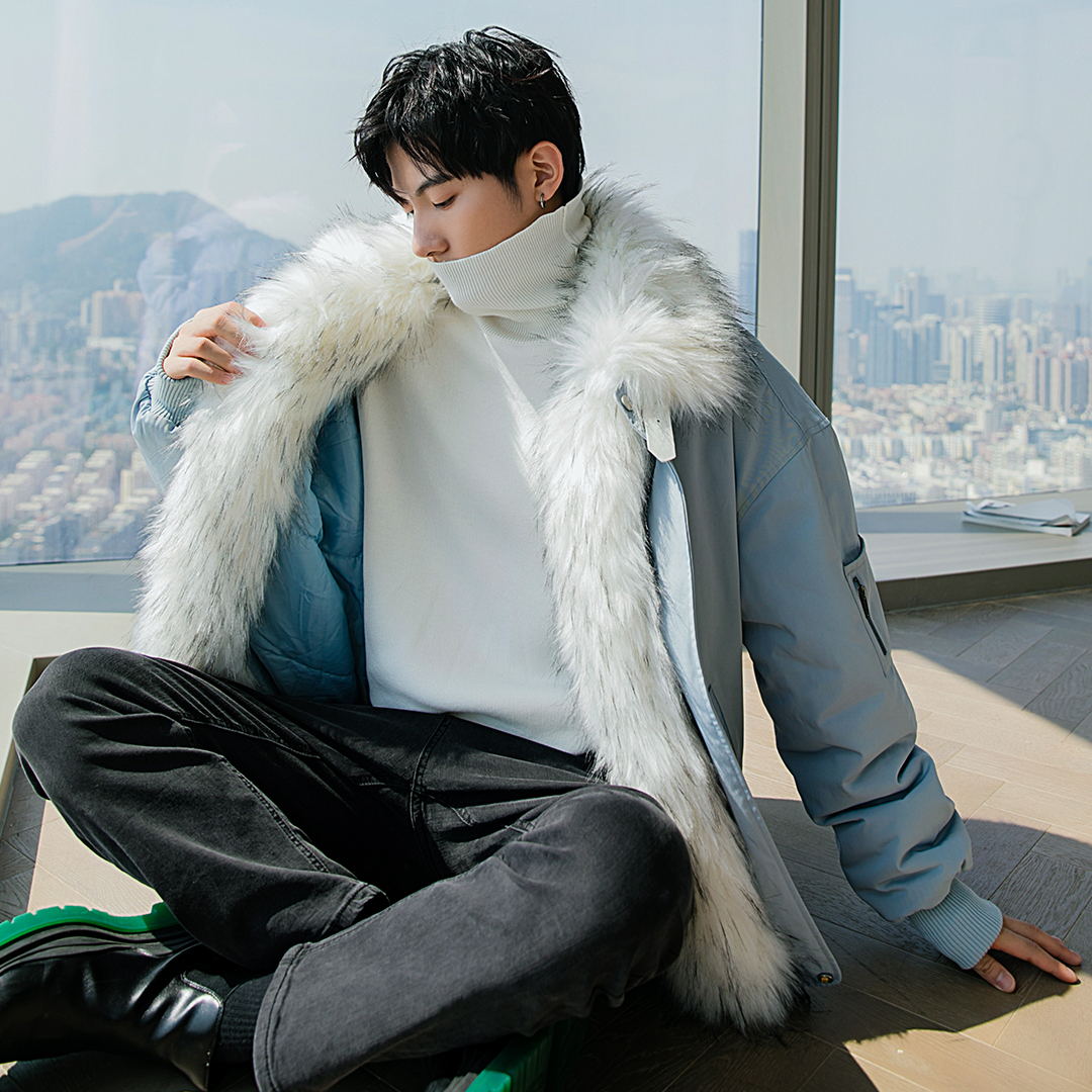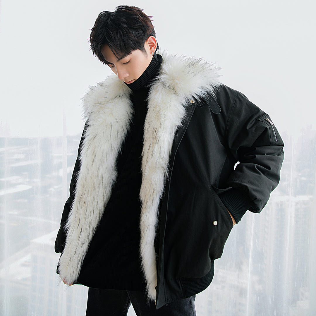 CHIC ERRO Chic Erro and men's winter new coats are warm and loose Korean style trendy youth fur collar handsome cotton coat