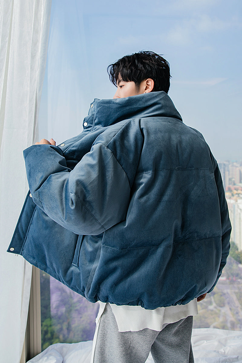 CHIC ERRO Chic Erro and men's winter new stand-up collar cotton-padded clothes trend velvet bread clothes solid color warm thick coat