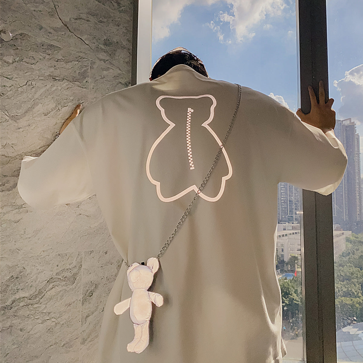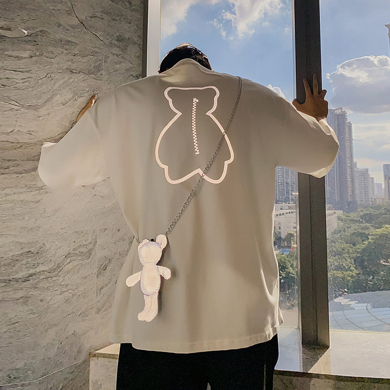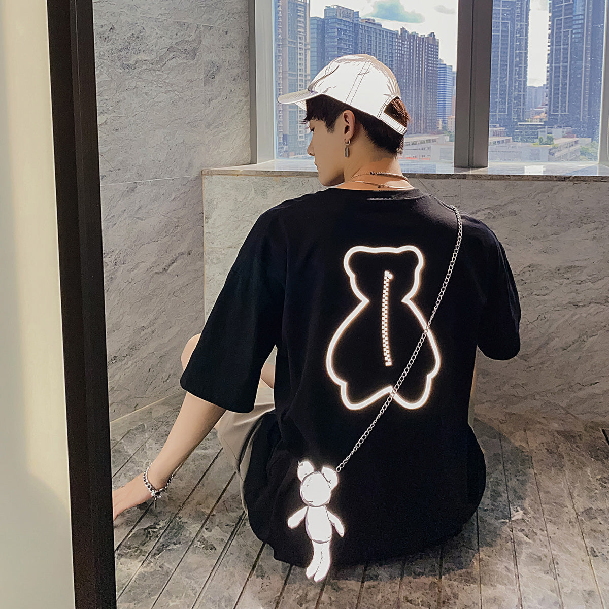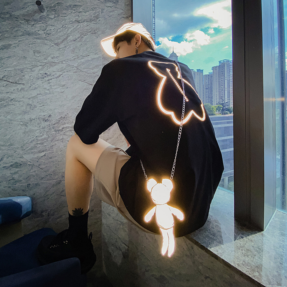 CHIC ERRO Chic Erro assembly bag style half-sleeved men's trend loose five-point sleeve reflective printing white short-sleeved t-shirt