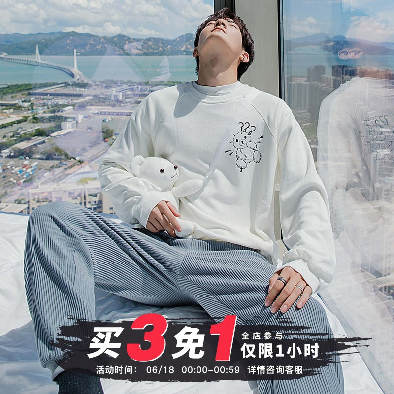 CHIC ERRO Chic Erro assembly shoulder bag autumn Korean style tops men's loose white bear cute sweater men's trend
