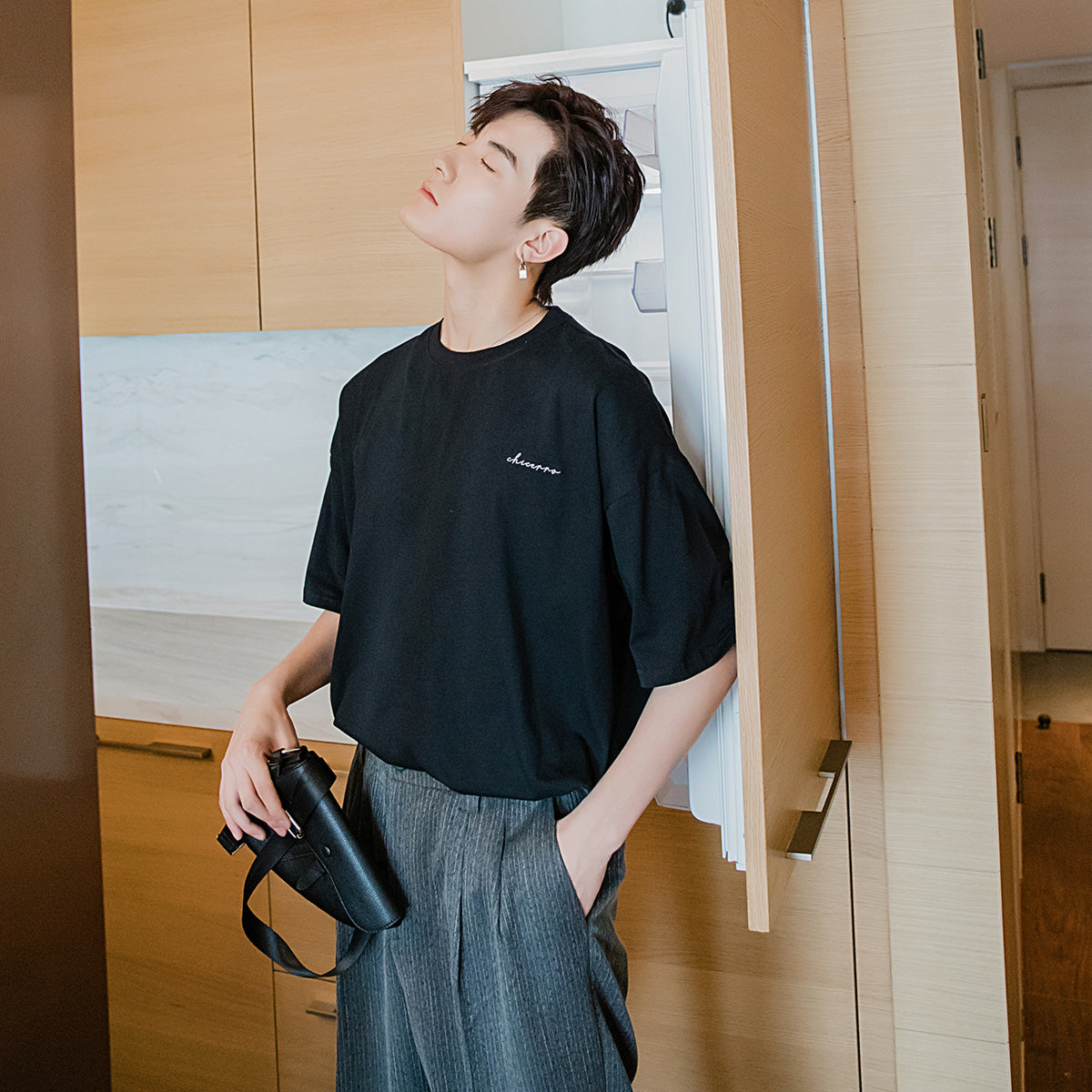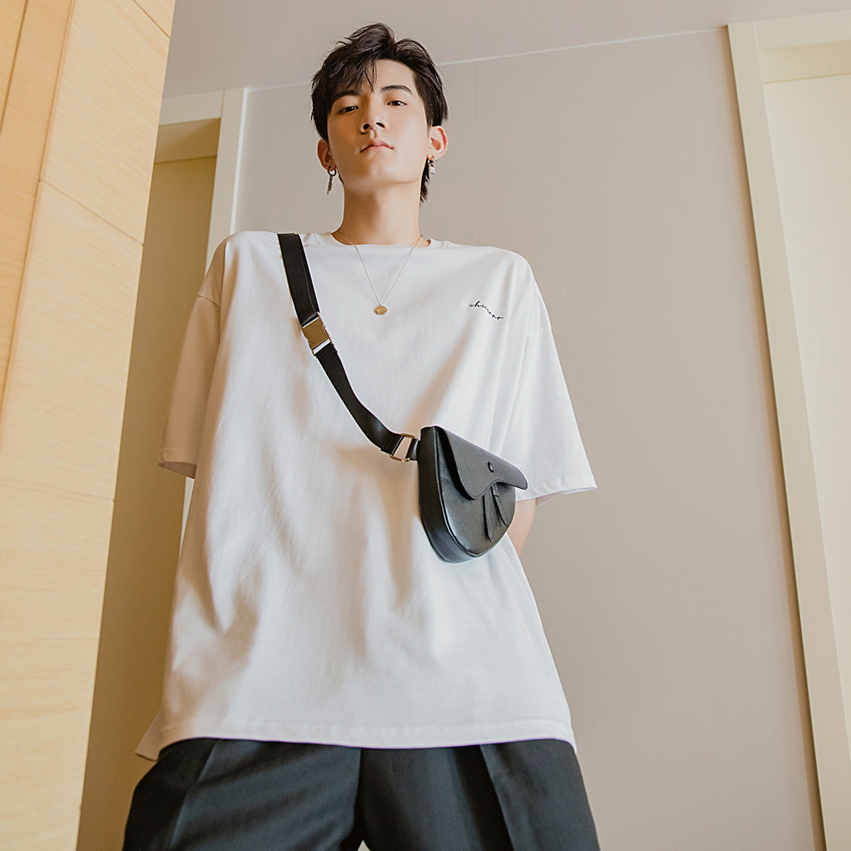 CHIC ERRO Chic Erro assembly shoulder bag summer style half-sleeved men's trendy brand trend loose compassionate men's short-sleeved t-shirt