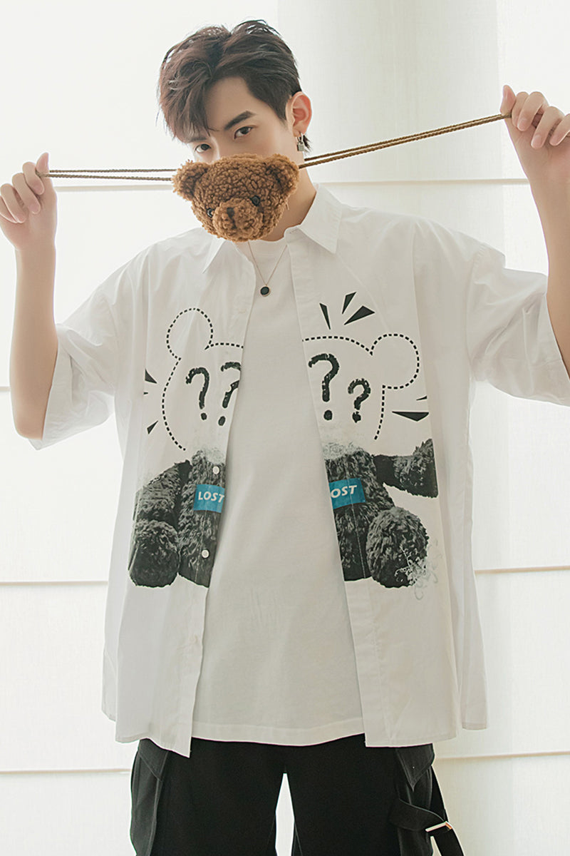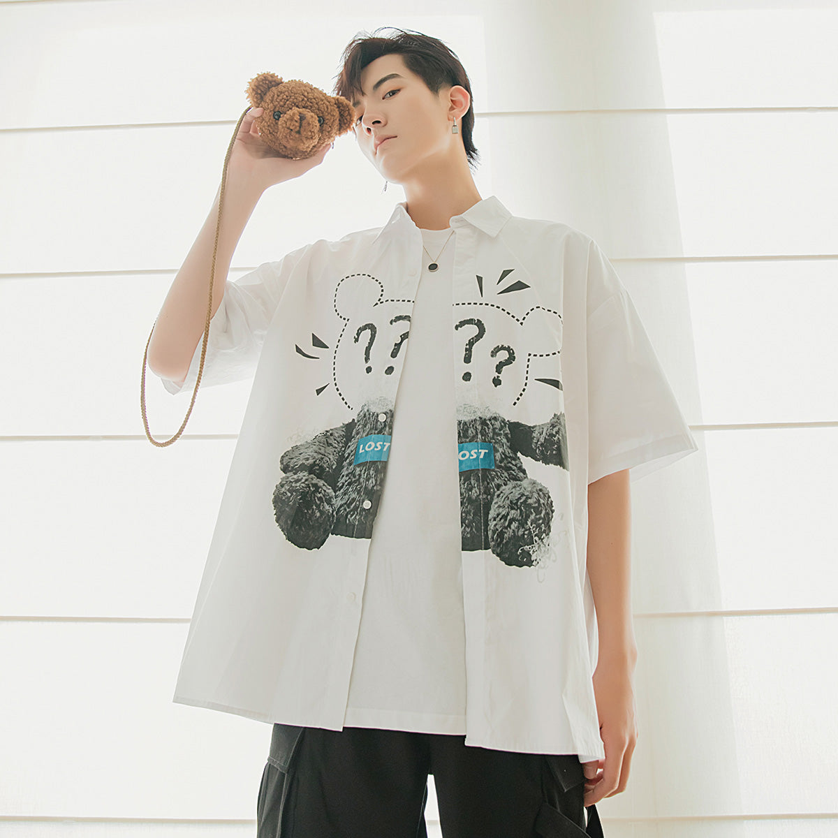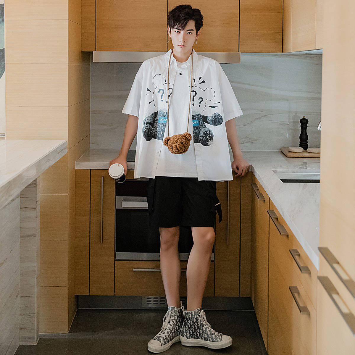 CHIC ERRO Chic Erro assembly shoulder bag summer print short-sleeved shirt men's Korean version of the trend loose boys white shirt