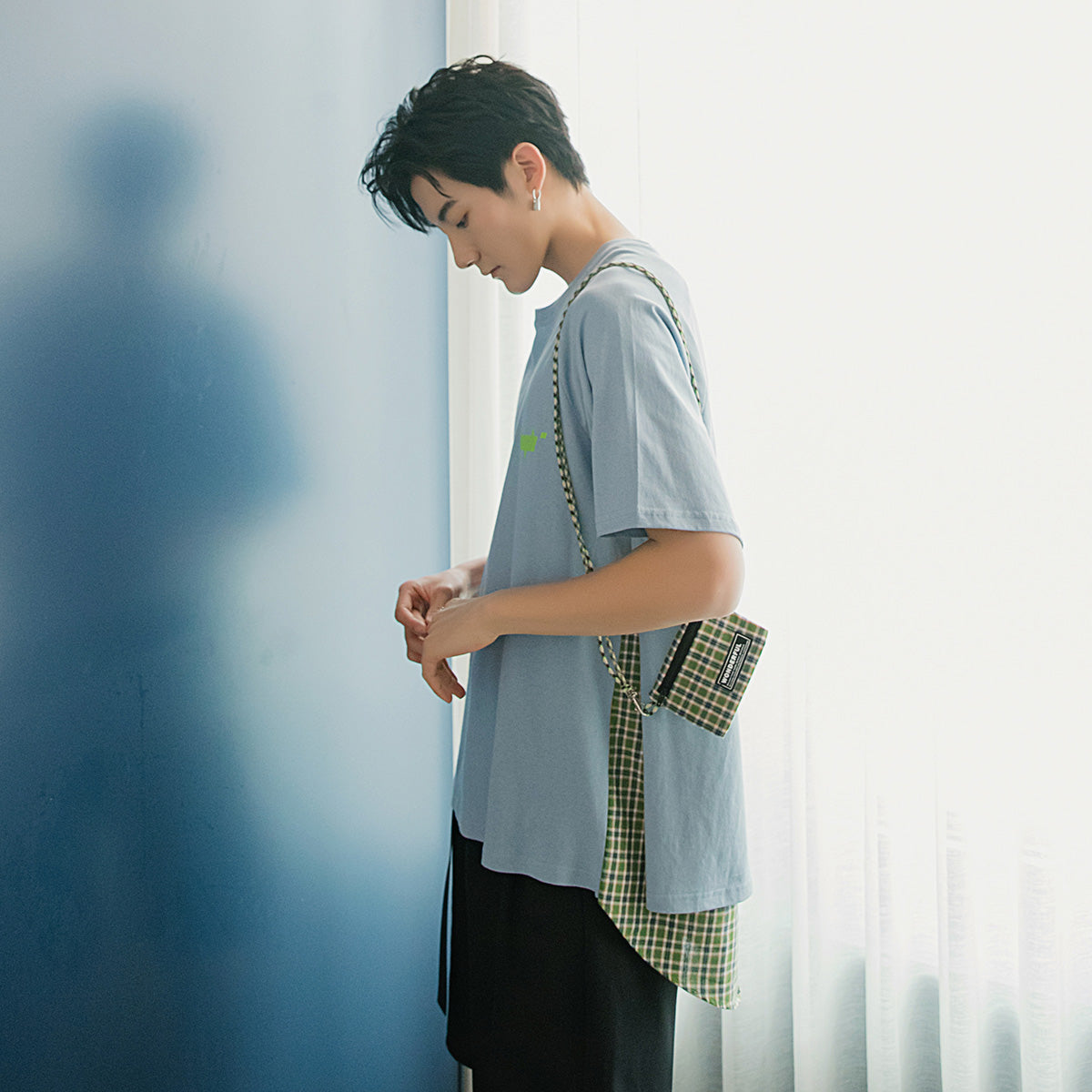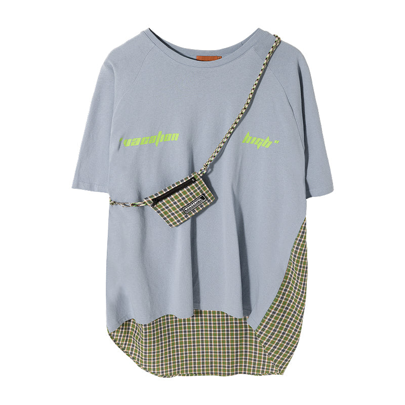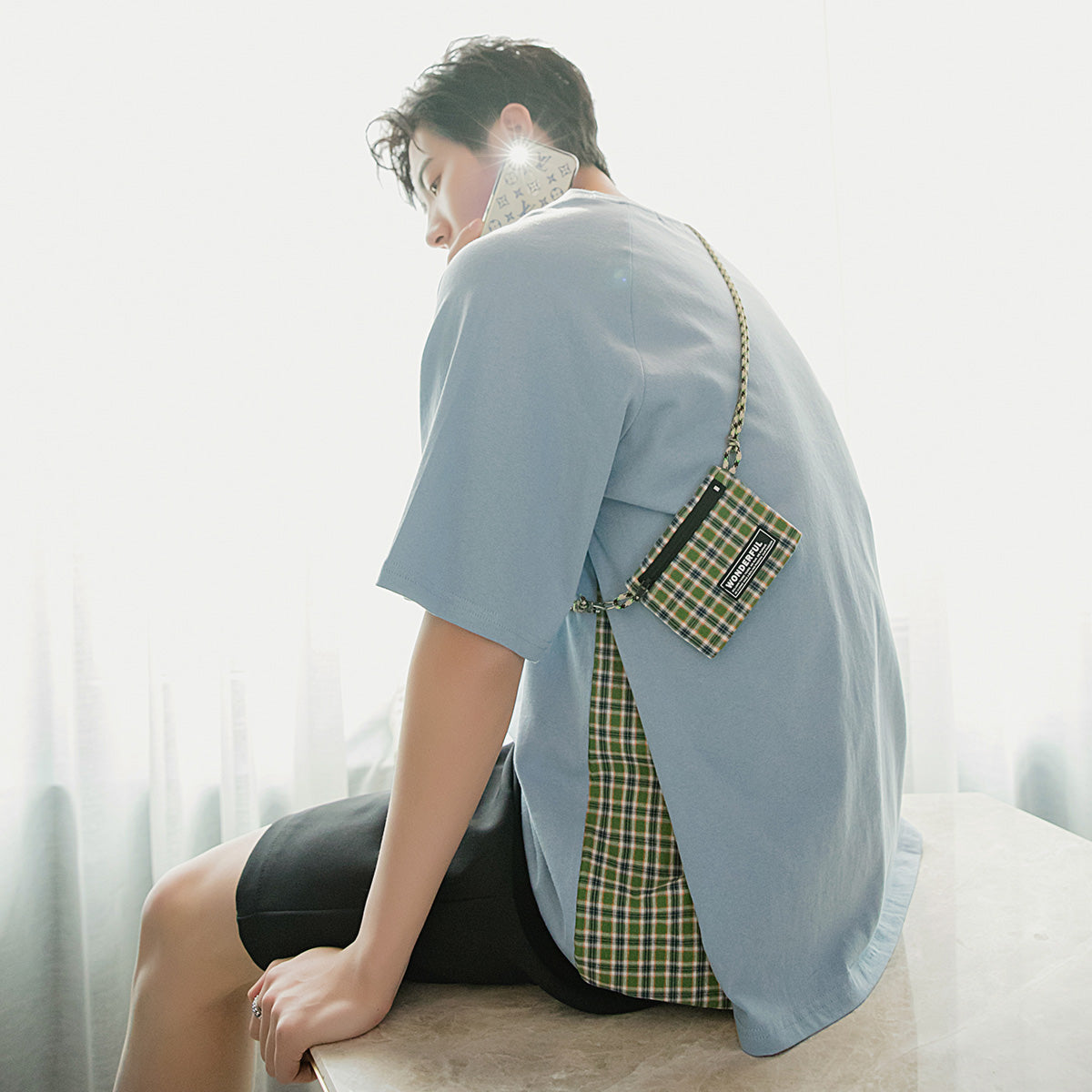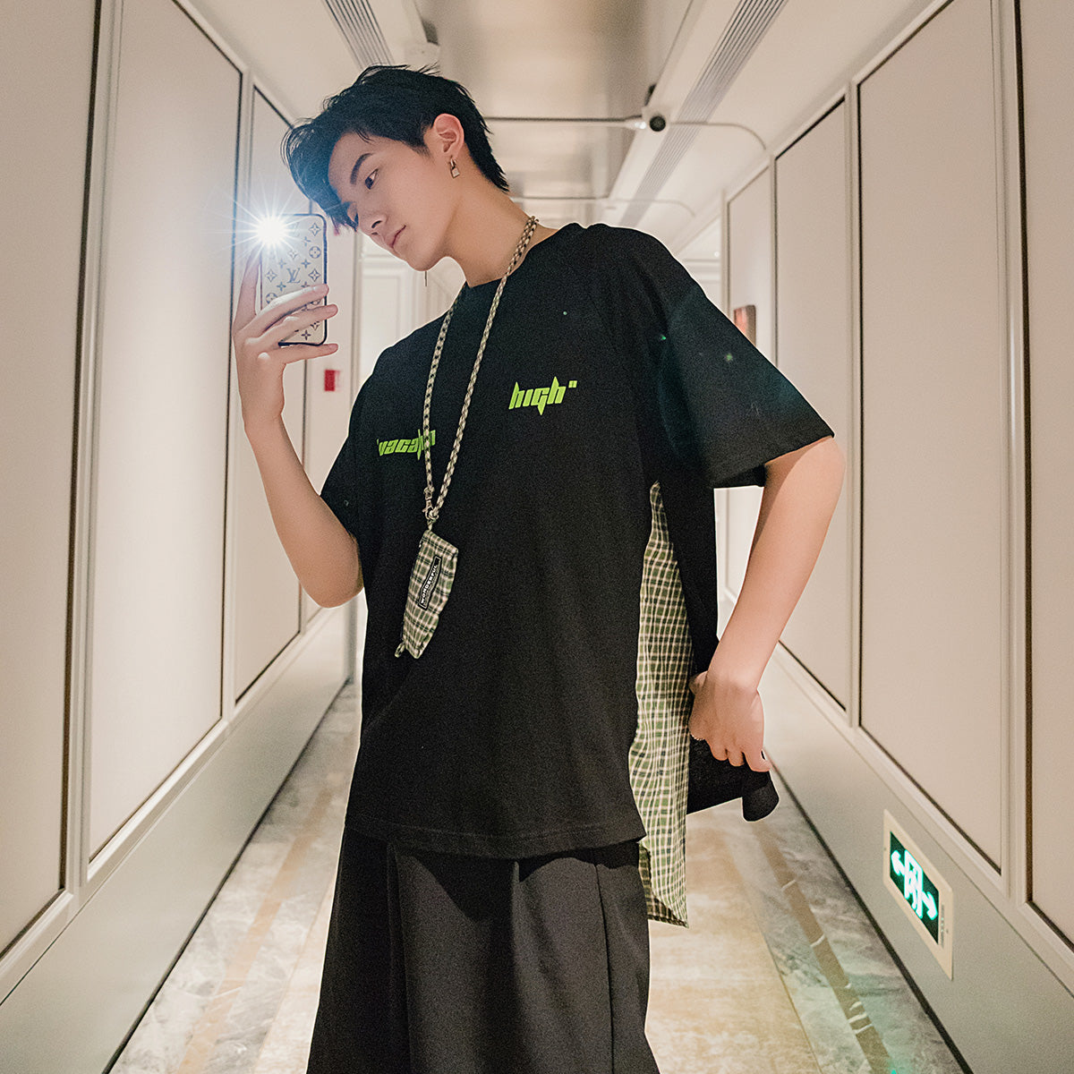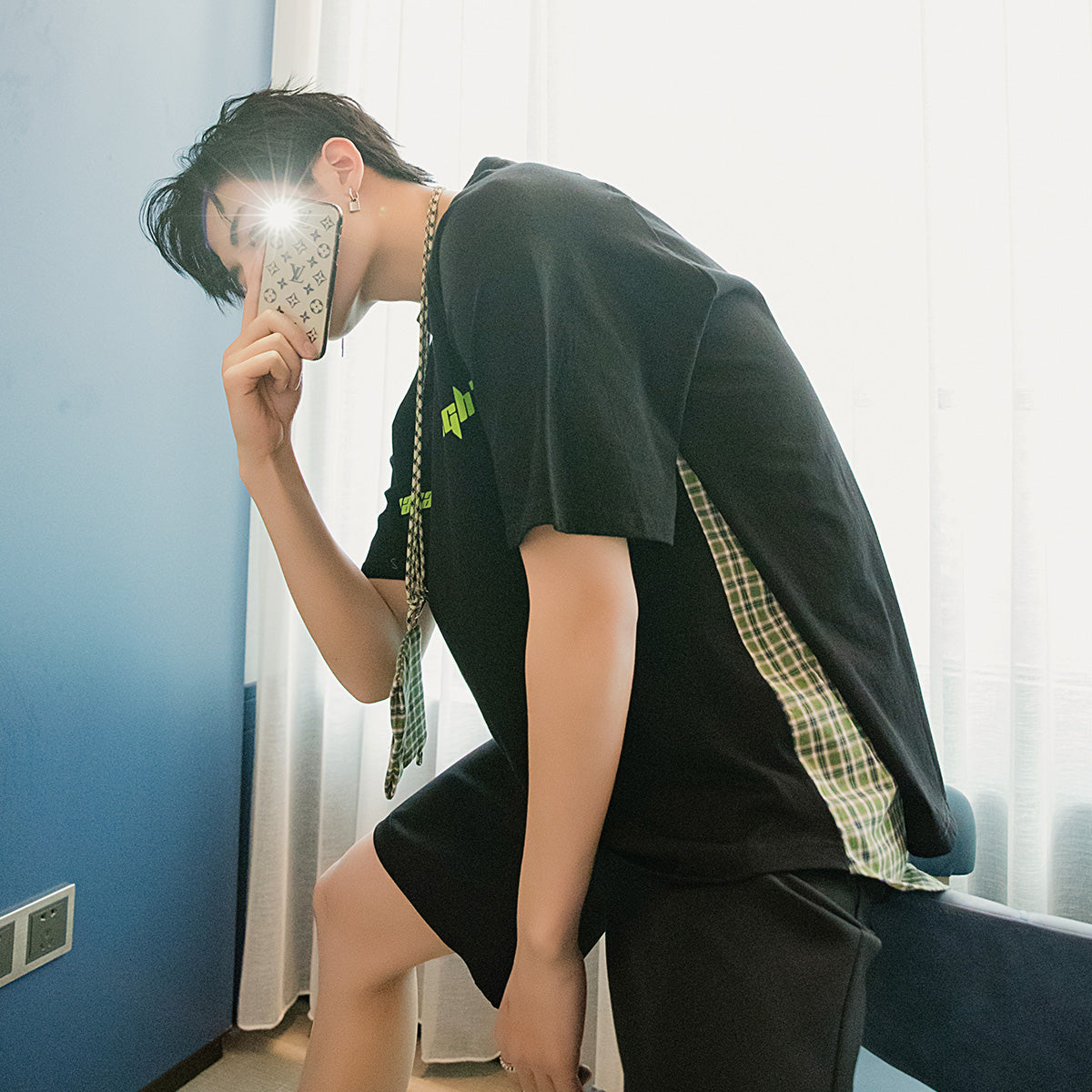 CHIC ERRO Chic Erro assembly shoulder bag summer short-sleeved men's tide brand trend loose men's half-sleeved style stitching t-shirt