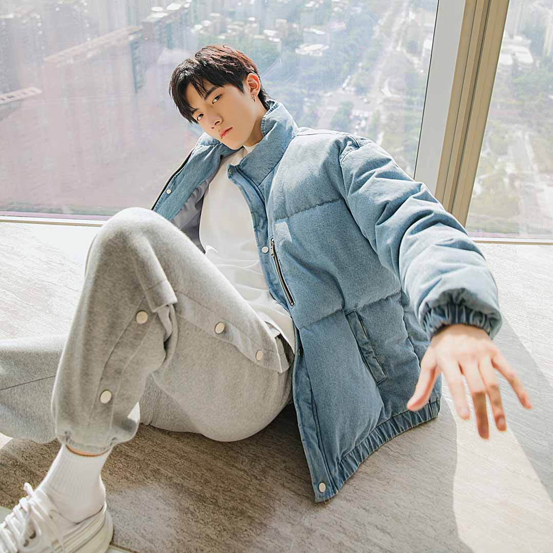 CHIC ERRO Chic Erro autumn and winter cotton-padded jacket stand-up collar thickened warmth loose trend bread clothes handsome blue jacket men