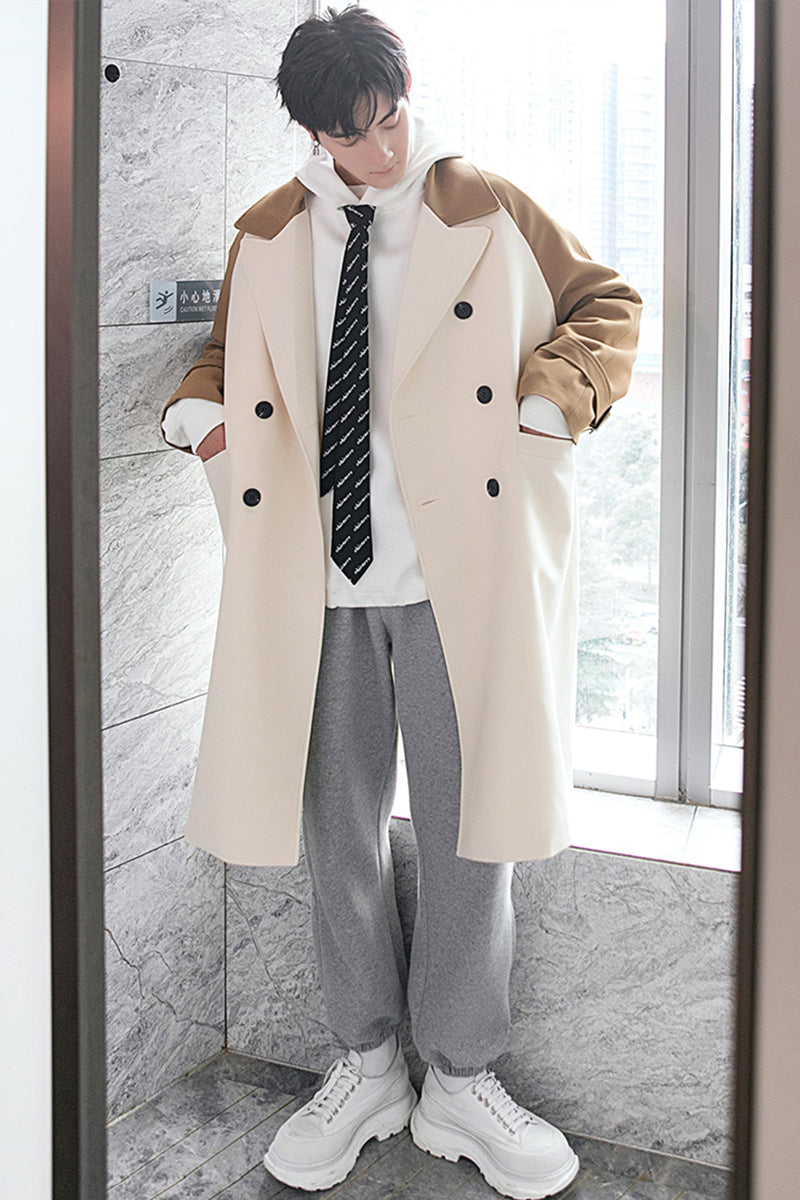 CHIC ERRO Chic Erro autumn and winter new color matching jacket male handsome Korean style loose style long trench coat 2020 new