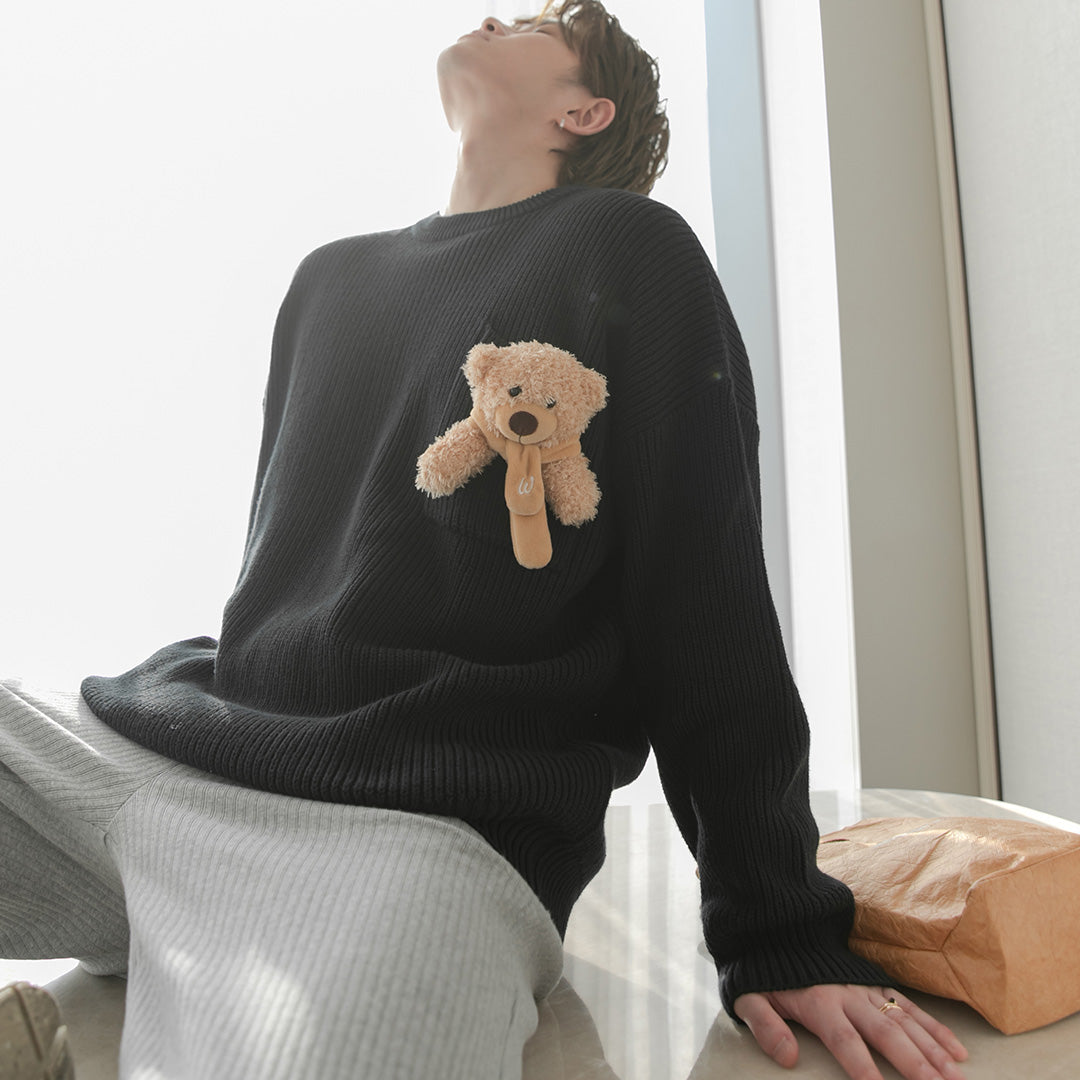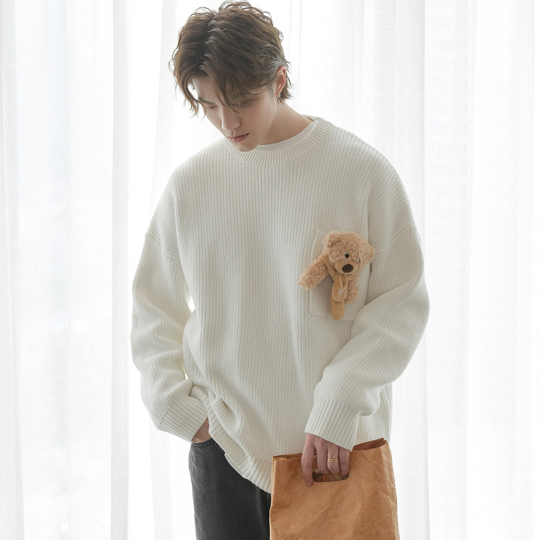 CHIC ERRO Chic Erro autumn casual long-sleeved sweater men's loose Korean version of the trend of personality bear pullover sweater