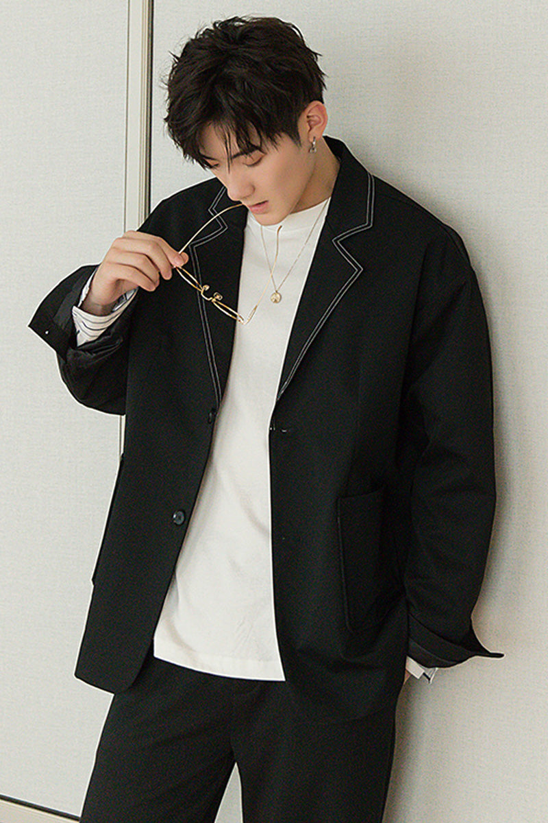 CHIC ERRO Chic Erro autumn casual suit jacket male Korean style trend British style loose men's black suit