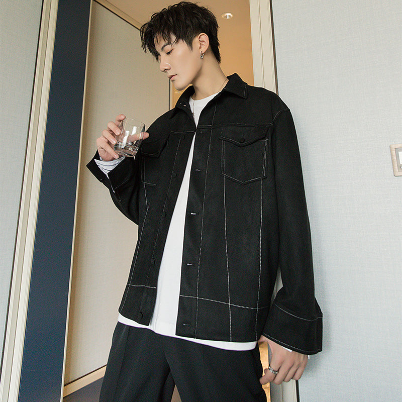 CHIC ERRO Chic Erro autumn deerskin velvet jacket male Korean version of the trend handsome loose men's black lapel jacket