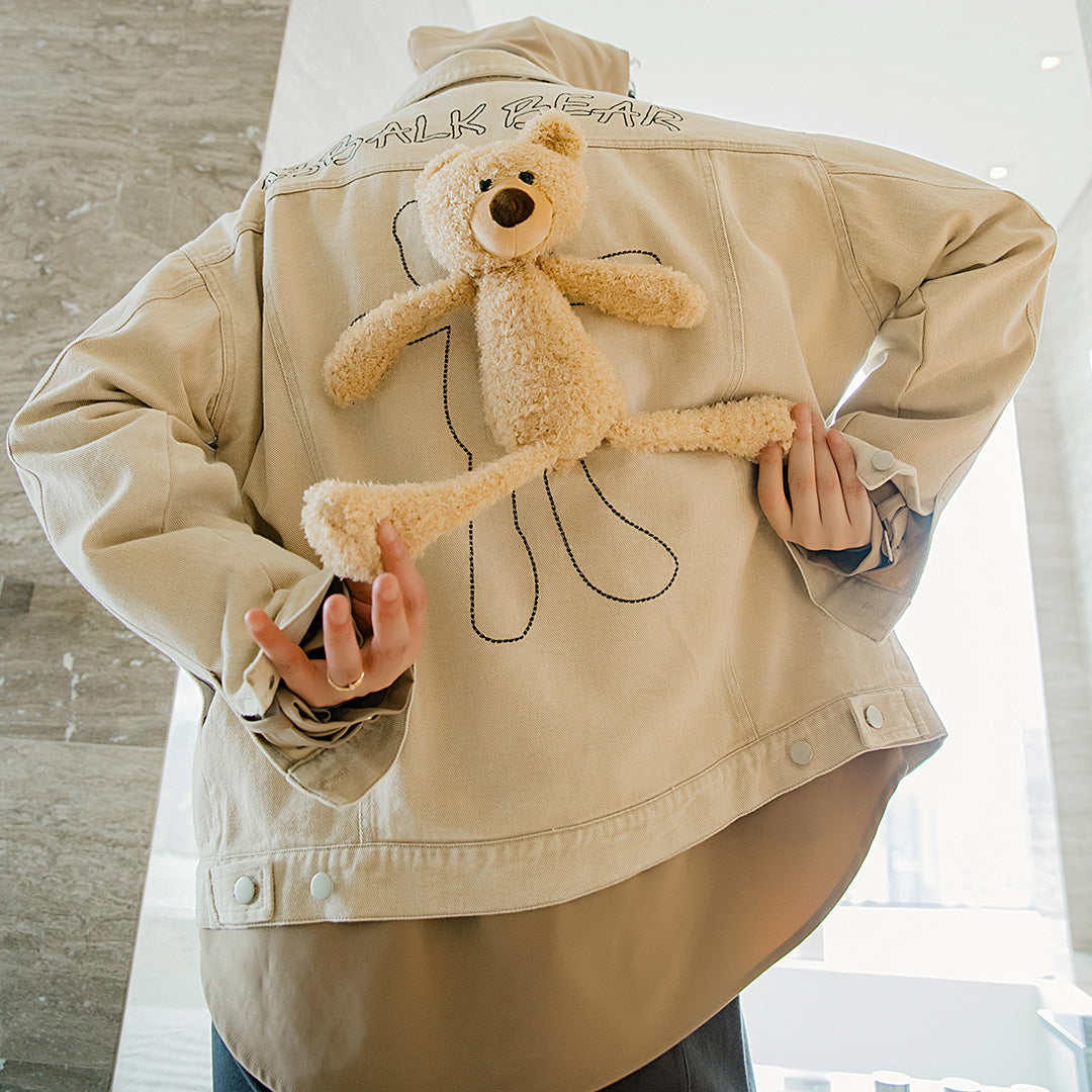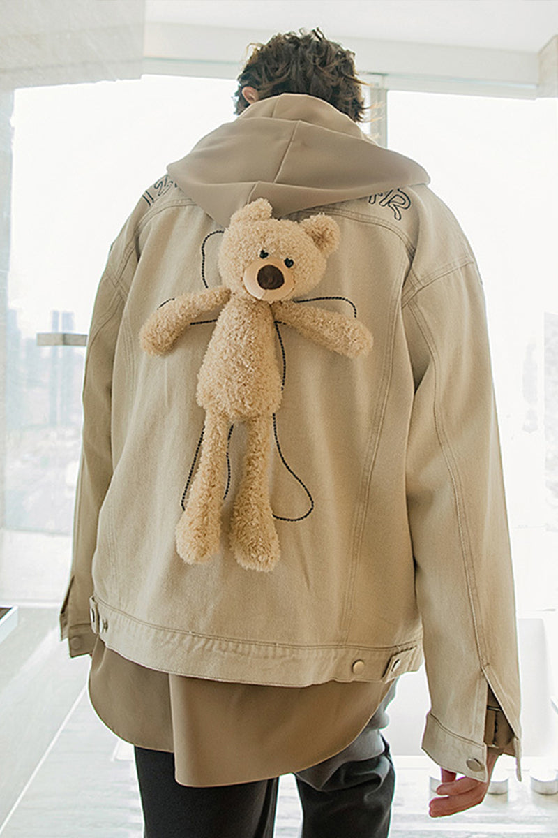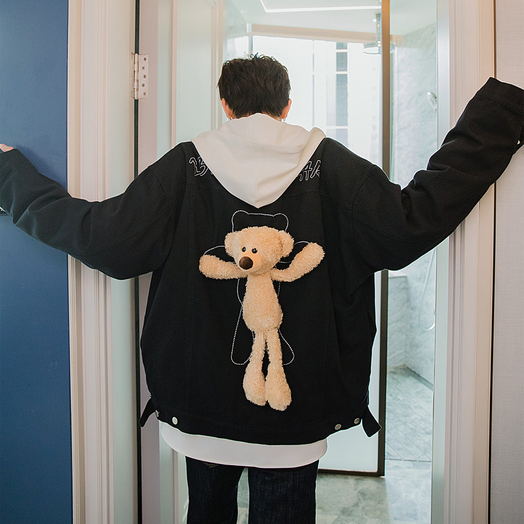CHIC ERRO Chic Erro autumn design sense bear embroidery jacket male Korean style trend loose student black jacket