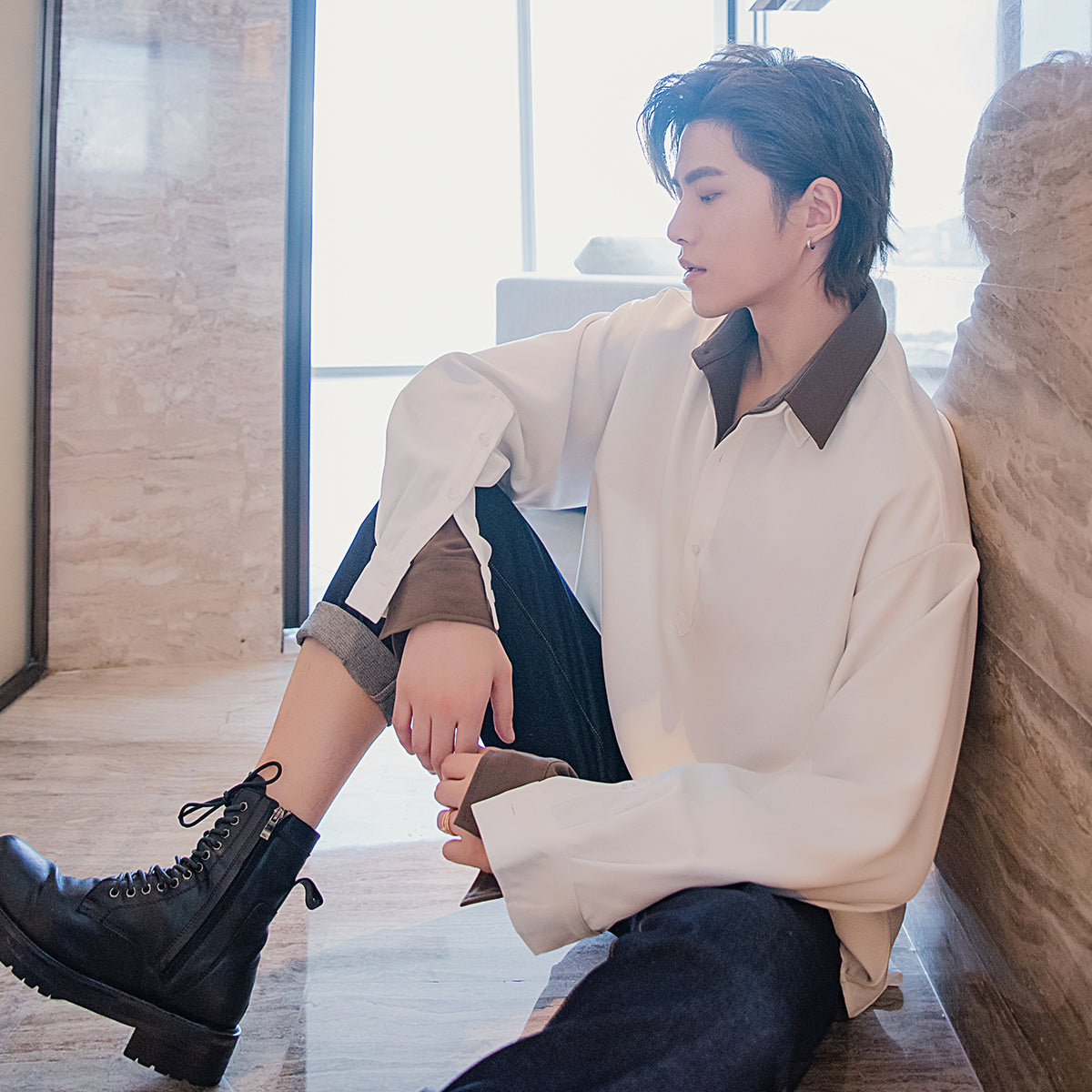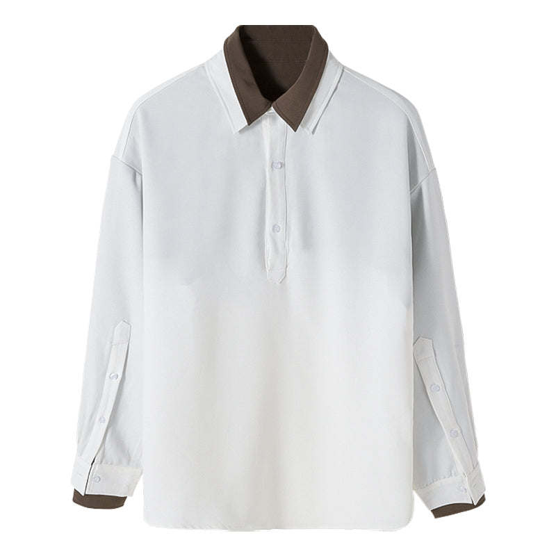 CHIC ERRO Chic Erro autumn design sense fake two-piece long-sleeved t-shirt men's handsome white POLO shirt men's trend
