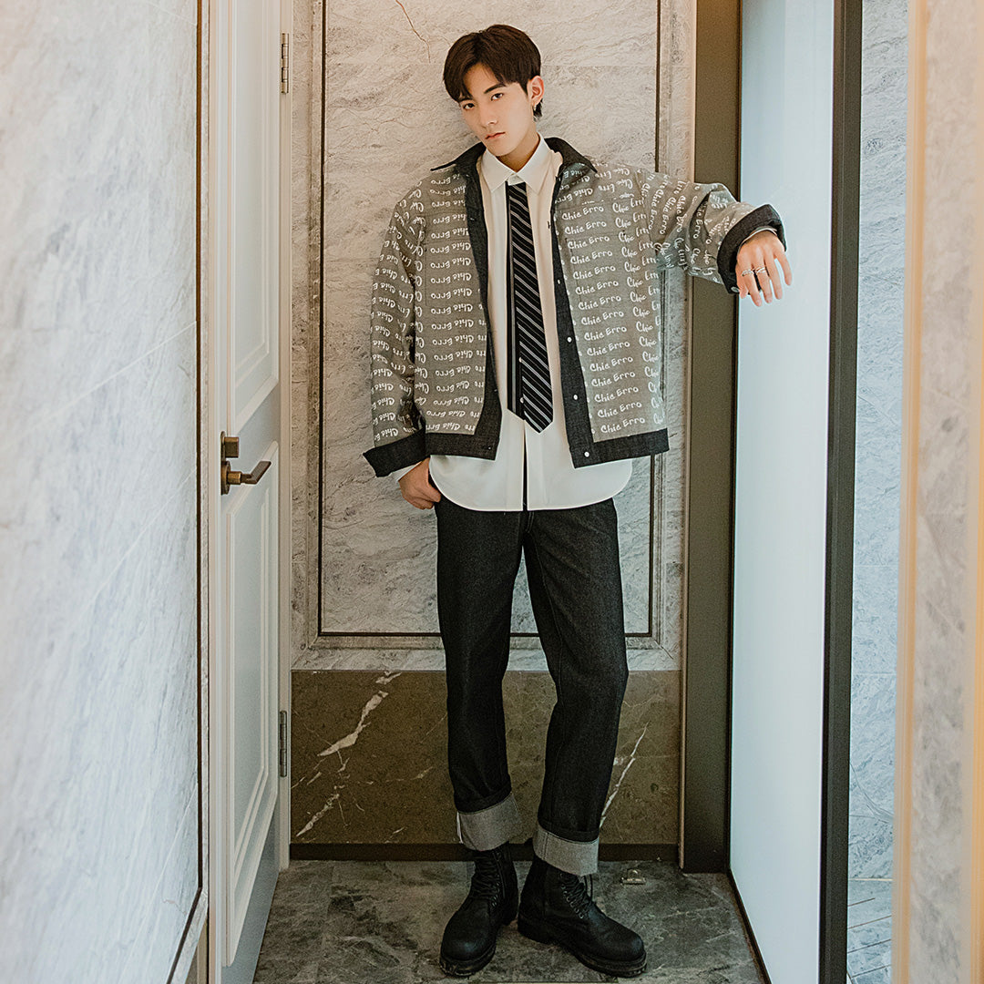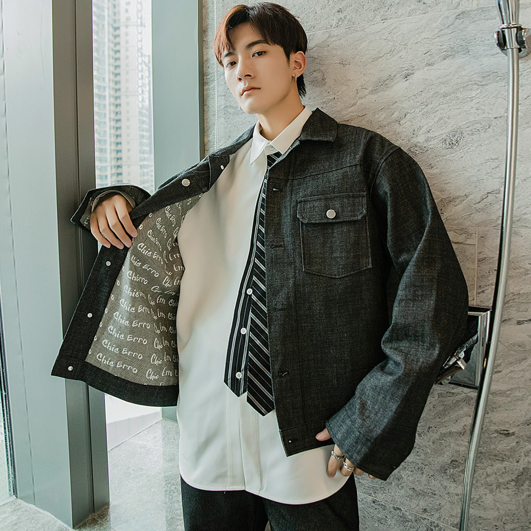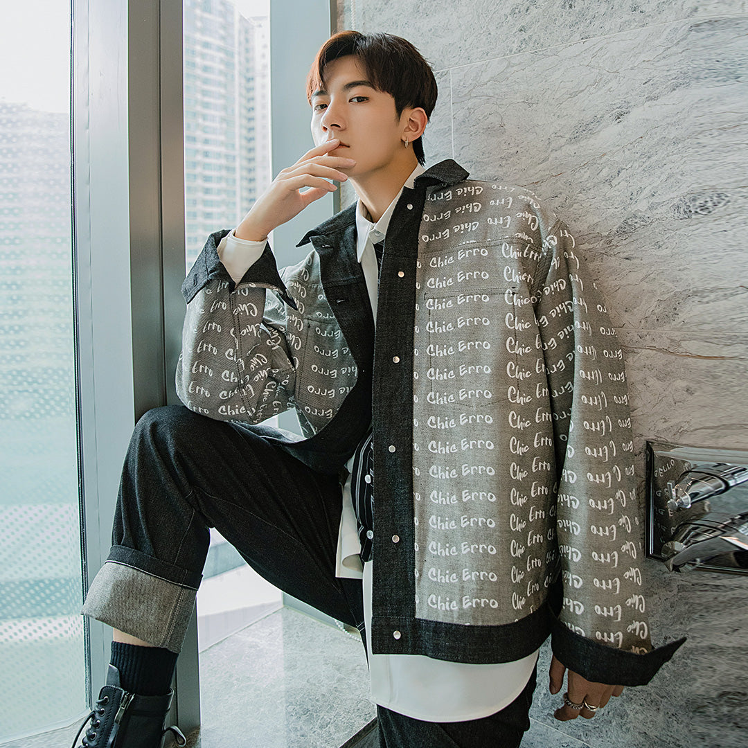 CHIC ERRO Chic Erro autumn design sense of both sides wear denim jacket male Korean version of the trend letter men's printed jacket