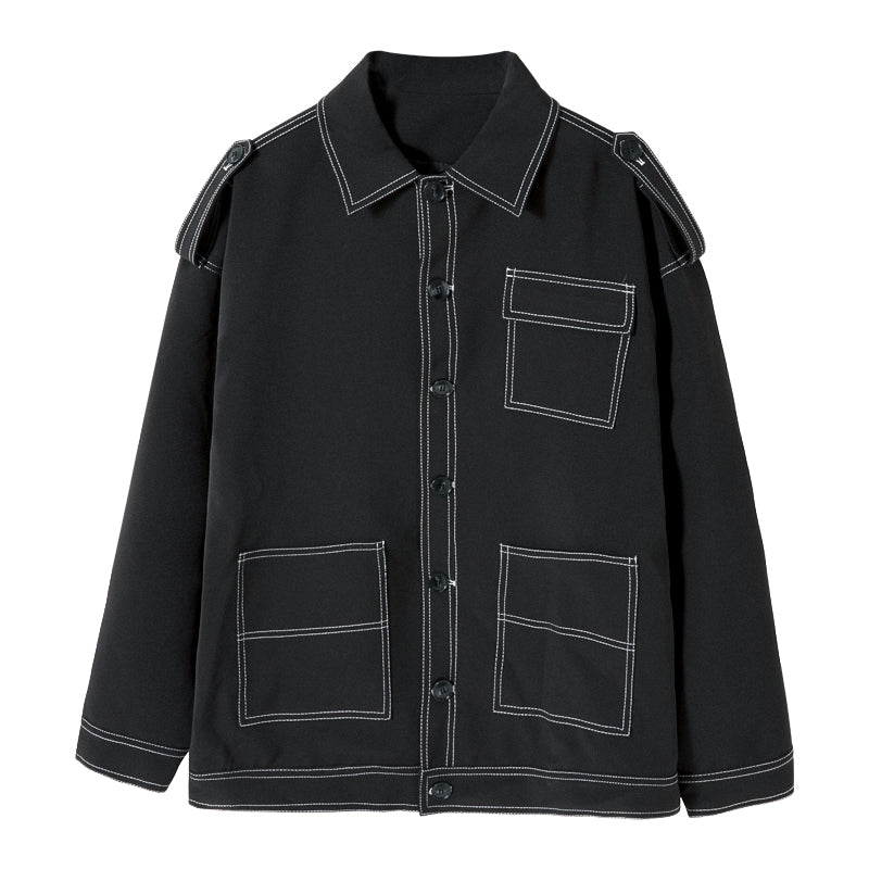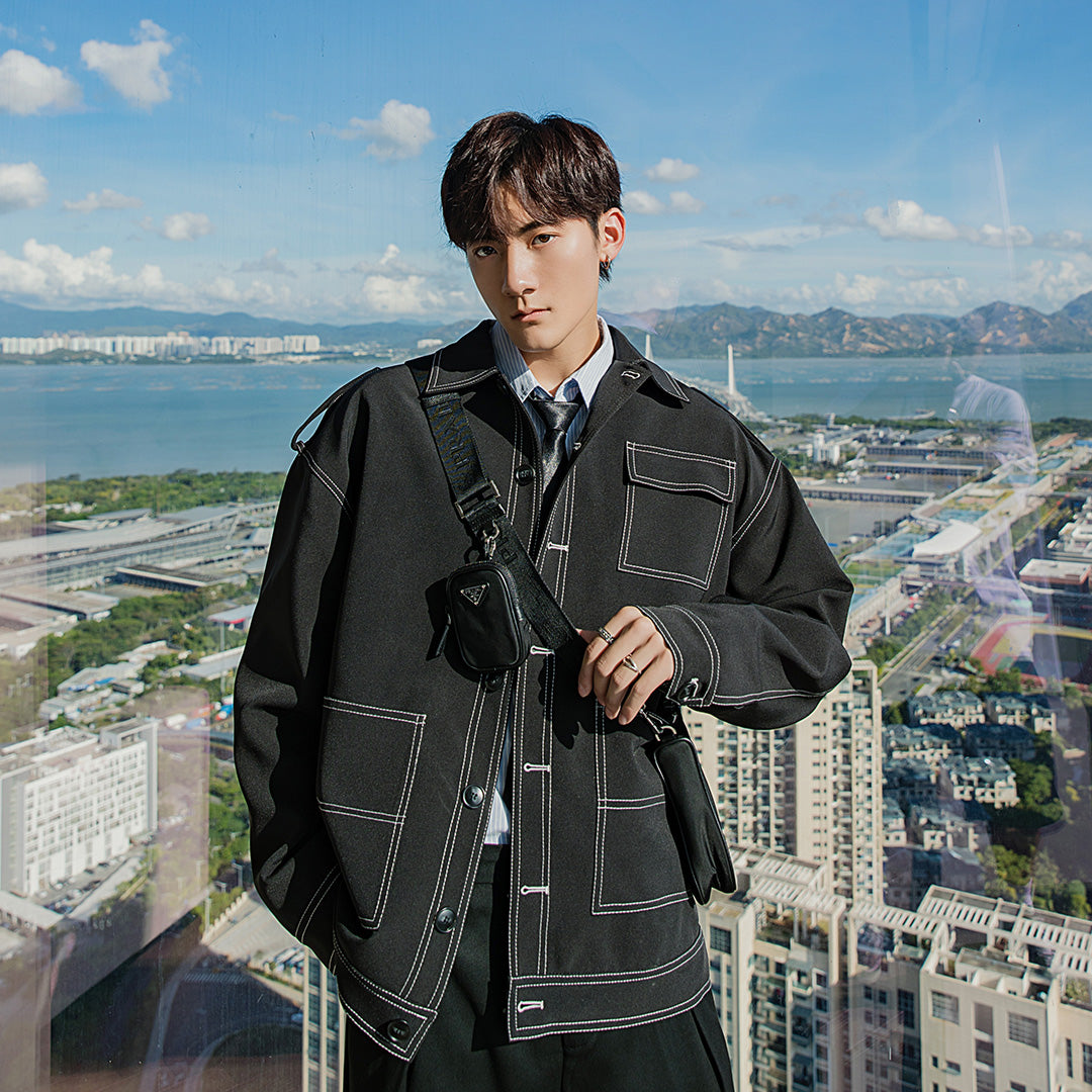 CHIC ERRO Chic Erro autumn design sense open line jacket male Korean version of the trend loose men's trendy brand black jacket