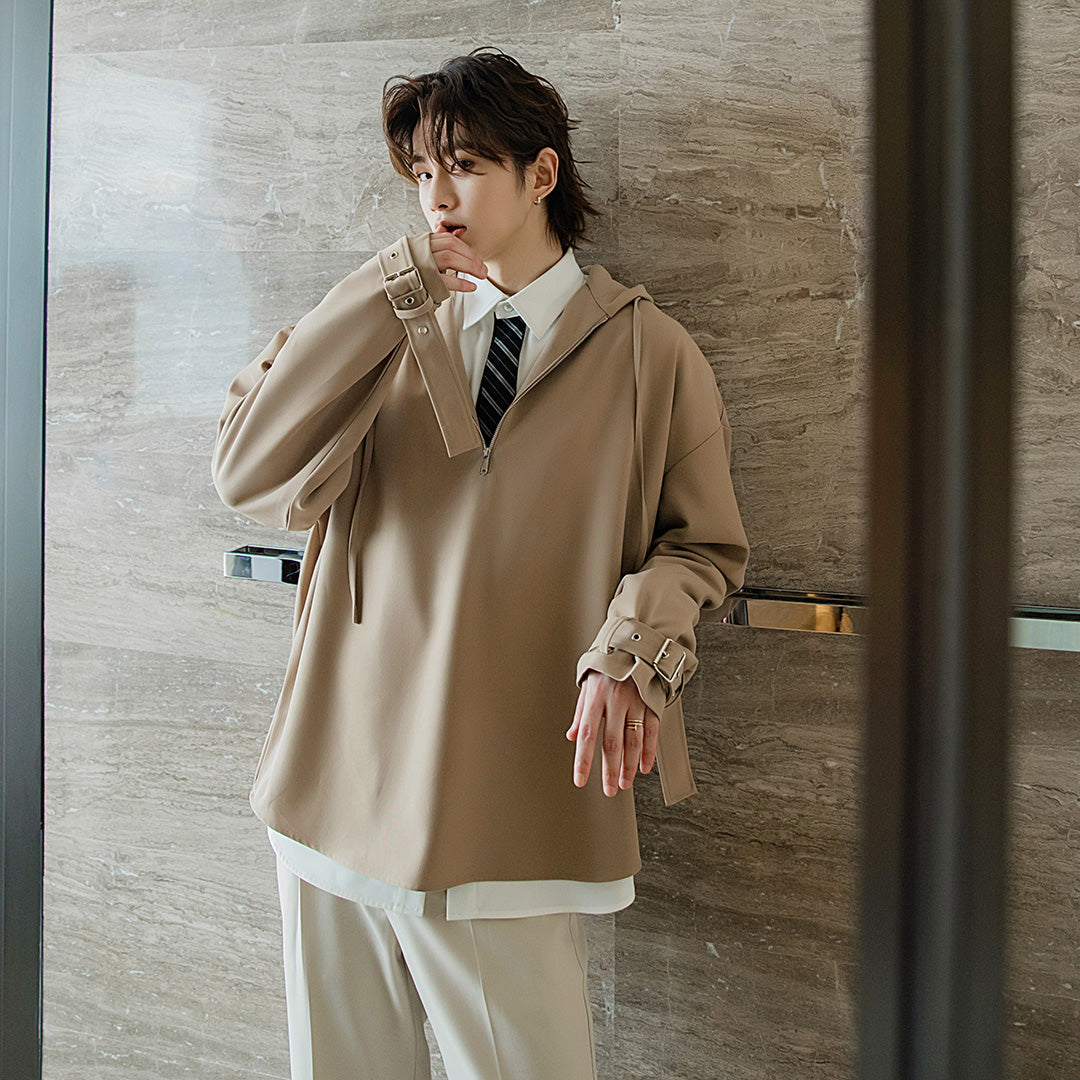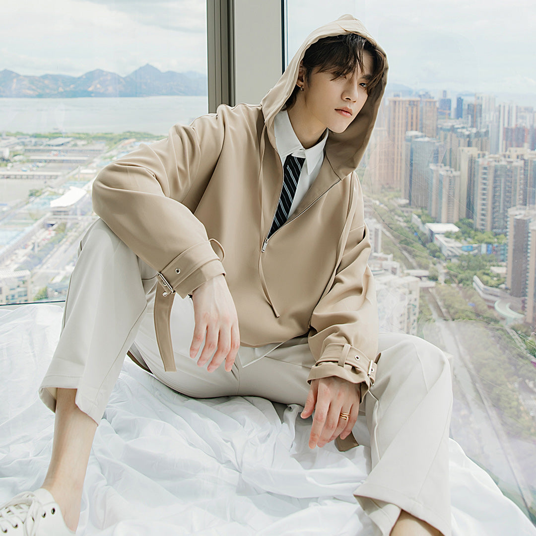CHIC ERRO Chic Erro autumn design shirt men's Korean style trend loose men's zipper hooded shirt jacket