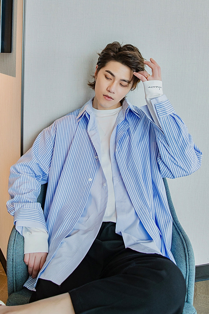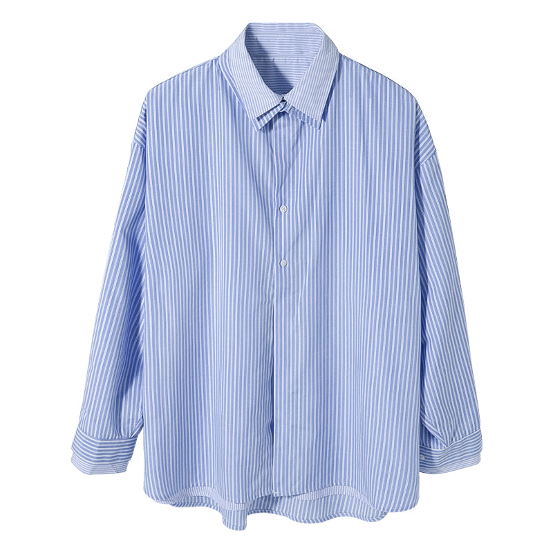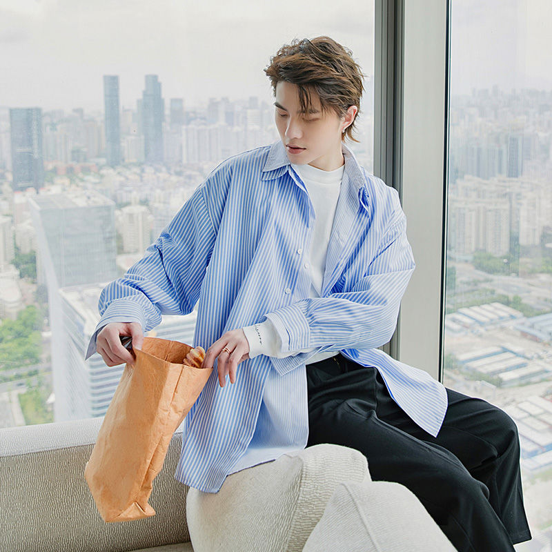 CHIC ERRO Chic Erro autumn fake two-piece striped long-sleeved shirt male Korean version of the trend loose simple shirt jacket
