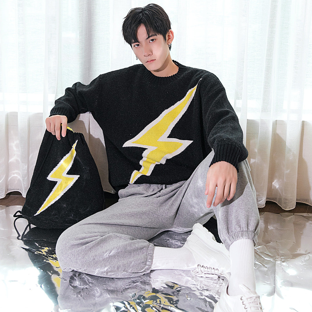 CHIC ERRO Chic Erro autumn jacquard round neck sweater tops accessories bags trendy loose sweater pullovers lazy style