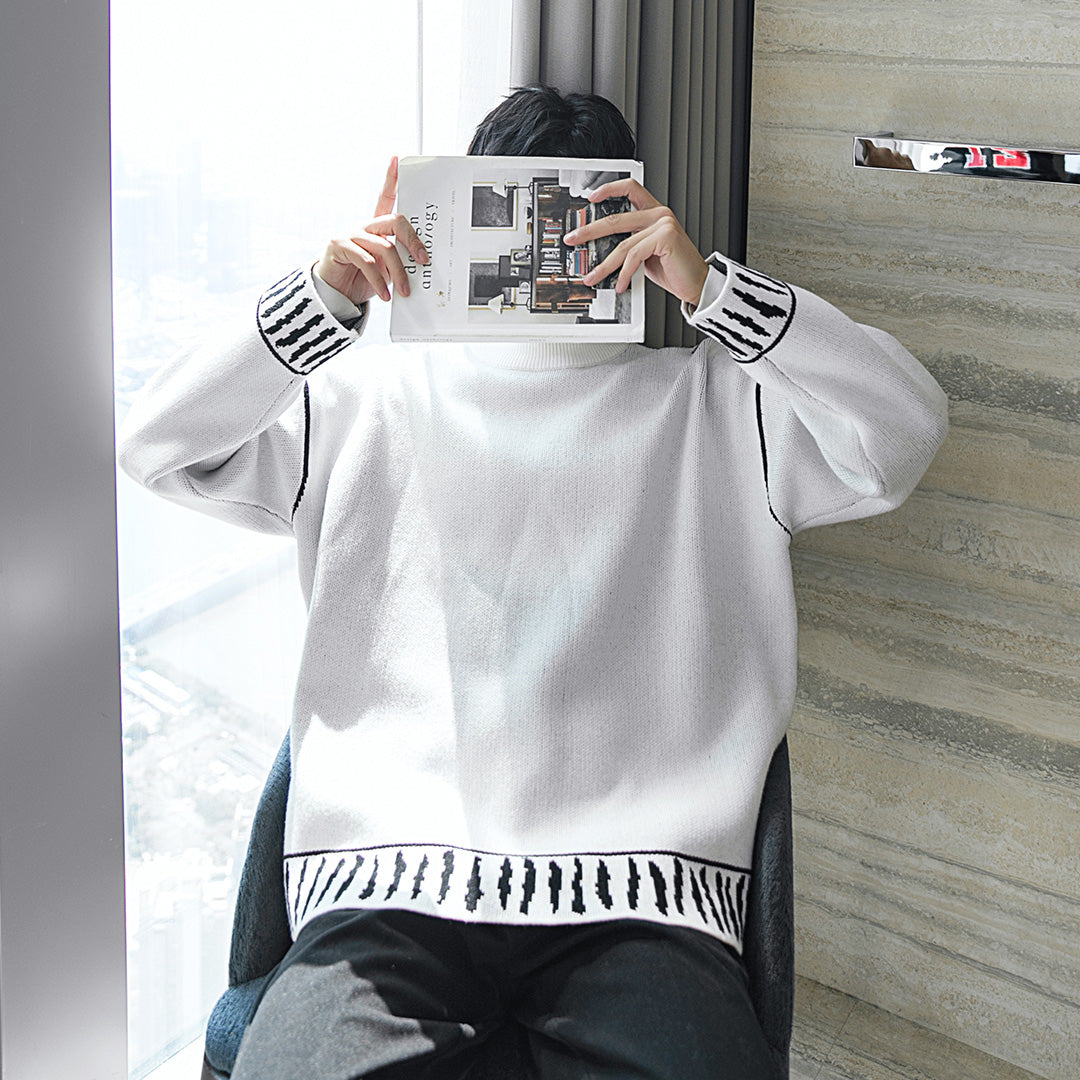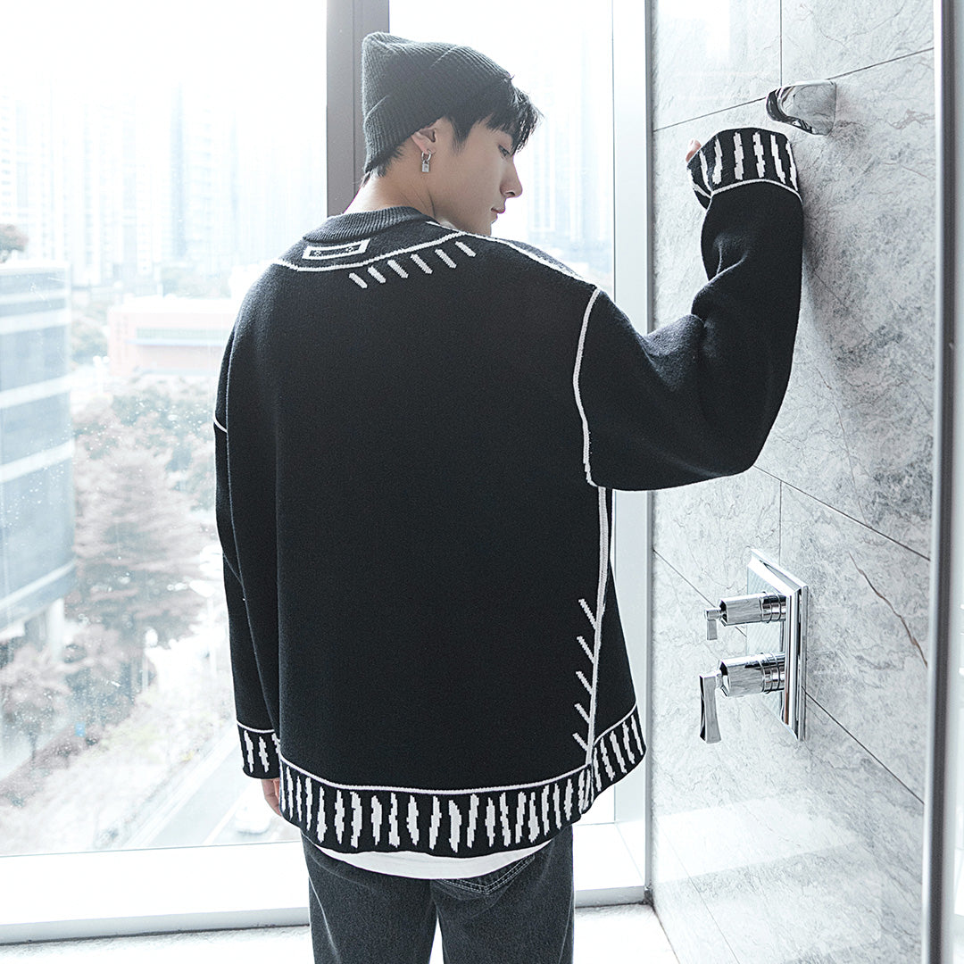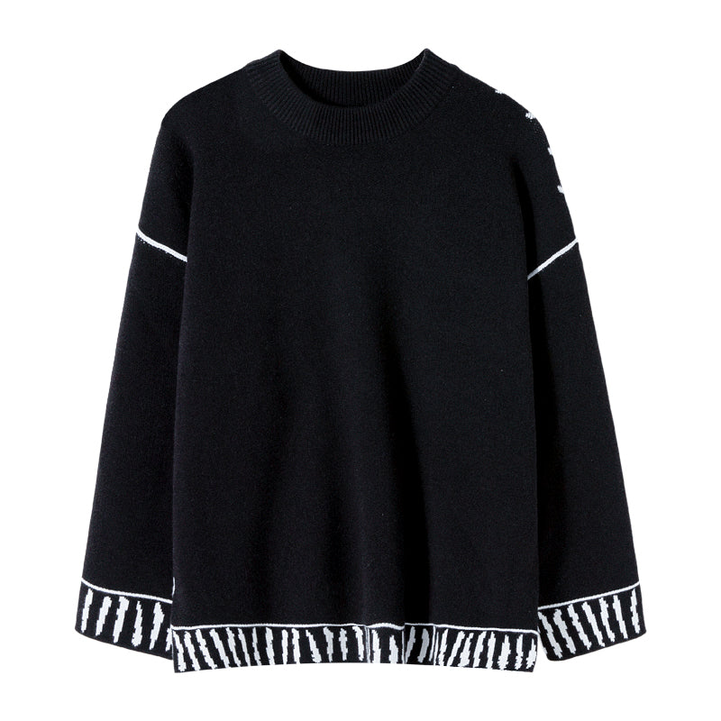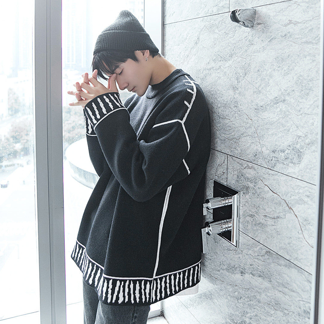 CHIC ERRO Chic Erro autumn knit sweater design sense open line jacquard black trendy loose sweater pullover lazy wind