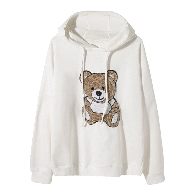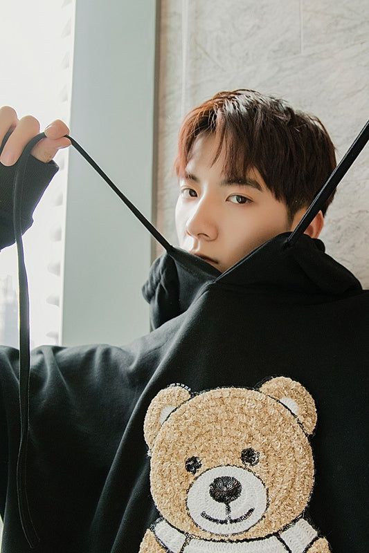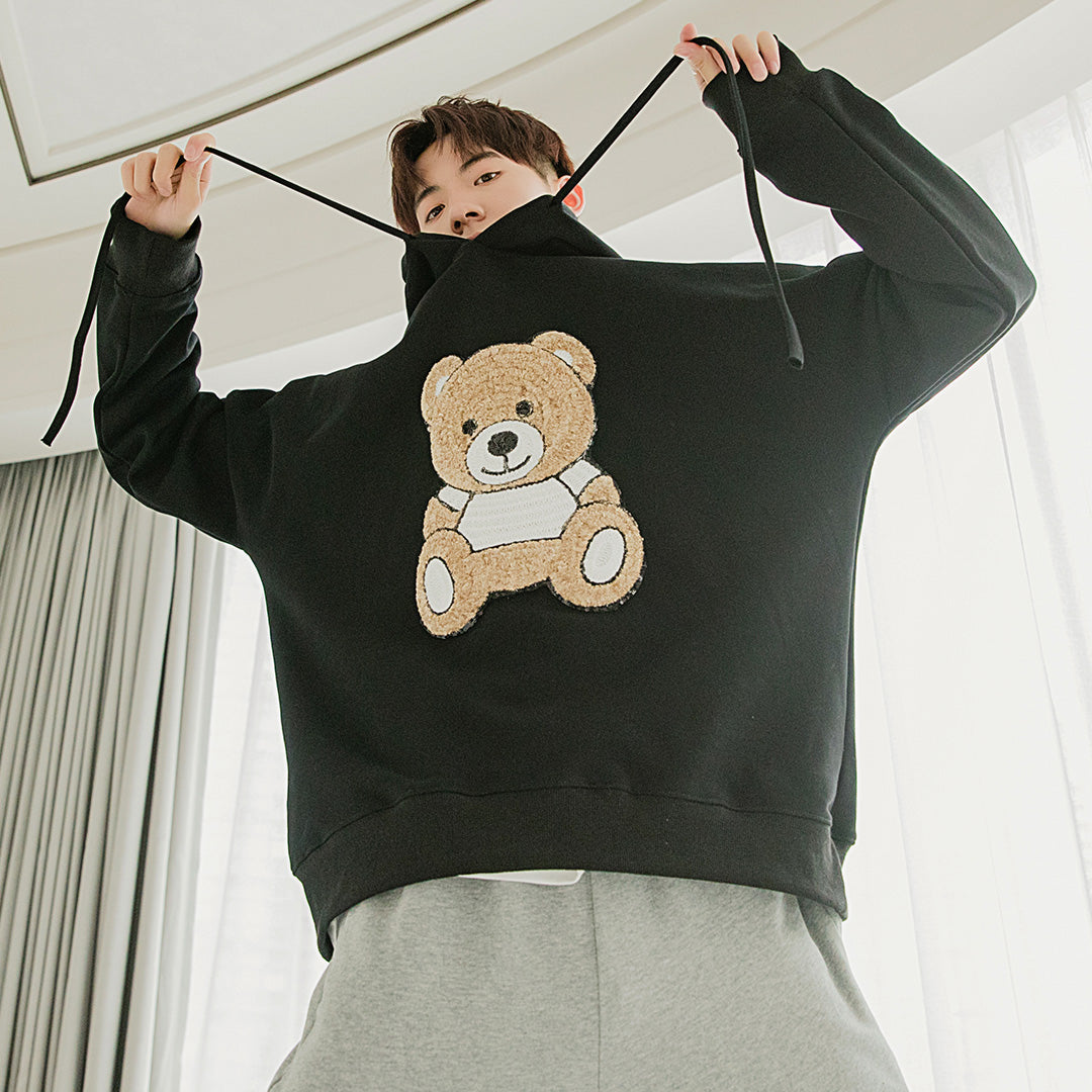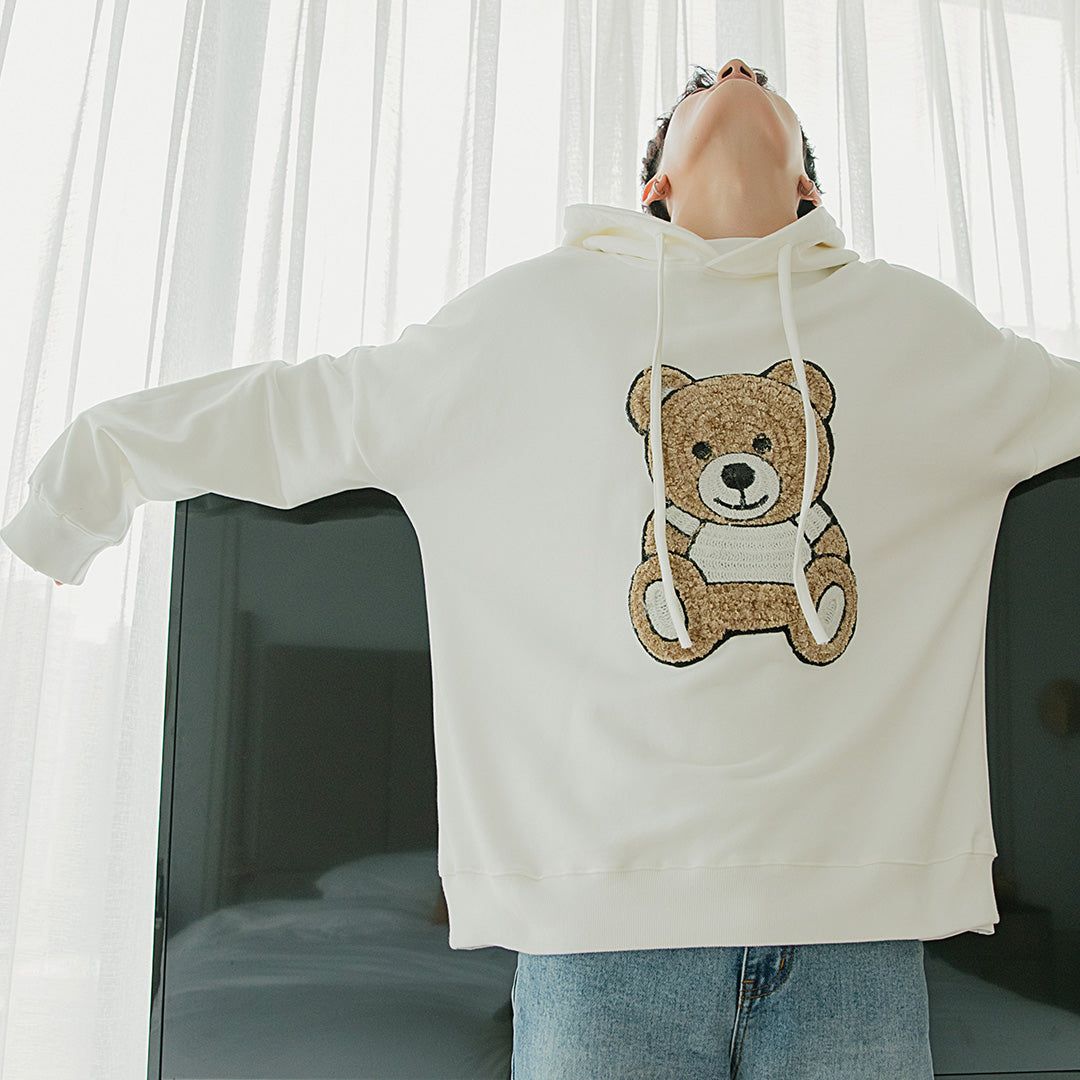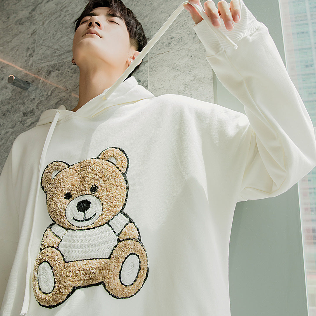 CHIC ERRO Chic Erro autumn Korean style tops for boys loose casual embroidery white bear hooded sweater men's trend
