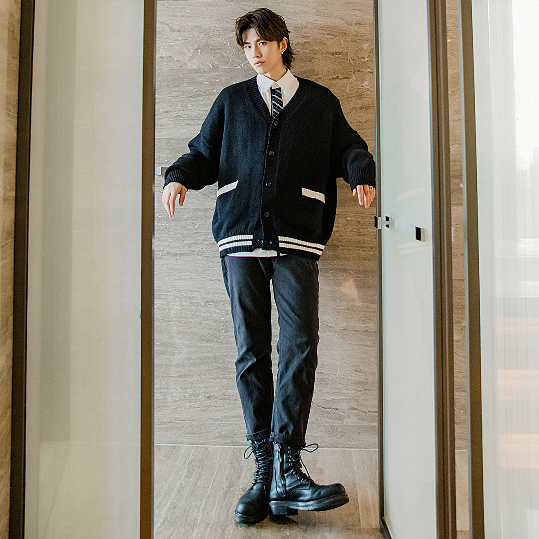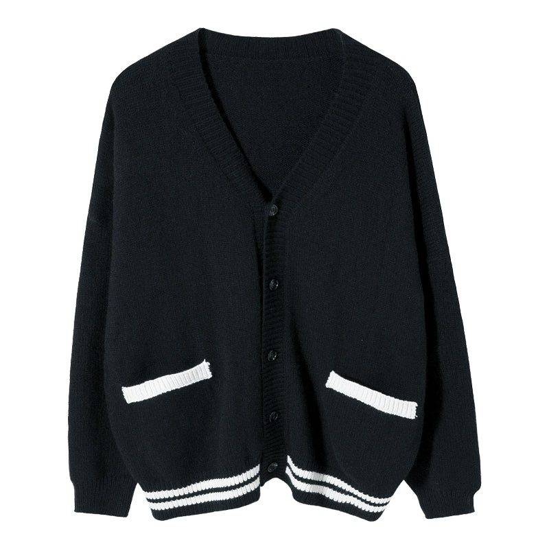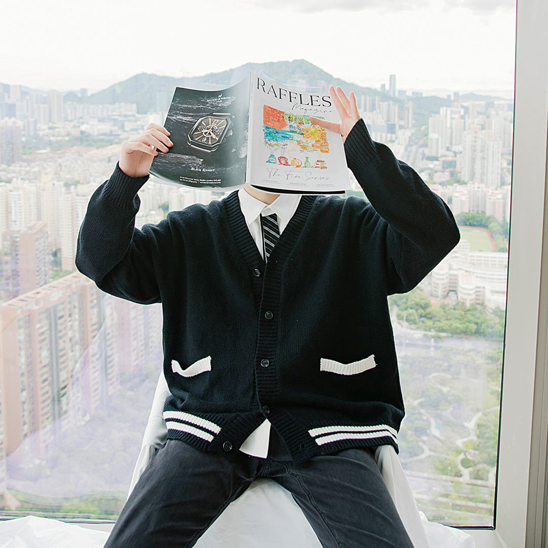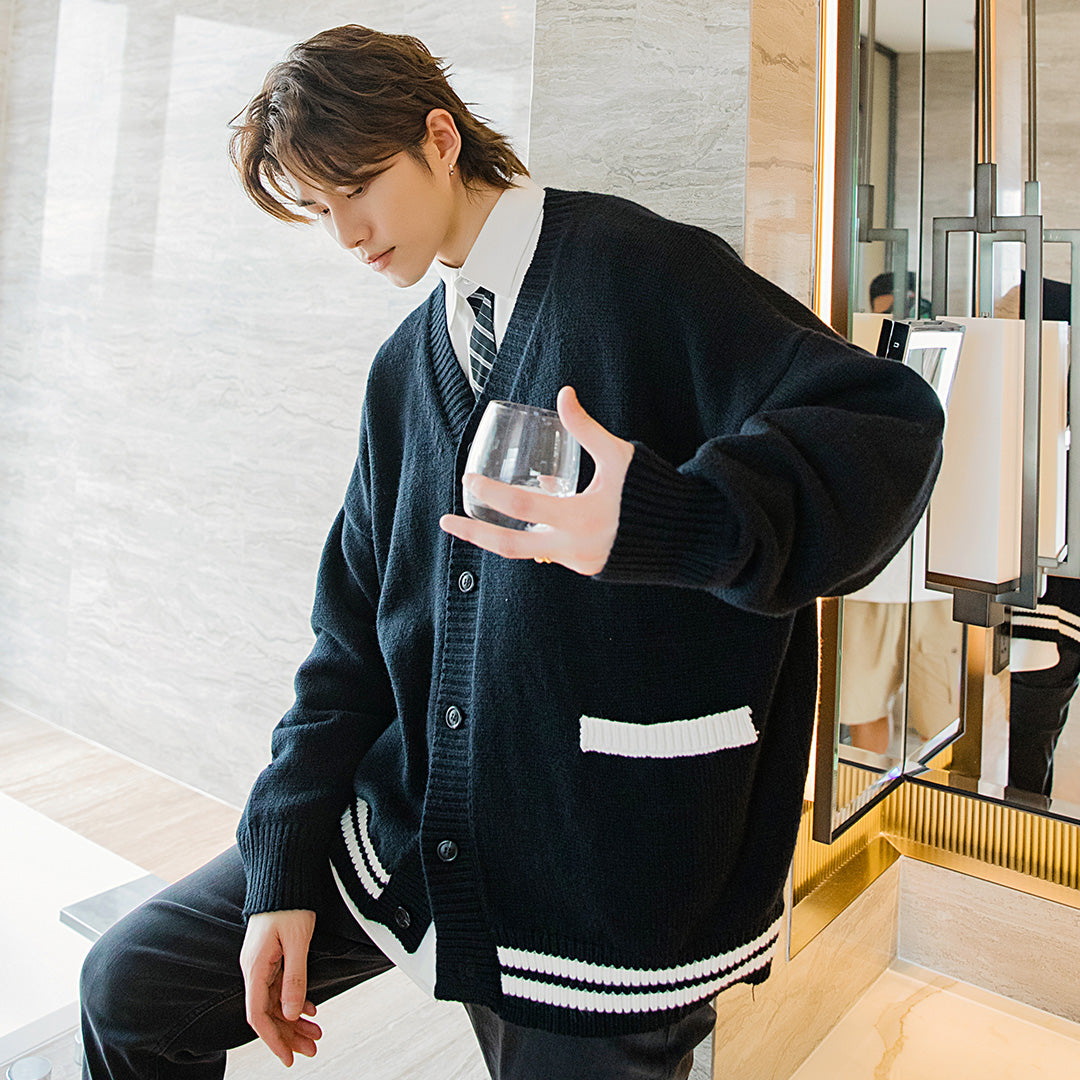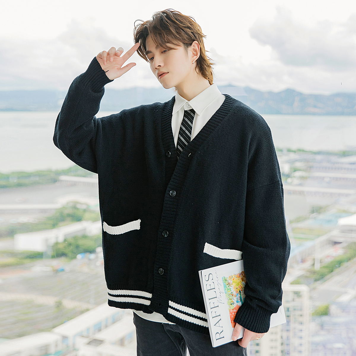 CHIC ERRO Chic Erro autumn men's cardigan sweater v-neck striped loose college style sweater outer wear coat tide