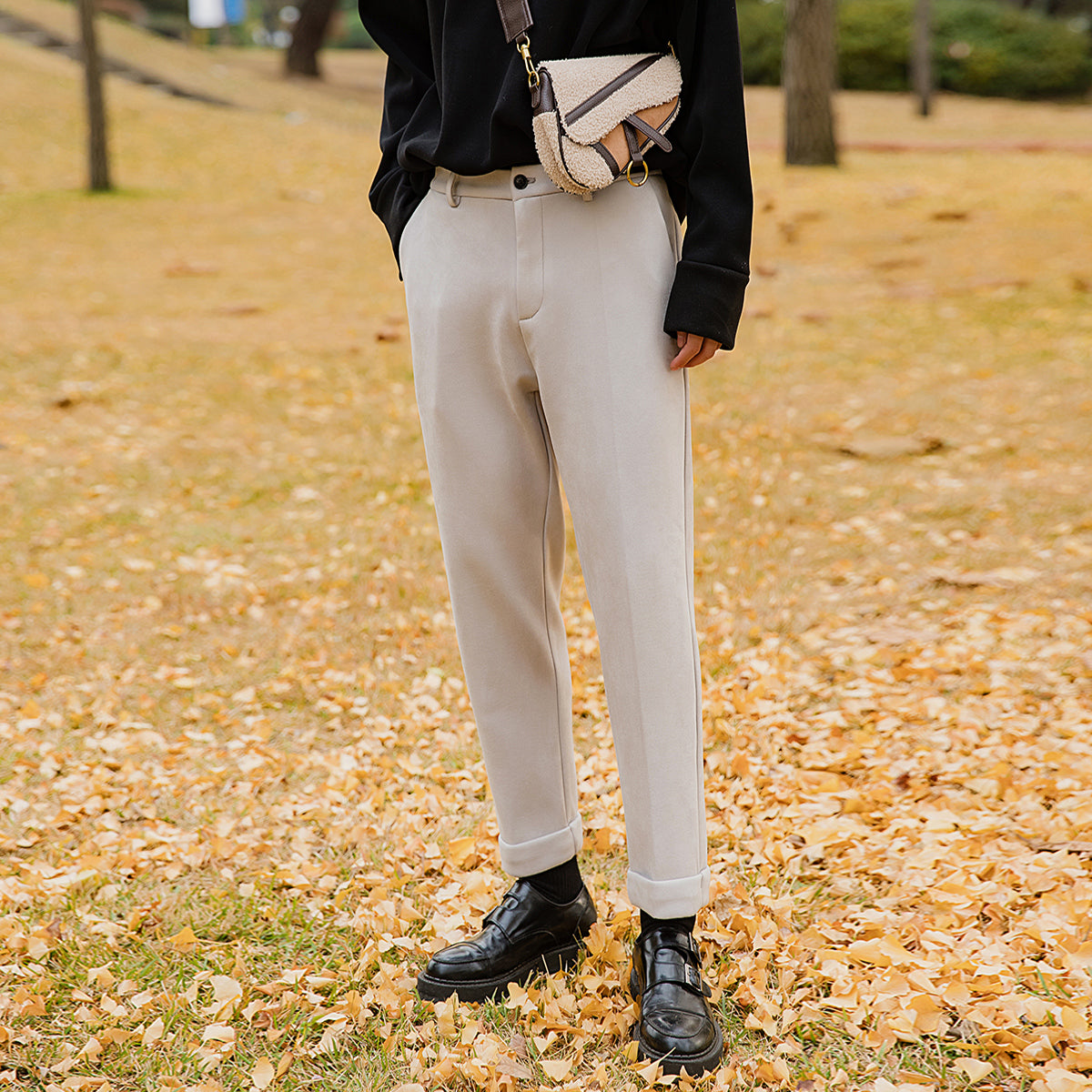 CHIC ERRO Chic Erro autumn men's casual pants men's Korean version of the trend of nine points loose plus velvet thick straight-leg pants