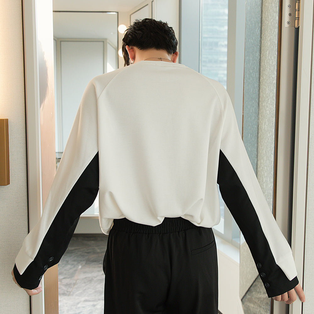 CHIC ERRO Chic Erro autumn men's tops Korean version of the trend of loose inner base shirt stitching white long-sleeved T-shirt