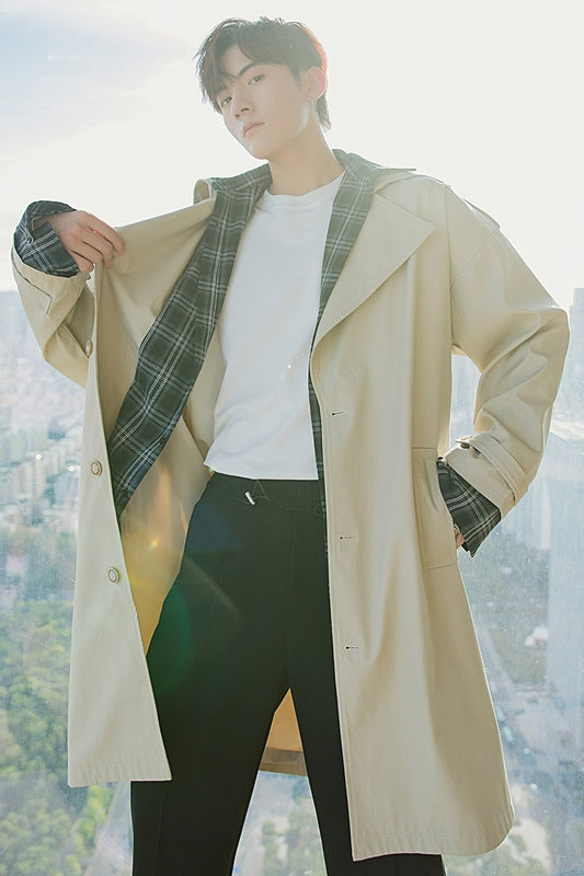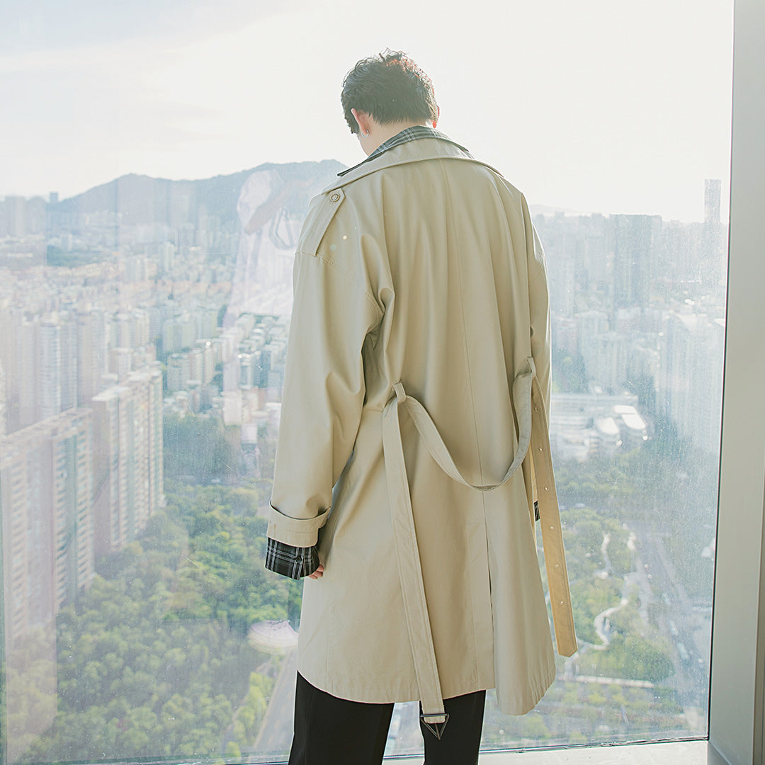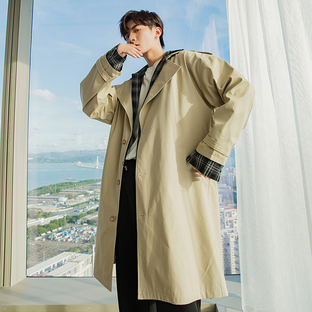 CHIC ERRO Chic Erro autumn plaid stitching fake two-piece windbreaker men's Korean style trend Korean style men's mid-length jacket