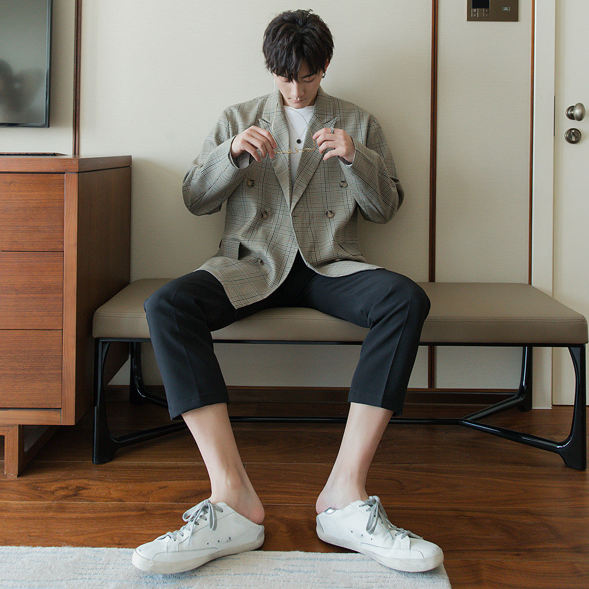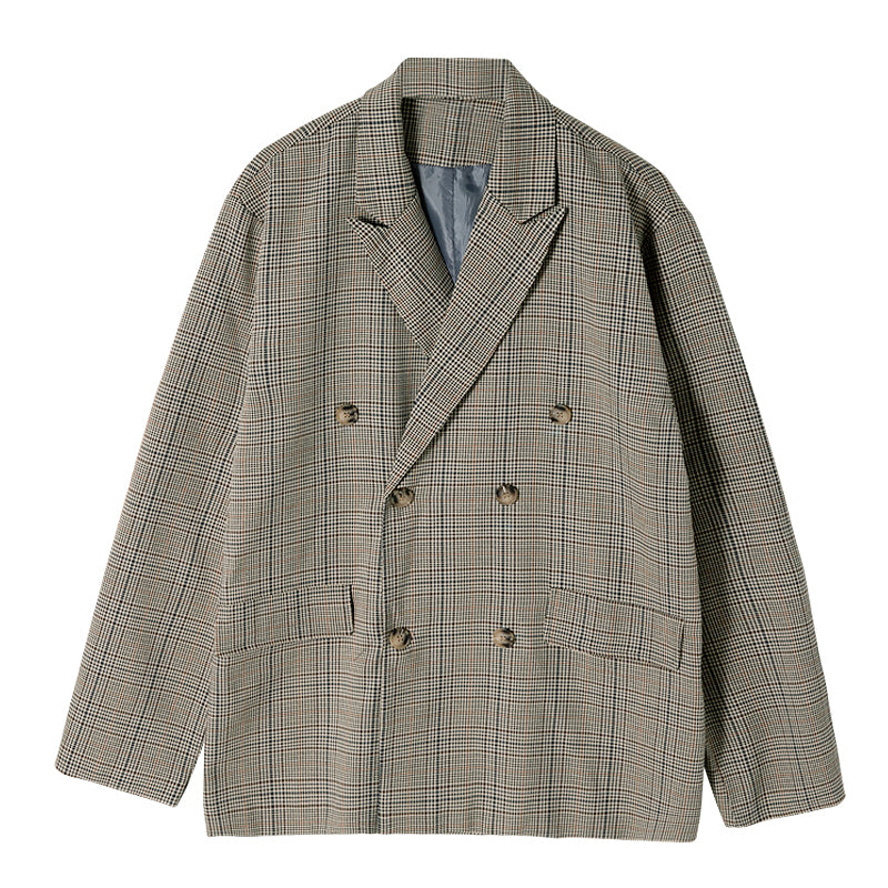 CHIC ERRO Chic Erro autumn plaid suit jacket men's Korean version of the trend of men's loose casual British style suits