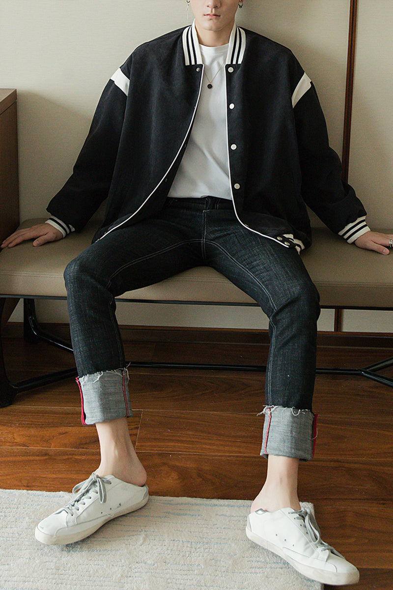 CHIC ERRO Chic Erro autumn thin color matching jacket men's Korean version of the trend of baseball uniform men's loose black jacket