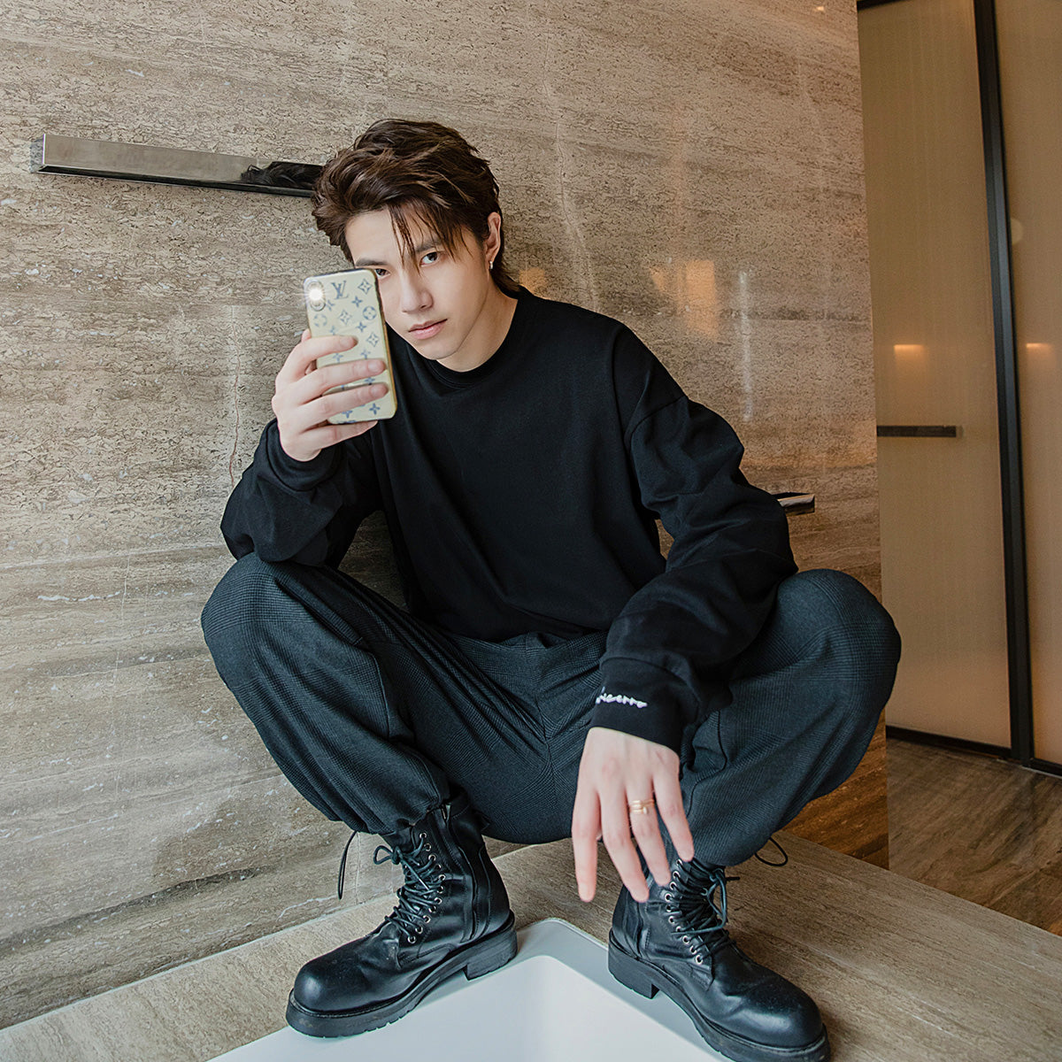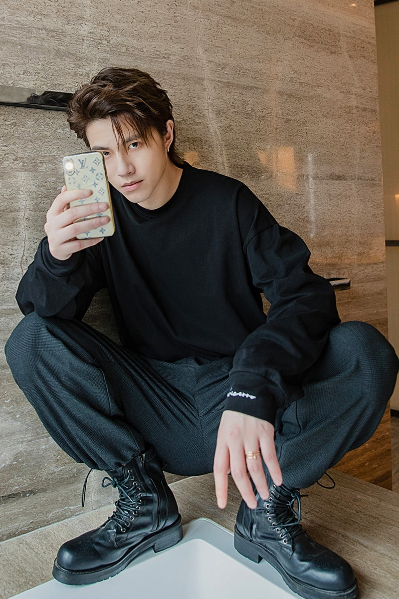 CHIC ERRO Chic Erro autumn tops Korean version of the trend of men's inner bottoming shirt loose white long-sleeved t-shirt men