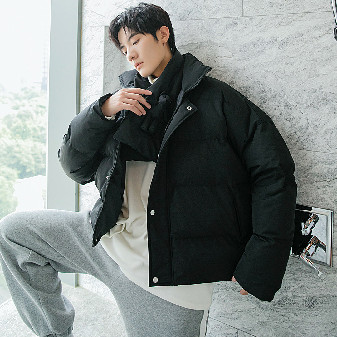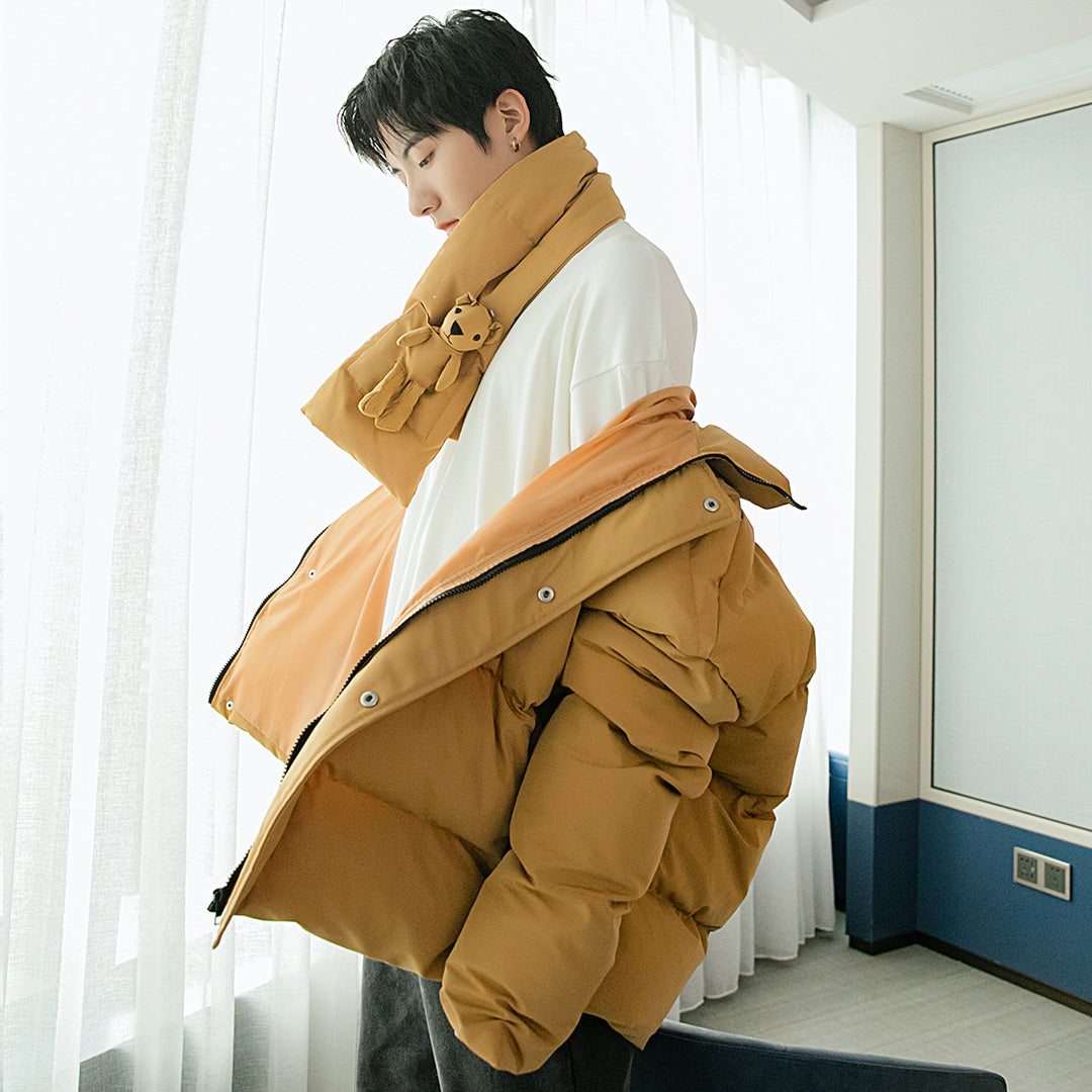 CHIC ERRO Chic Erro bakery suit with cute bear scarf loose trend thickening stand collar jacket for men