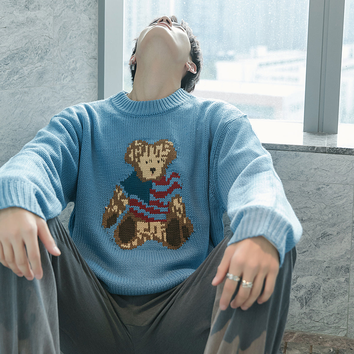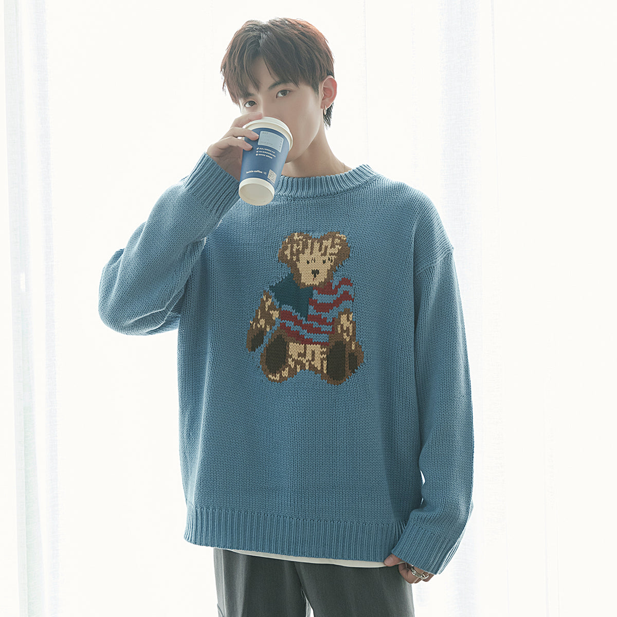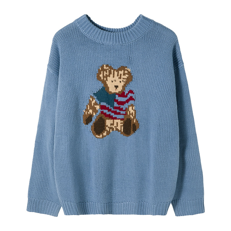 CHIC ERRO Chic Erro bear jacquard long-sleeved sweater student pullover round neck sweater men's autumn jacket